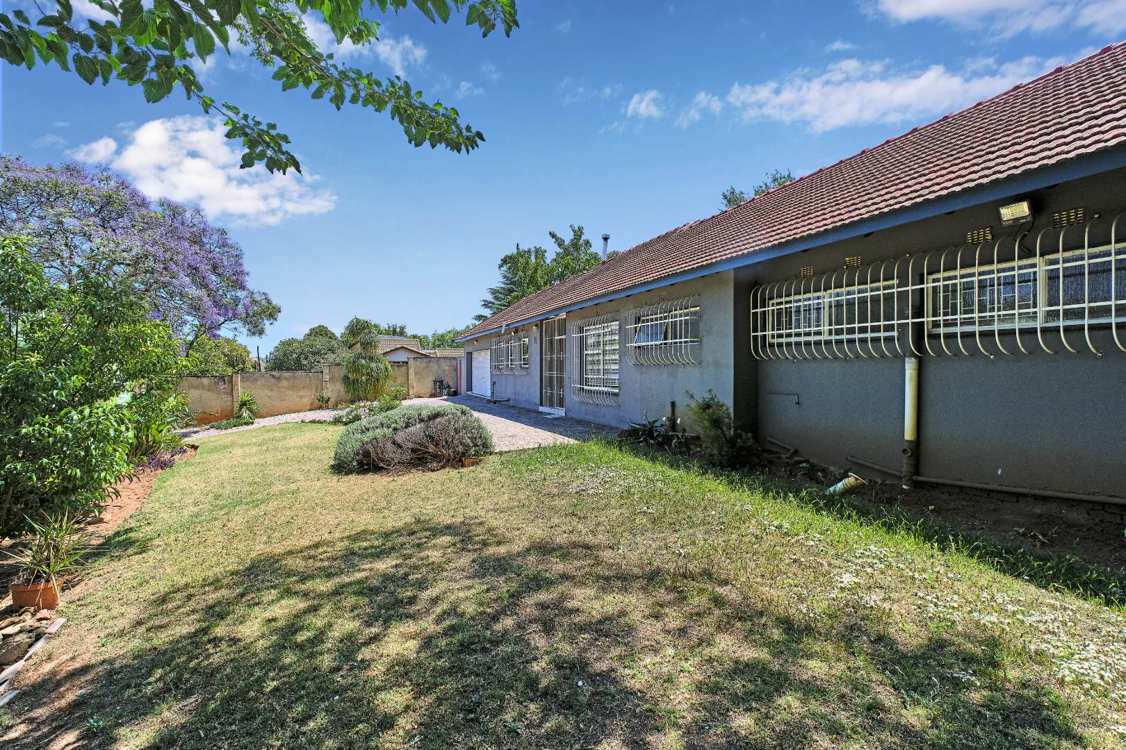 Discover this inviting 3-bedroom, 2-bathroom family home situated on a generous 1330 sqm erf in the desirable suburban area of Quellerina, Roodepoort. The property boasts excellent curb appeal with a prominent paved driveway leading to a double garage and ample additional parking for up to six vehicles. A well-maintained garden, featuring mature trees including a vibrant Jacaranda, enhances the welcoming entrance, complemented by a secure gate and privacy wall.