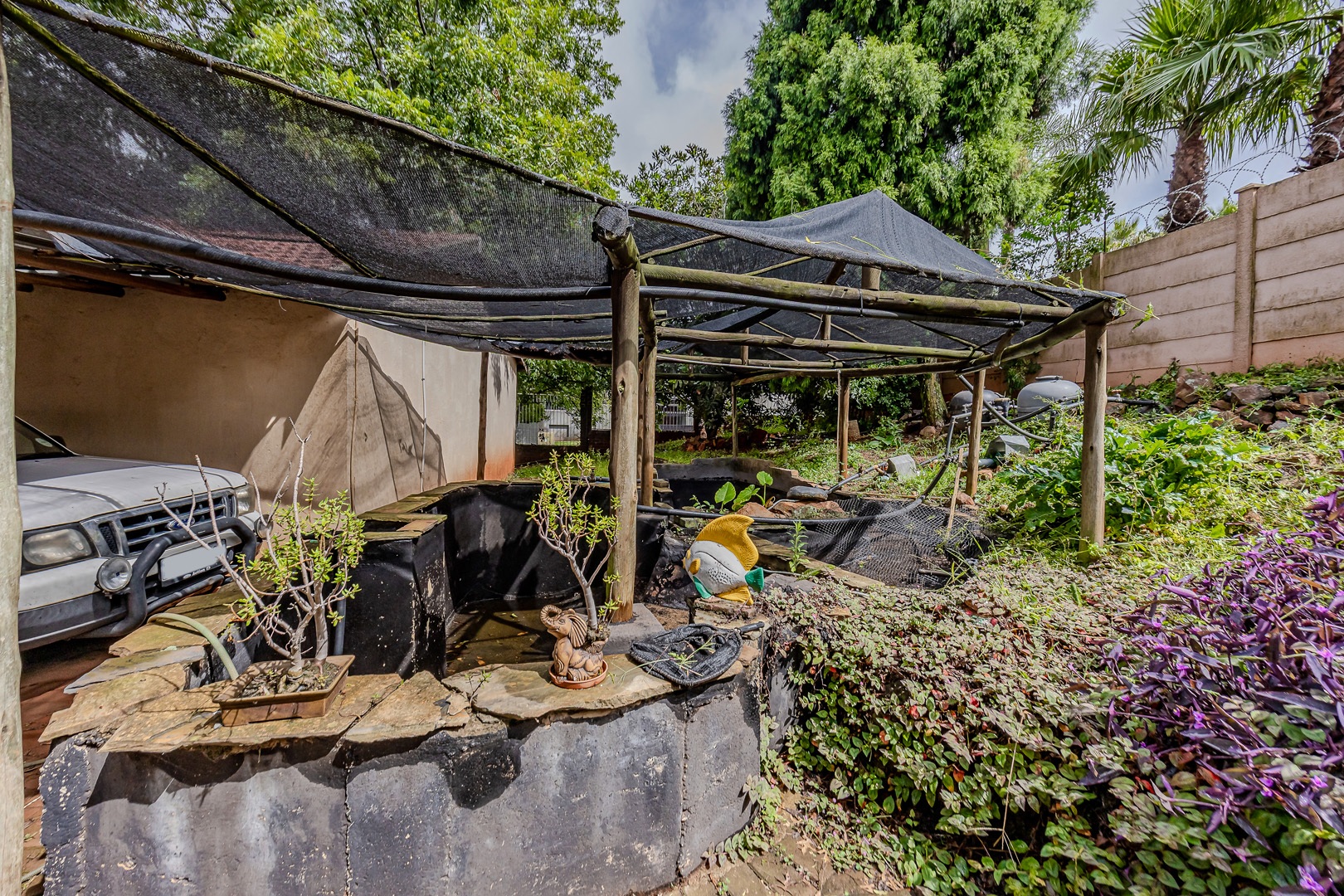 Outside, you’ll find a double garage and two covered carports, ensuring ample parking for guests and extra vehicles. For those who love to entertain or unwind, there’s a jacuzzi and a large koi pond that add a special touch of tranquility and charm to the property.