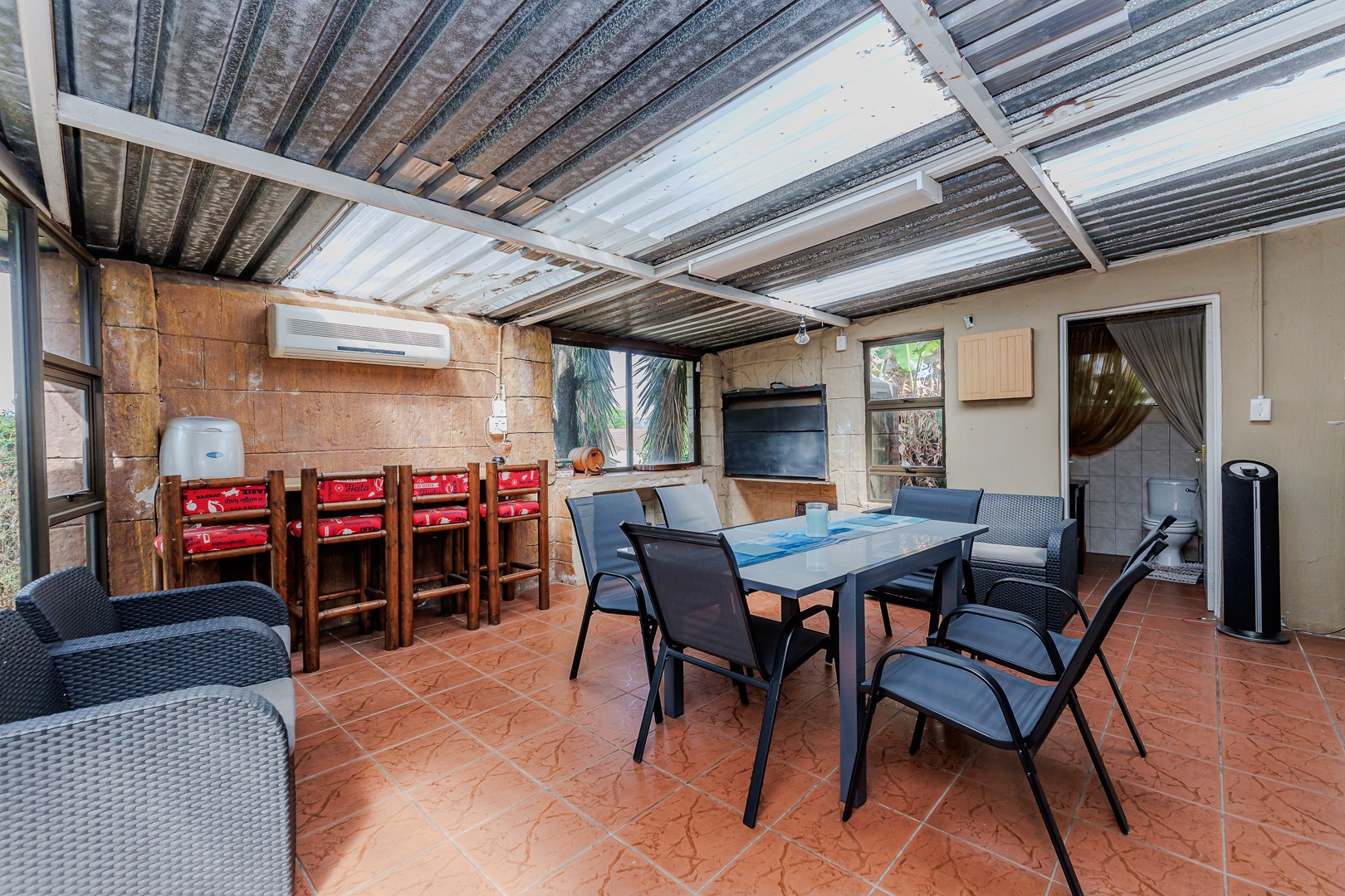 For those who love to entertain, the covered patio with a built-in braai provides the ideal setting to host friends and family all year round. Parking is abundant, with a double automated tandem garage, double carport, and an additional single carport, ensuring plenty of space for all your vehicles and guests.