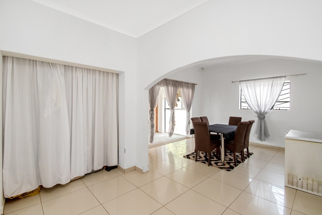 Discover this inviting family home located in the established suburban area of Roodepoort North, The property immediately impresses with its distinctive carved wooden front door and modern corner windows, complemented by well-maintained white exterior walls and a lush green garden, enhancing its curb appeal. Inside, the residence offers a bright and airy open-plan layout, featuring light-colored tiled flooring and neutral white walls throughout. Elegant arched doorways seamlessly connect the spacious lounge and dedicated dining room, creating an effortless flow ideal for both daily living and entertaining.
