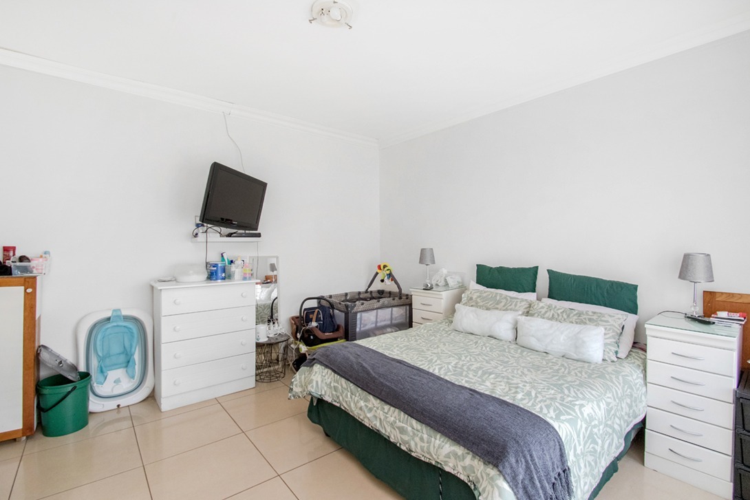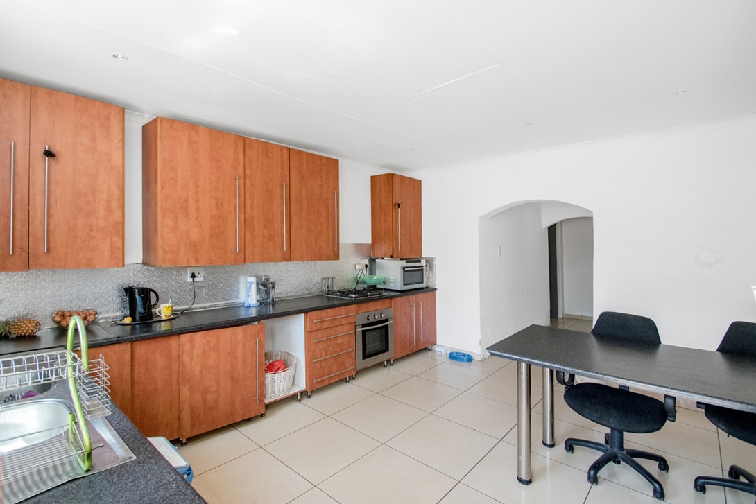 The heart of this home is its spacious kitchen, equipped with contemporary wooden cabinetry, extensive counter space, and modern built-in appliances including an oven and gas hob. Durable tiled flooring ensures easy maintenance, while a dedicated dining area within the kitchen provides a convenient spot for casual meals. The residence boasts four comfortable bedrooms, each featuring clean white walls, tiled flooring, and crown molding, offering a versatile canvas for personal touches. There are two well-appointed bathrooms, with one bedroom benefiting from direct en-suite access, ensuring privacy and convenience.