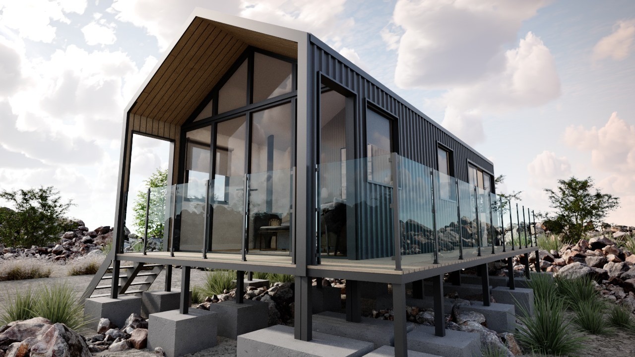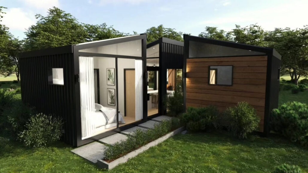 It includes sewer and water connection, Partial roads, and solar power included in the house design.