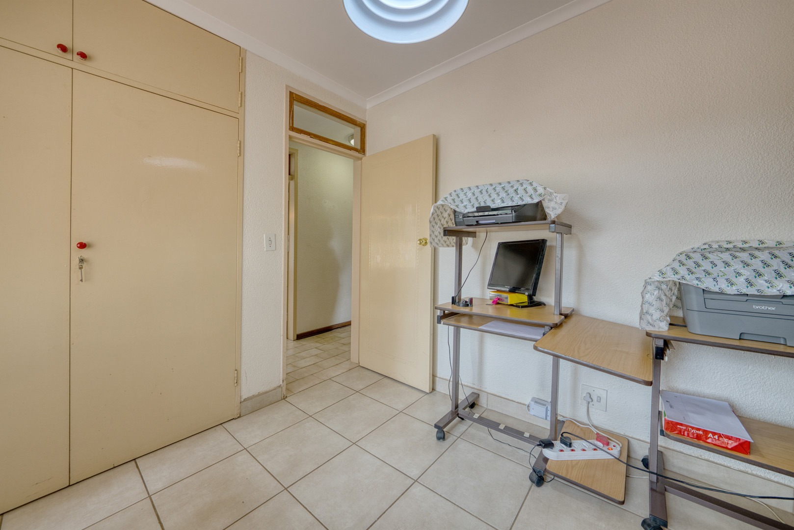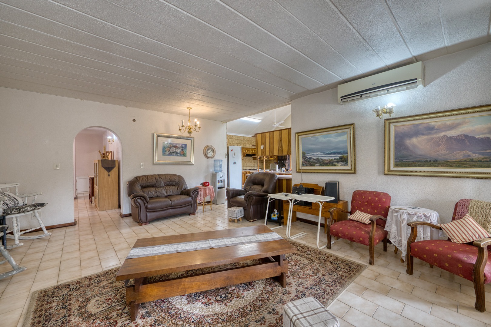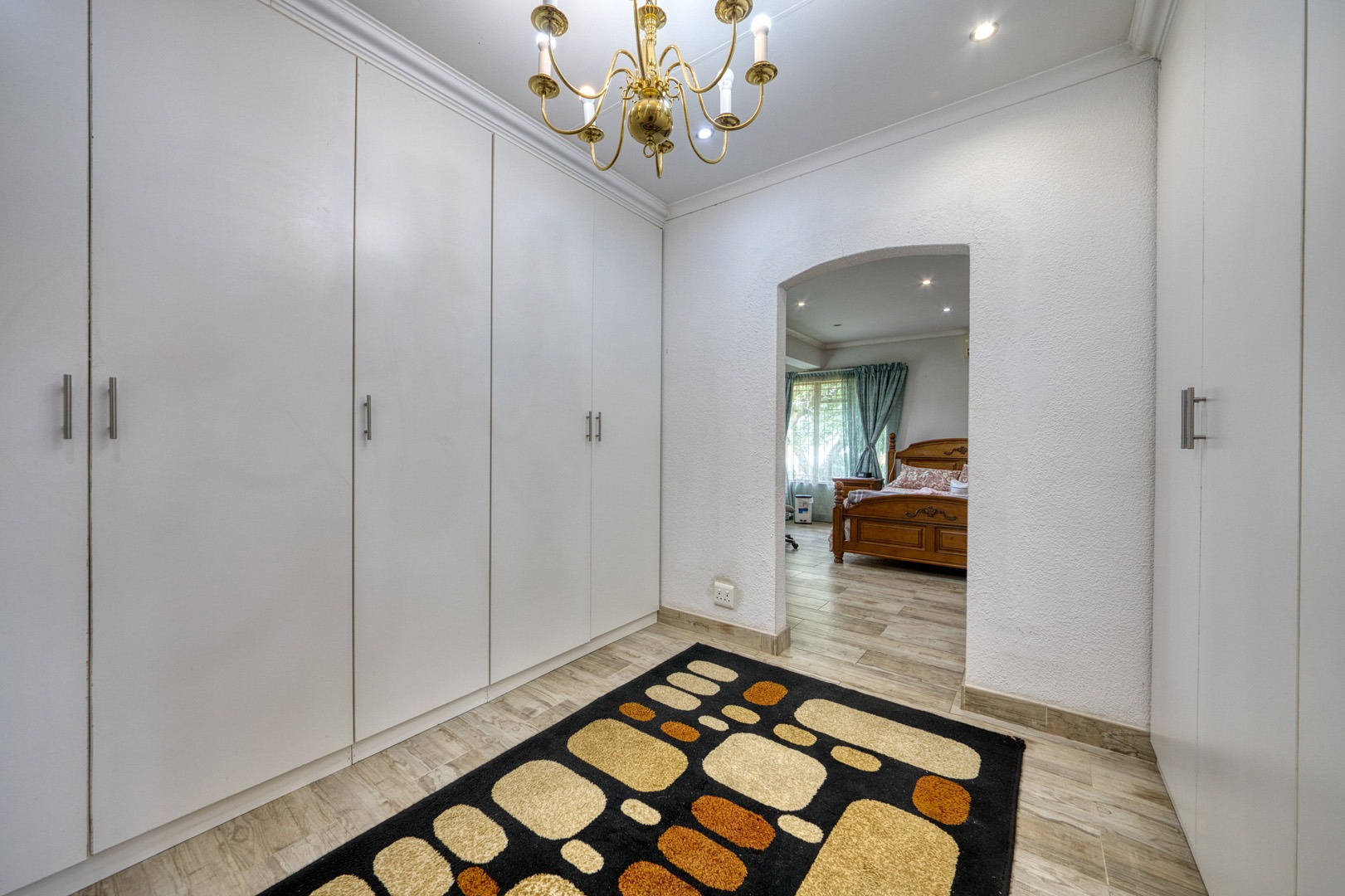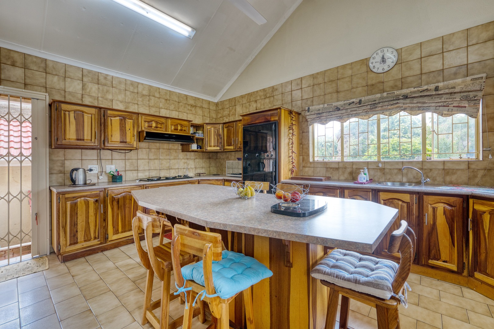 Accommodation comprises four well-proportioned bedrooms, with one en-suite bathroom, a second full bathroom, and a convenient guest toilet. The property is equipped with robust security features, including an alarm system, CCTV, an access gate, a fence, and burglar bars, ensuring peace of mind. Modern conveniences include fibre connectivity and water tanks, enhancing sustainability.