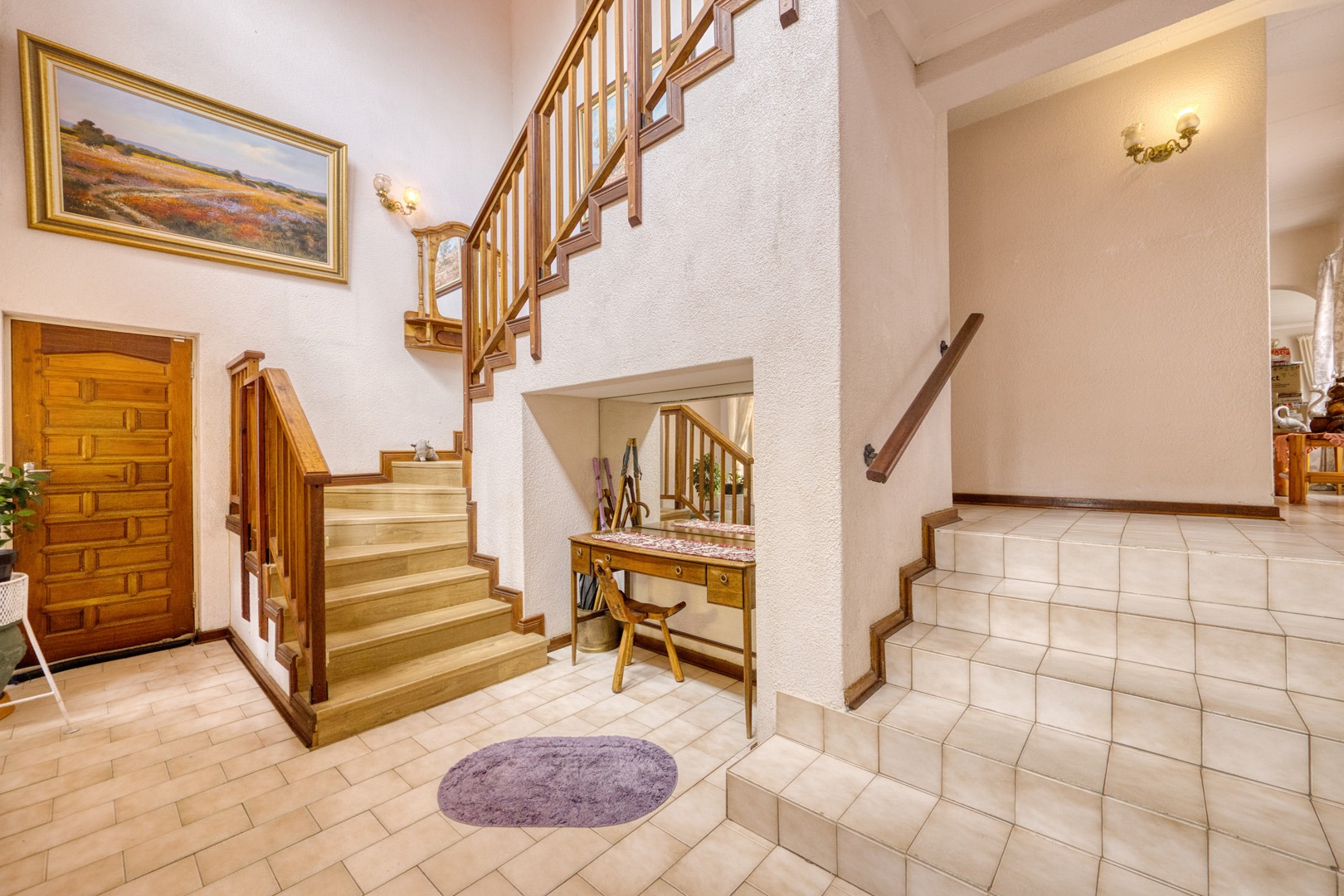 Discover this expansive 4-bedroom, 2.5-bathroom residence situated on an impressive 1 675ha erf in the sought-after Ruimsig, Roodepoort. This property boasts exceptional kerb appeal with its traditional architectural style, classic red tile roof, and a long brick-paved driveway leading to a triple garage and an additional 20 parking spaces. Enjoy the lush, well-maintained gardens, mature trees, and the unique advantage of direct adjacency to a golf course, offering scenic views and recreational opportunities.