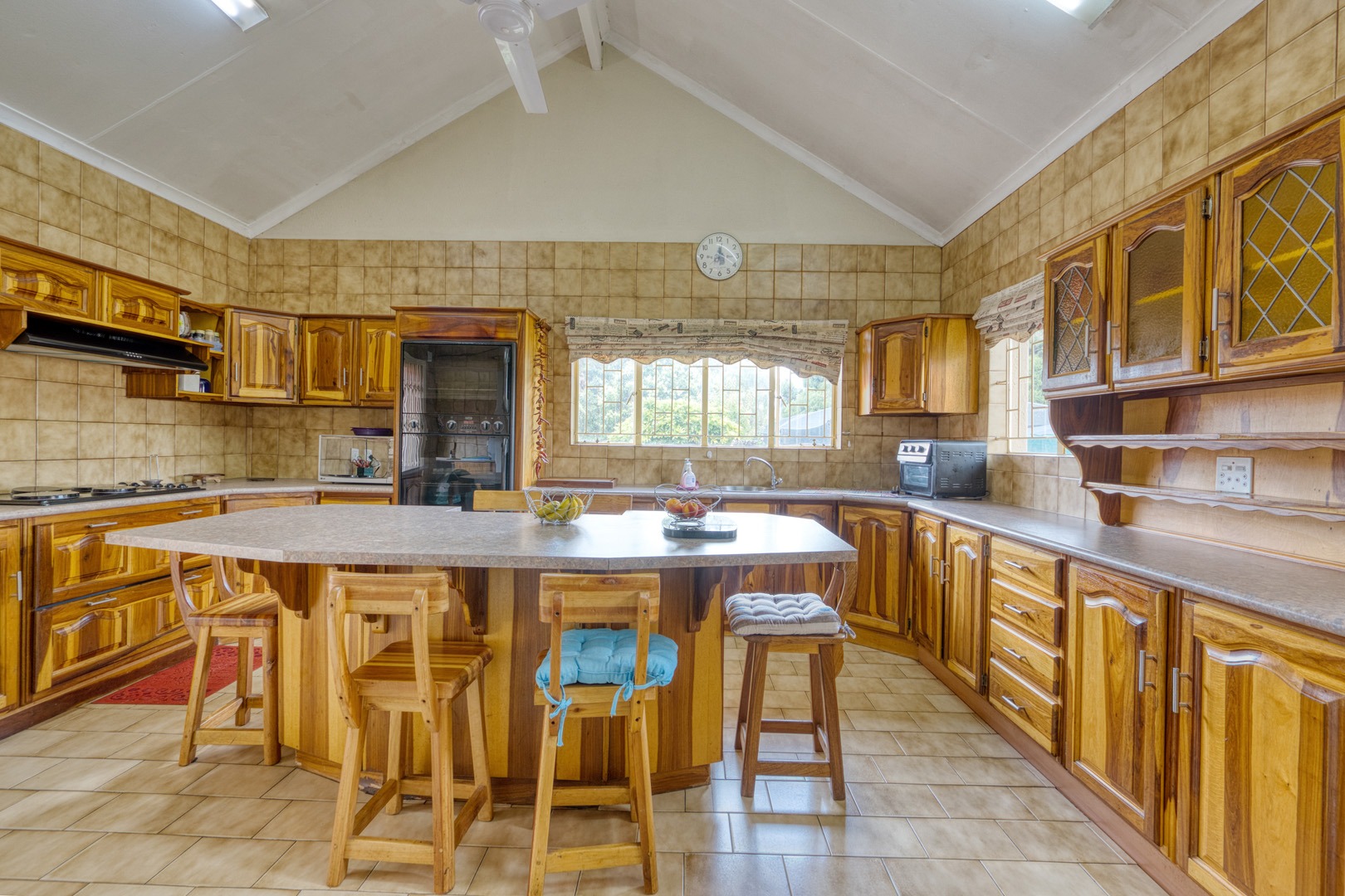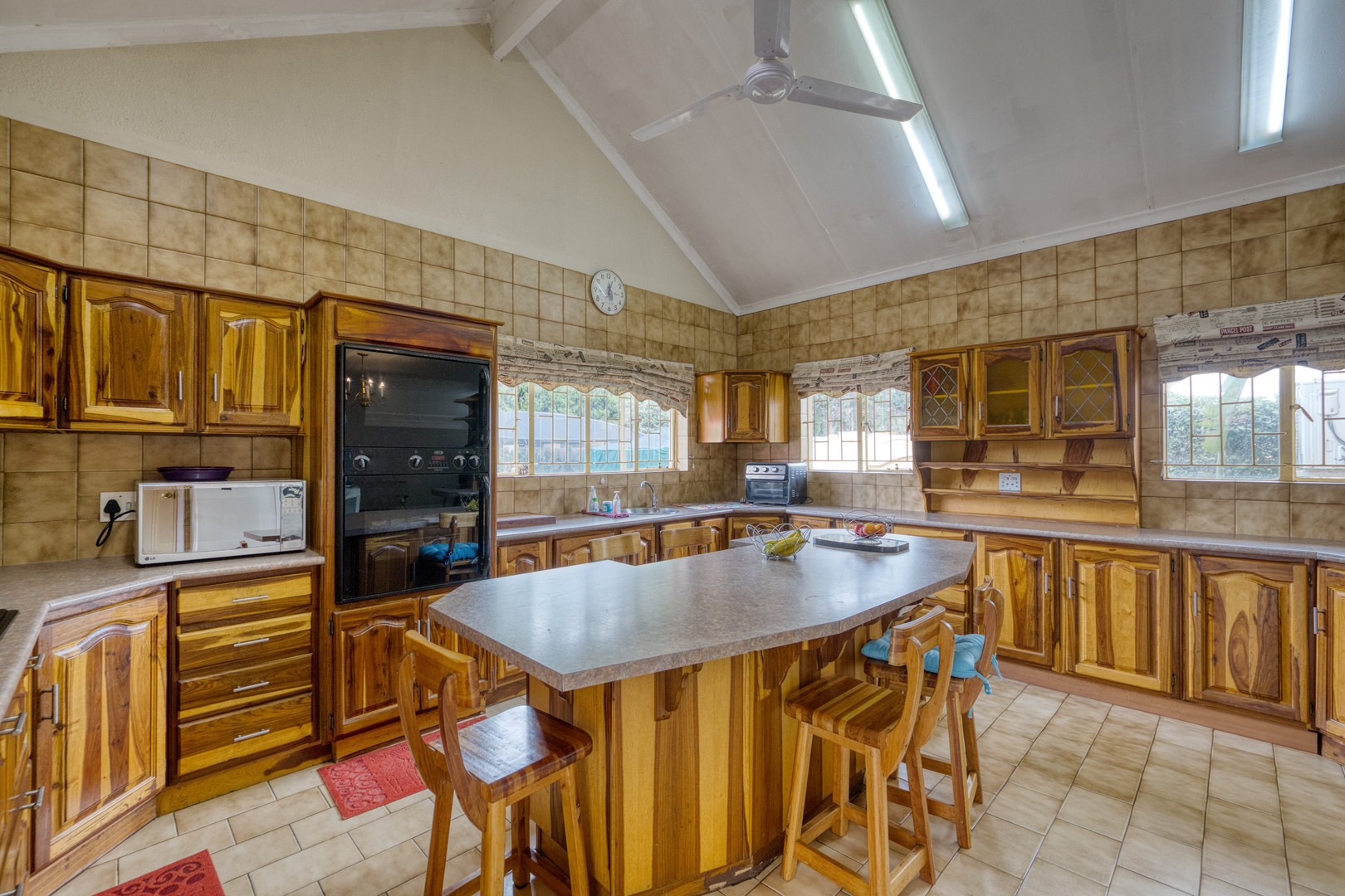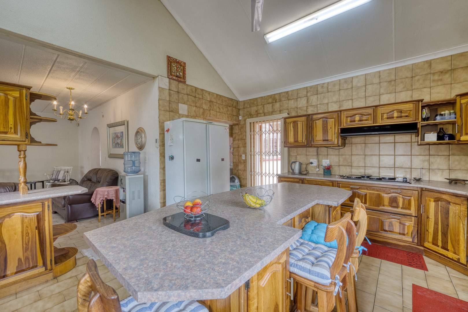 Accommodation comprises four well-proportioned bedrooms, with one en-suite bathroom, a second full bathroom, and a convenient guest toilet. The property is equipped with robust security features, including an alarm system, CCTV, an access gate, a fence, and burglar bars, ensuring peace of mind. Modern conveniences include fibre connectivity and water tanks, enhancing sustainability.