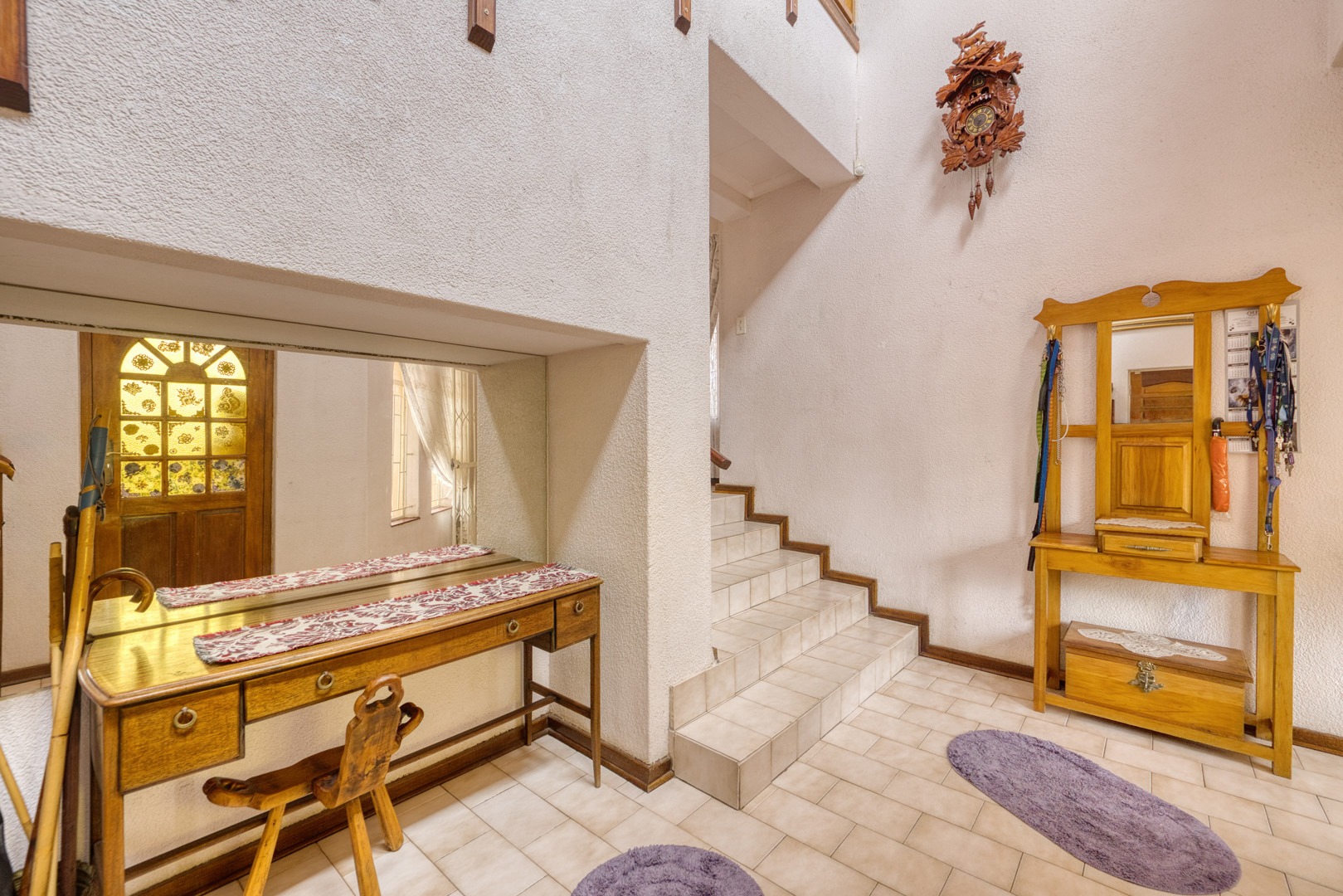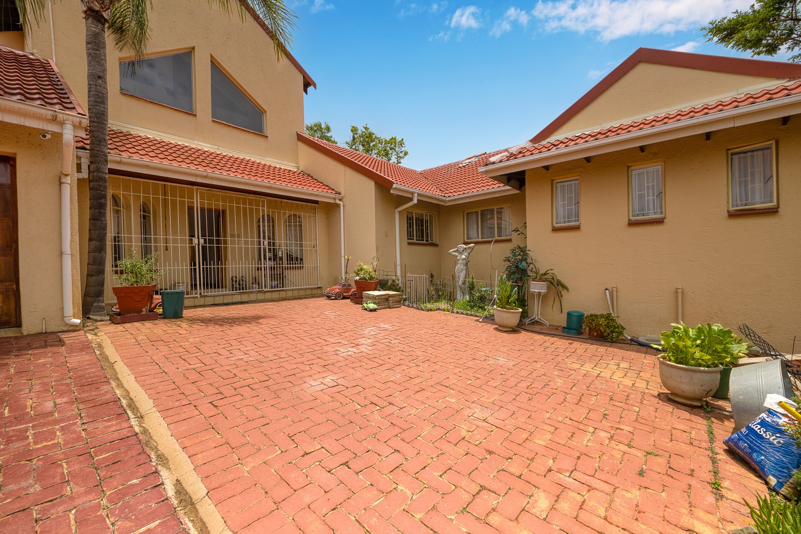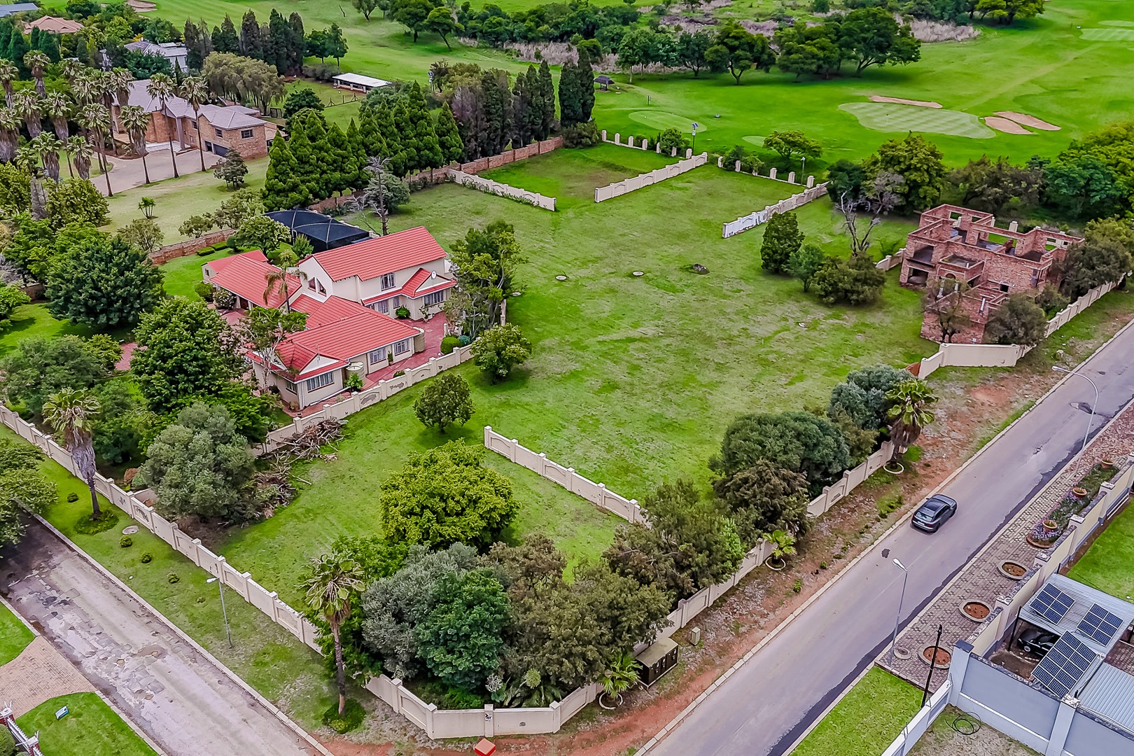 Discover this expansive 4-bedroom, 2.5-bathroom residence situated on an impressive 1 675ha erf in the sought-after Ruimsig, Roodepoort. This property boasts exceptional kerb appeal with its traditional architectural style, classic red tile roof, and a long brick-paved driveway leading to a triple garage and an additional 20 parking spaces. Enjoy the lush, well-maintained gardens, mature trees, and the unique advantage of direct adjacency to a golf course, offering scenic views and recreational opportunities.