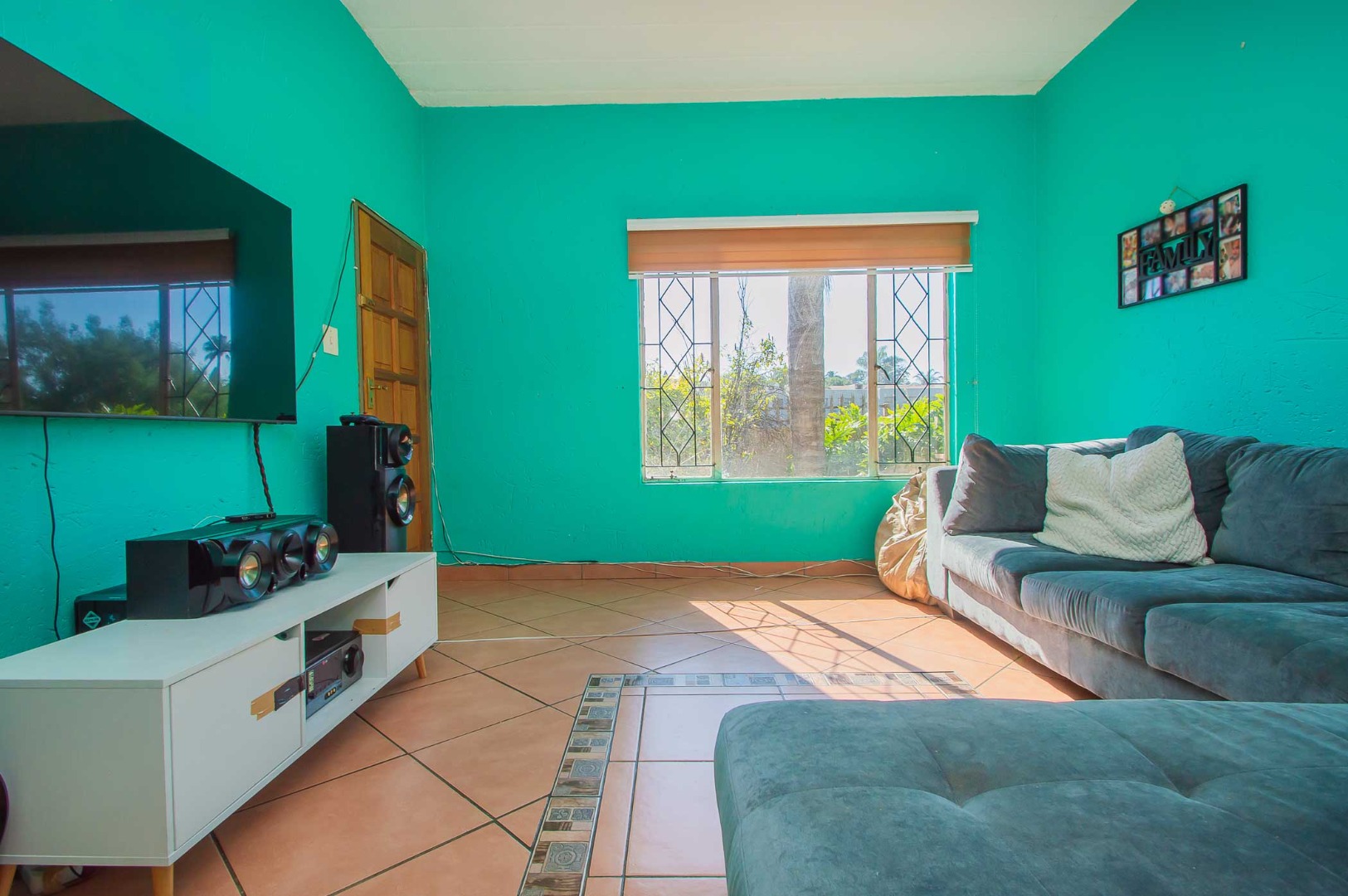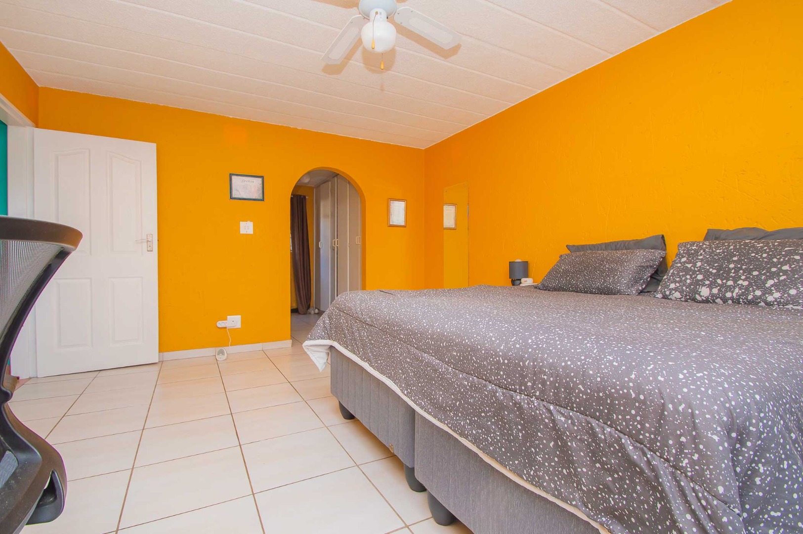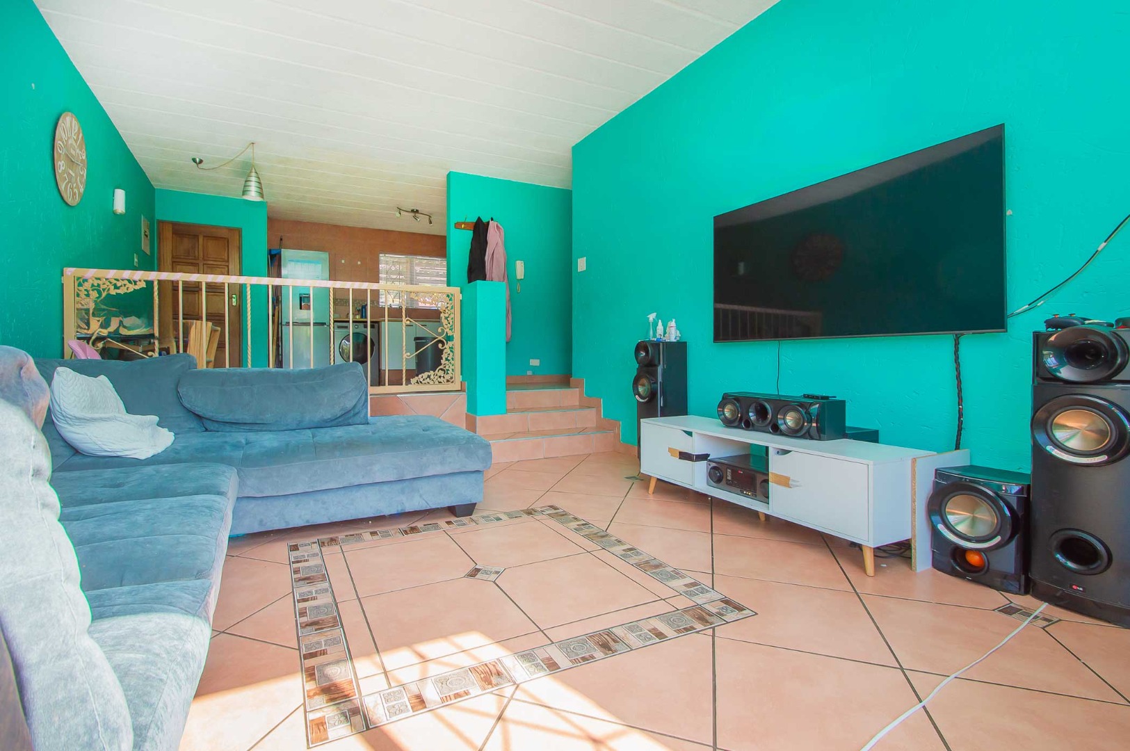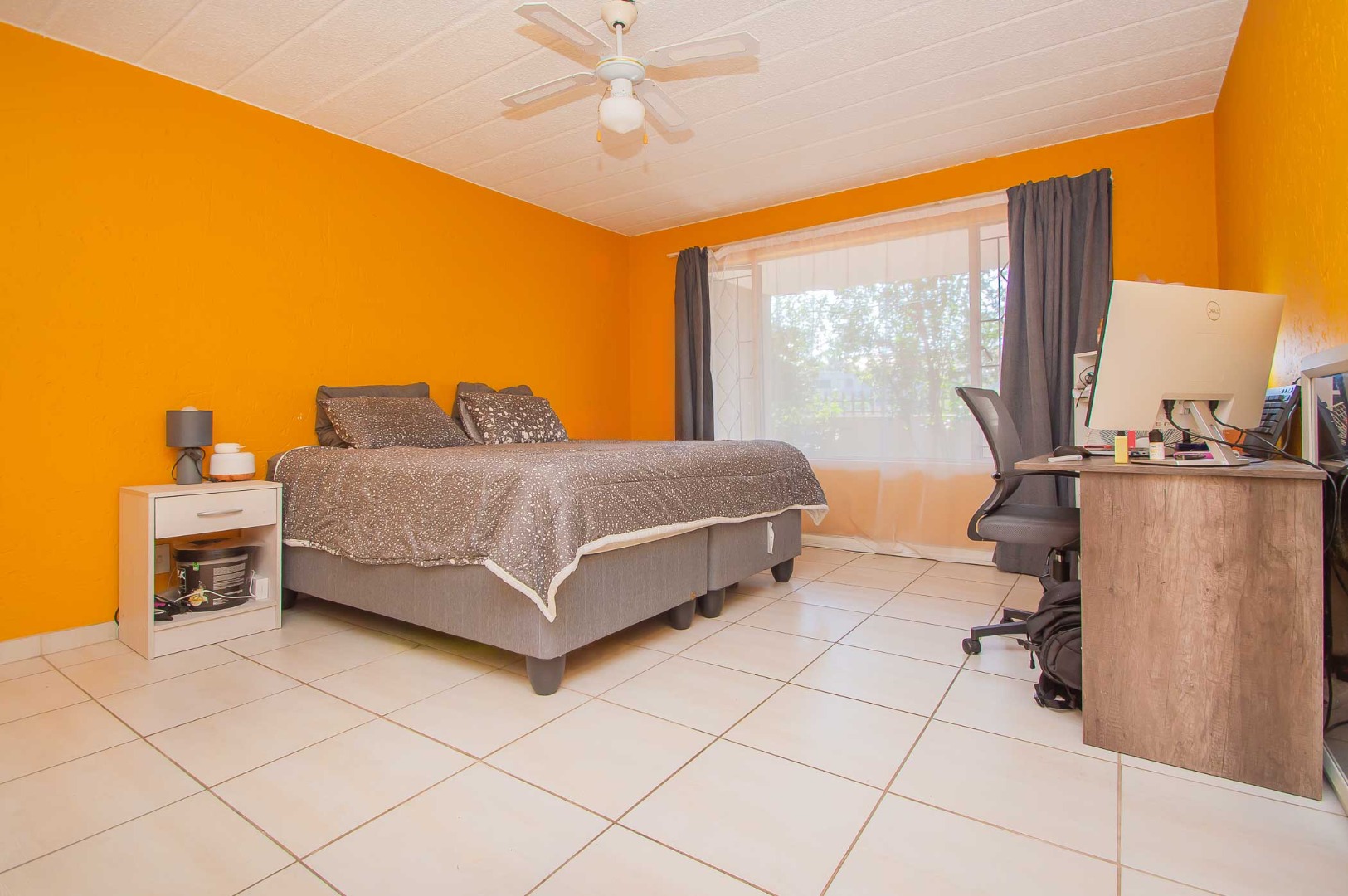 Enjoy the outdoors from the covered patio, which overlooks a vast, private garden. This spacious area is perfect for entertaining with a built-in braai, making it an entertainer's paradise.