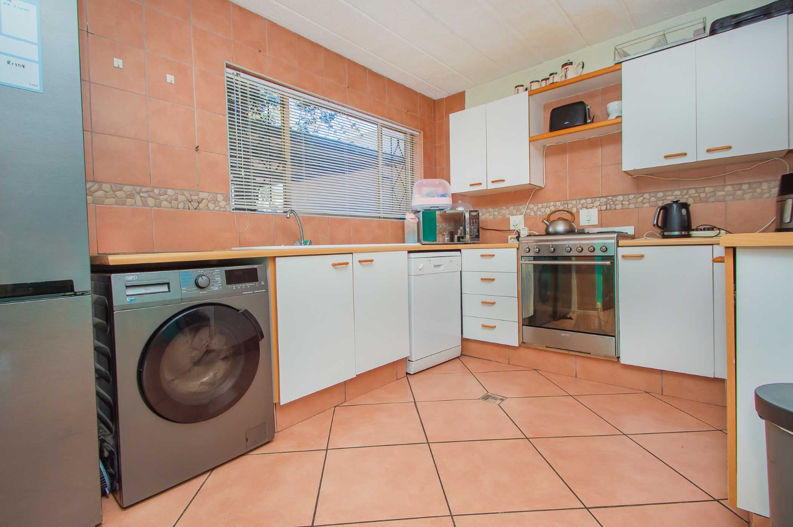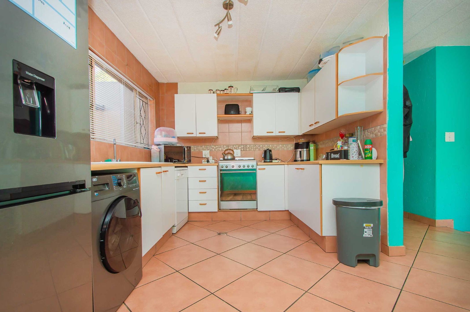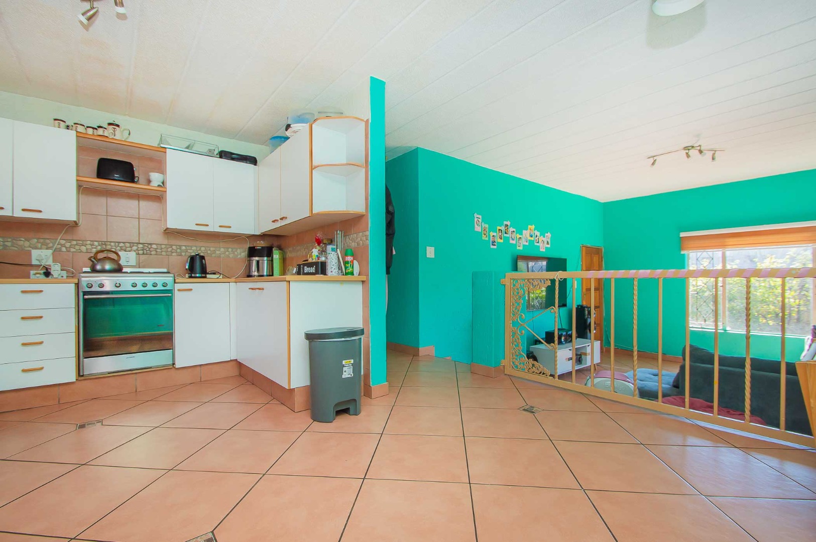 Step into a large lounge area that seamlessly integrates with the adjacent kitchen with an area to accommodate a dining room table. The kitchen is equipped with ample cupboard space and a gas hob, making it a chef's delight.