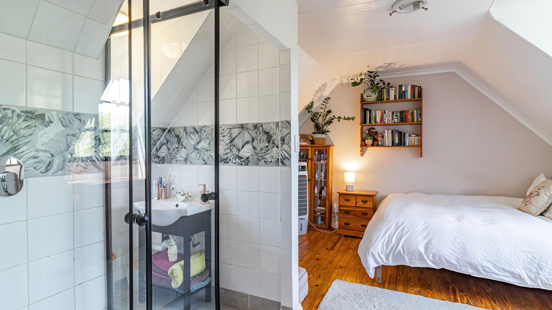 Downstairs, the bathroom adds a unique touch of character with a stunning freestanding vintage style bath , creating a charming blend of old world elegance and modern comfort. Also on this level is the second bedroom or study, which enjoys lovely views over the lush garden, making it an ideal space for a guest room, home office, or creative studio.
