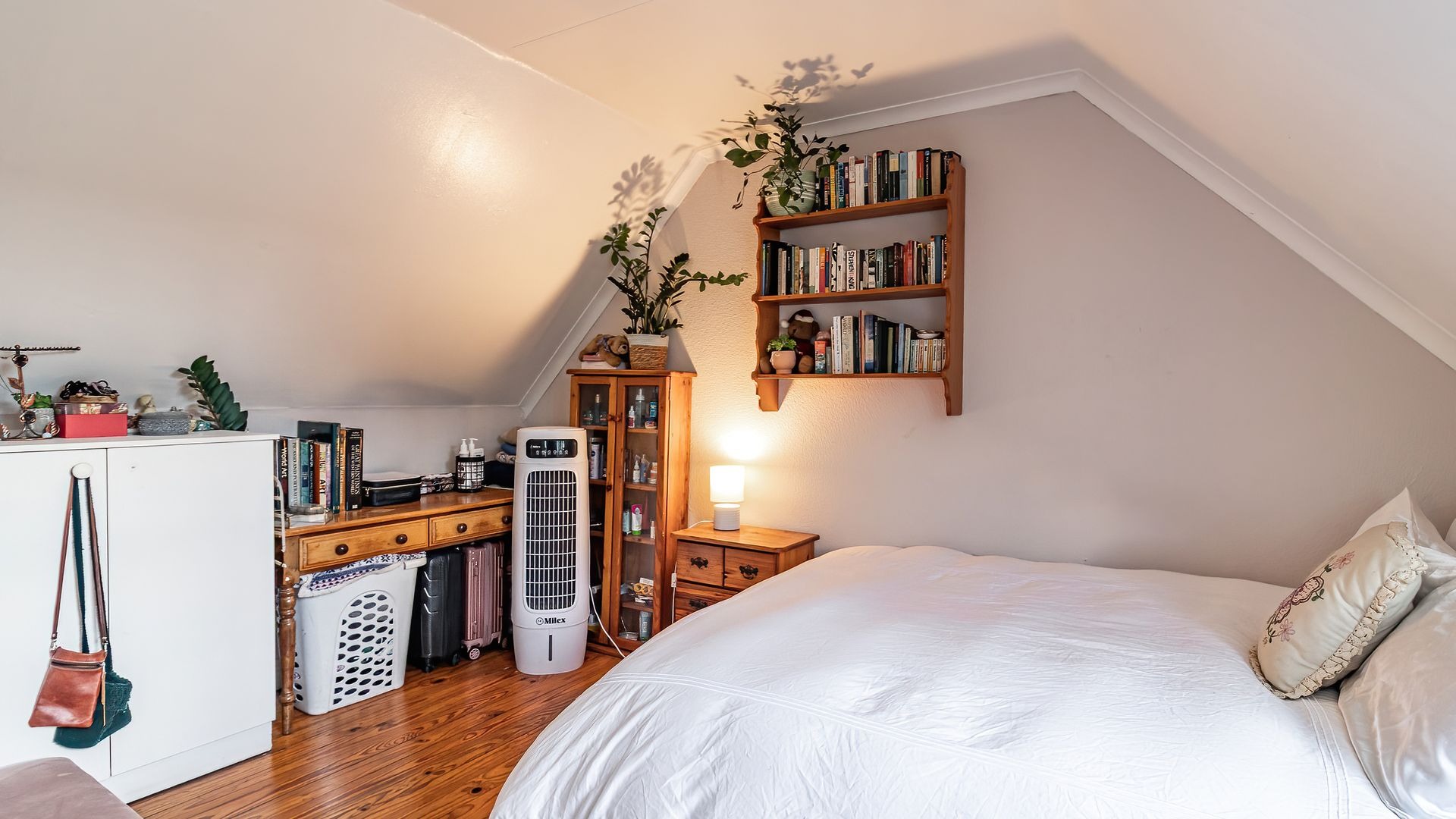 Upstairs, the main bedroom is generously sized and offers a separate wardrobe and vanity area, providing excellent storage and a comfortable private space to get ready for the day. The ensuite bathroom is modern and well appointed, featuring a shower for convenience and everyday ease.