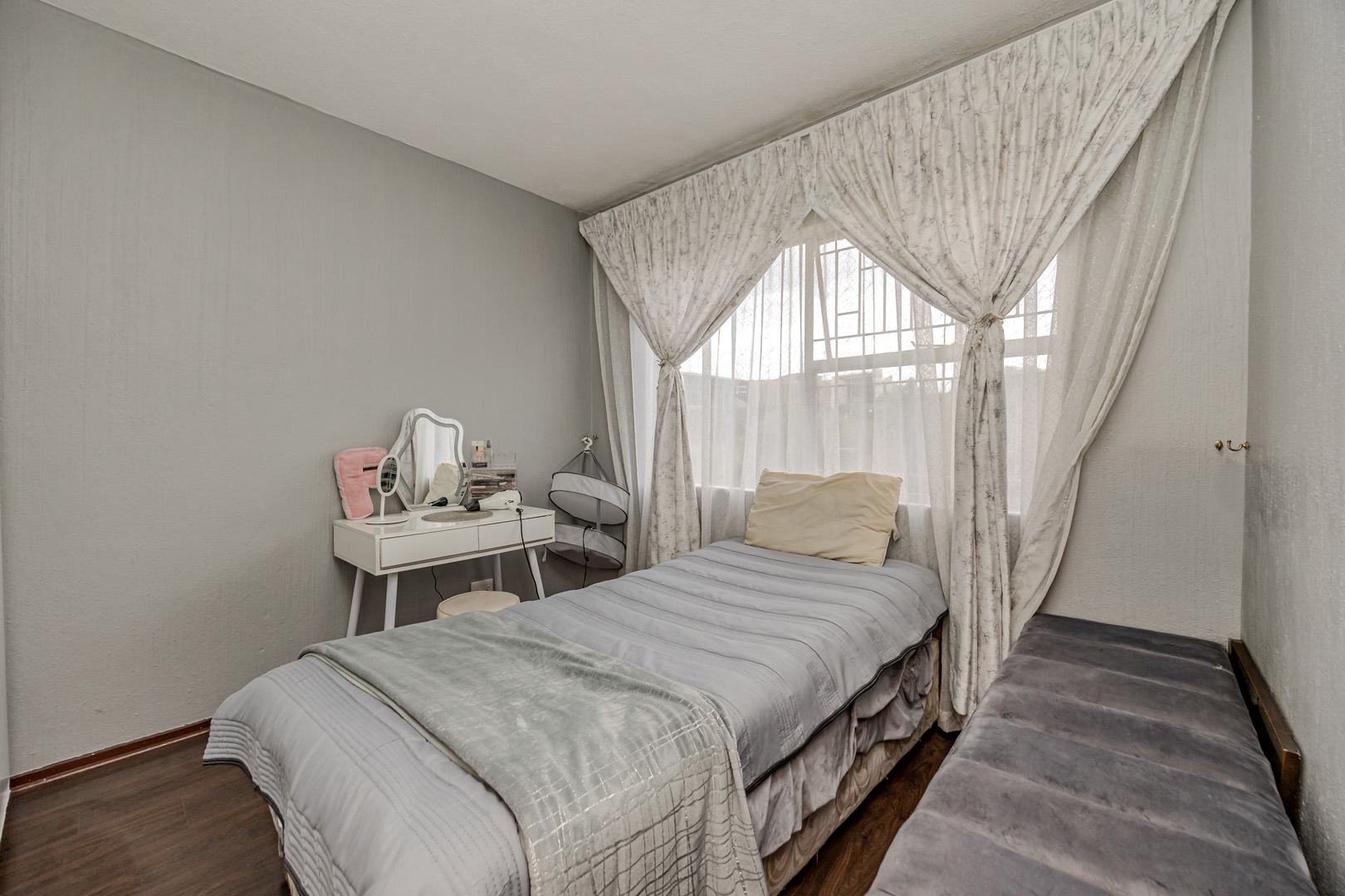 Security is a priority, with electric fencing and a security gate providing peace of mind. The property also benefits from two dedicated parking spaces and high-speed fibre internet connectivity, catering to modern lifestyle needs. Situated in the established suburb of Weltevreden Park, this home offers a balanced lifestyle with access to local amenities and the vibrant city of Roodepoort.