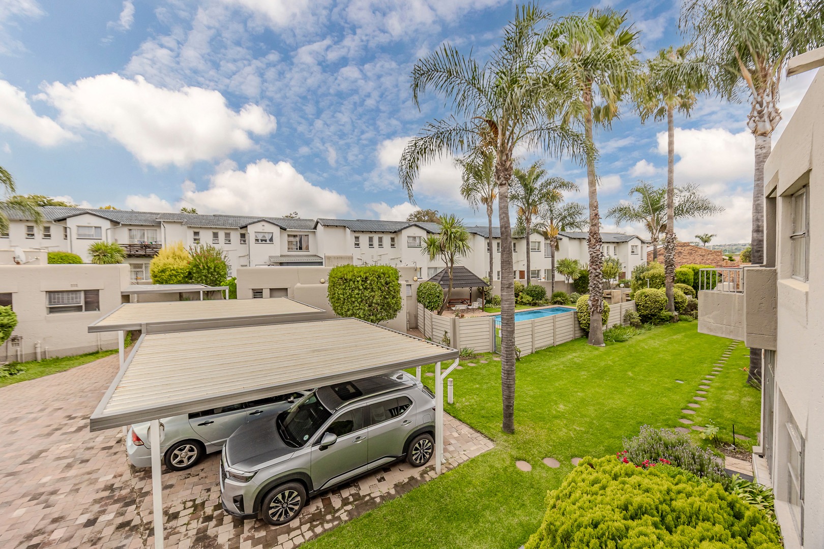 Spanning a floor area of 94 sqm, the property is thoughtfully laid out to maximise space and functionality. Residents will appreciate the inclusion of a refreshing swimming pool, ideal for unwinding on warm days, and a communal braai area, perfect for social gatherings with neighbours and friends. The complex environment ensures a sense of community and shared amenities.