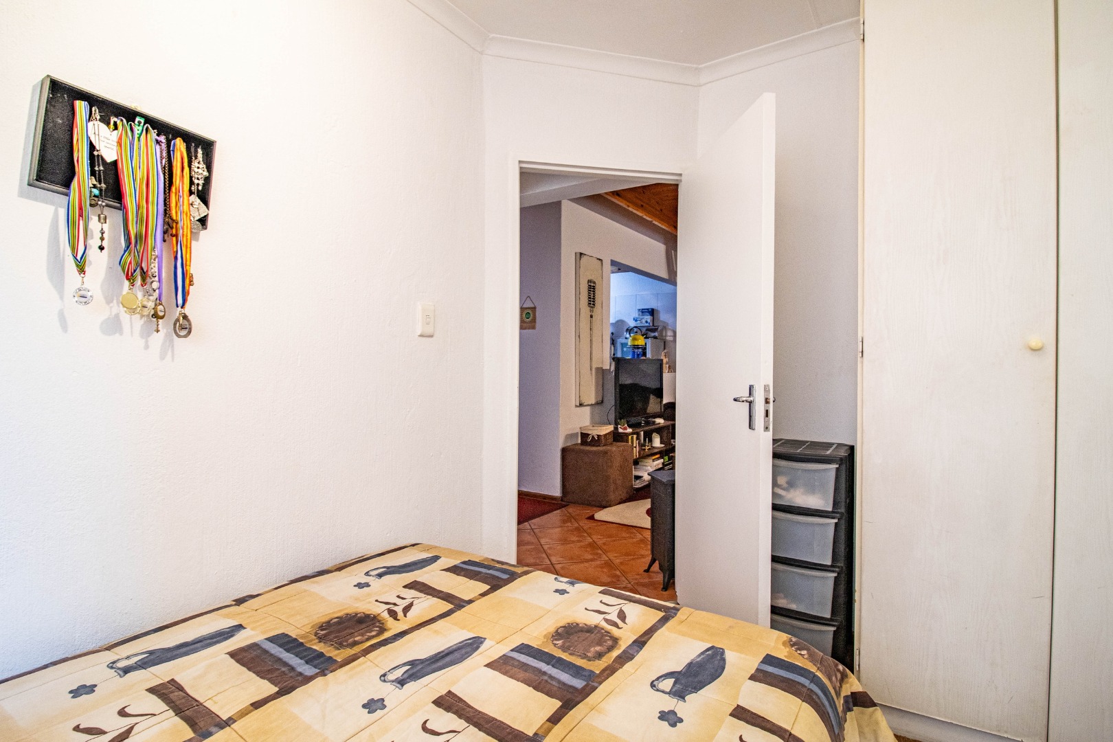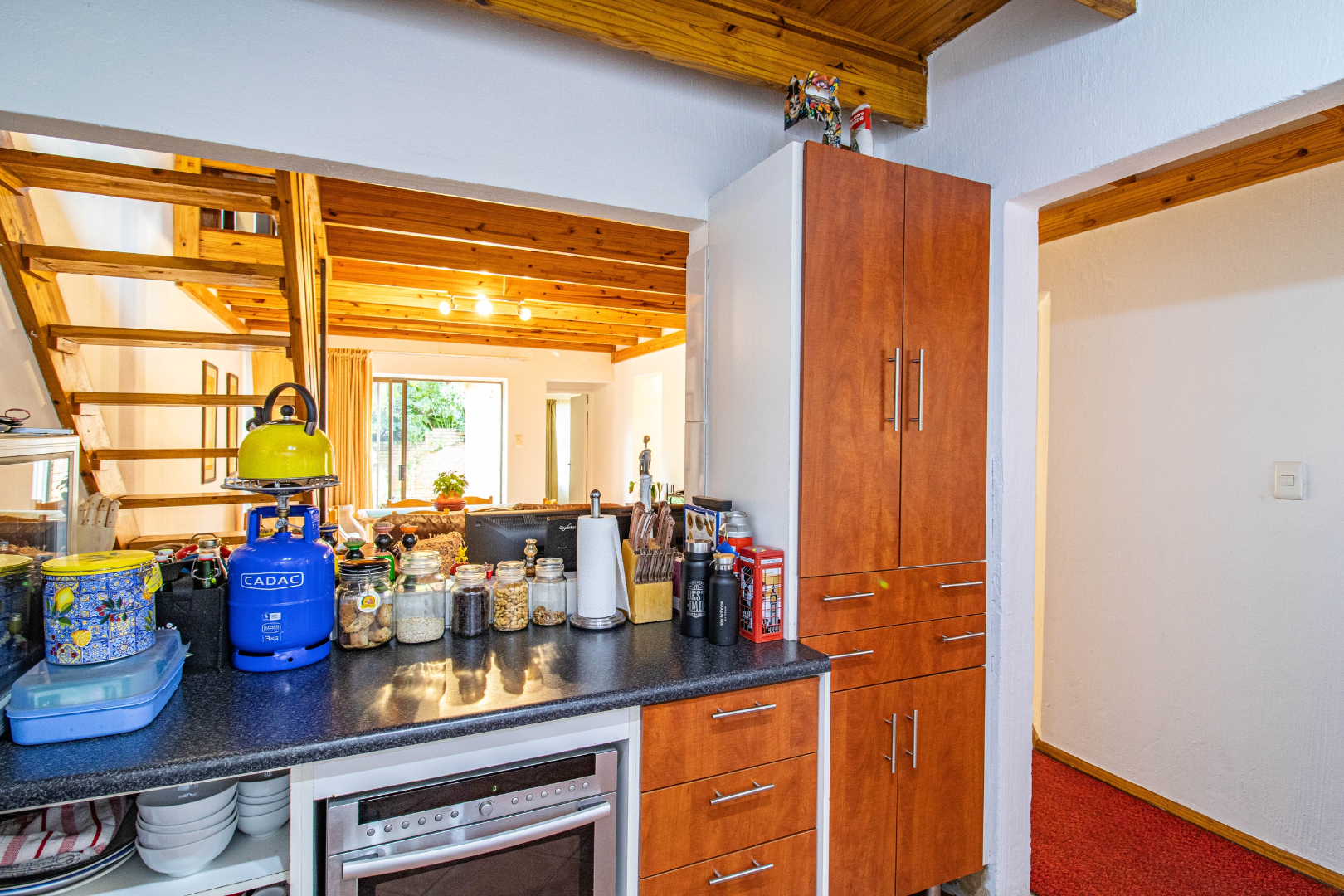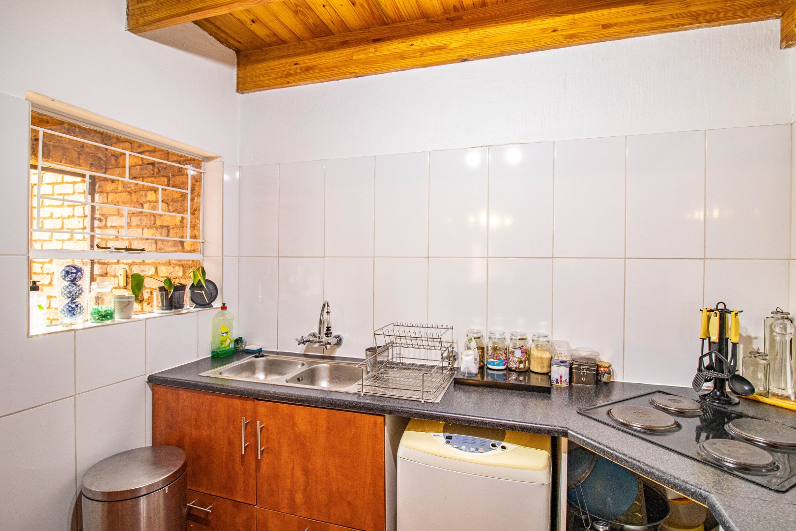 As you step inside you are greeted by a separate kitchen with generous counter space and a practical layout. The living and dining area is bright and inviting opening out to a lush green garden with a built in braai perfect for relaxed afternoons and weekend gatherings.