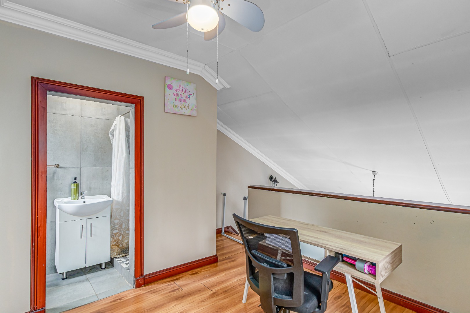 - Upstairs main bedroom includes an en-suite bathroom and currently doubles as a comfortable home office space