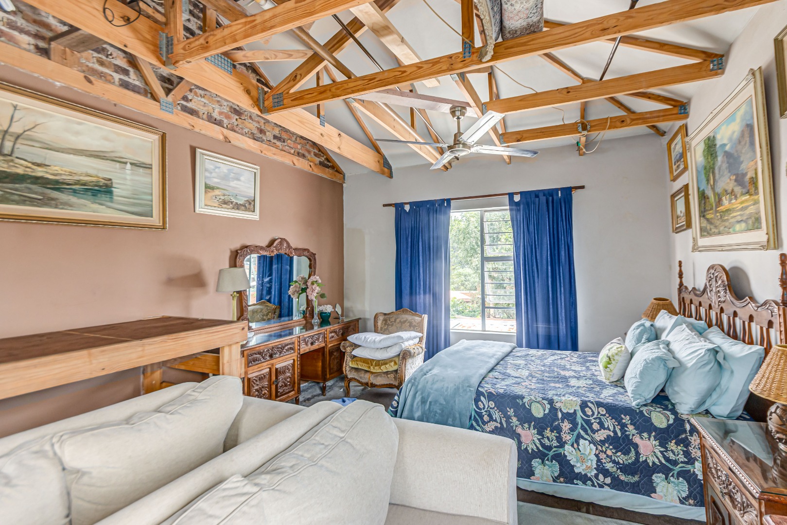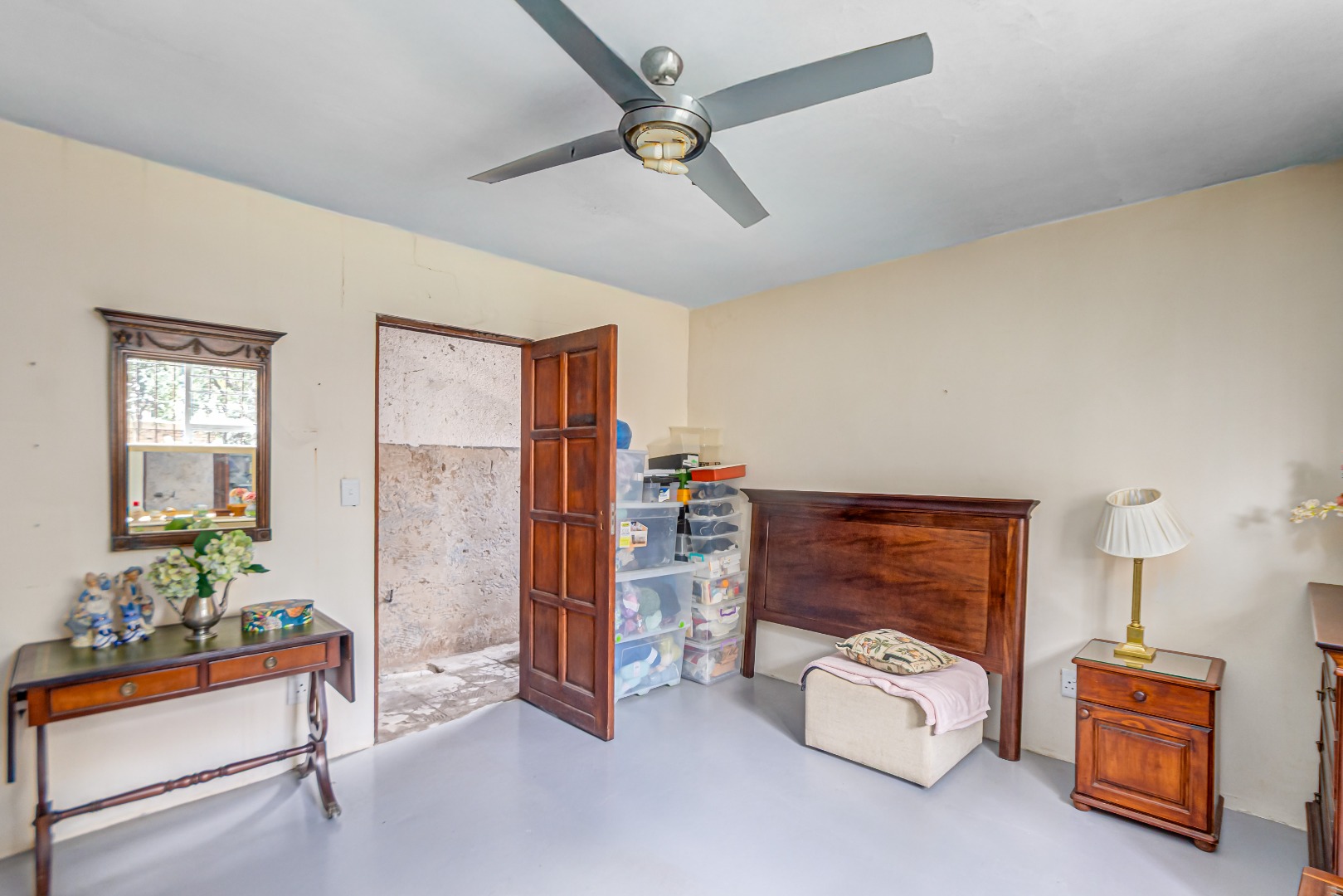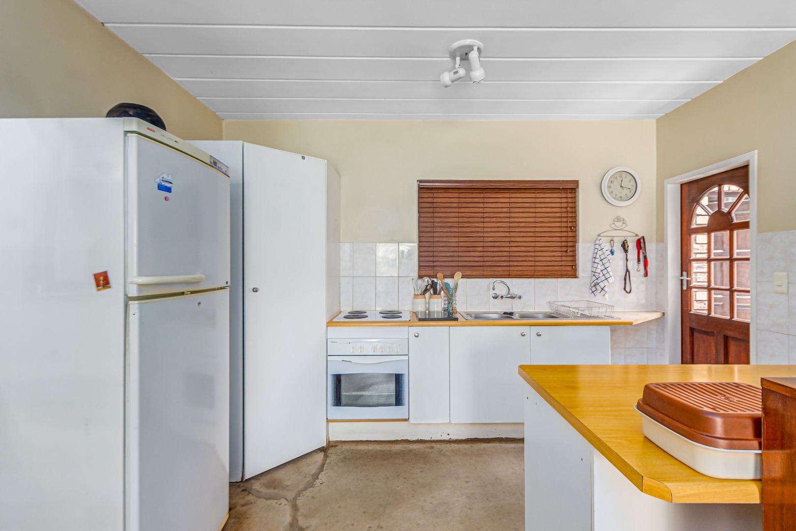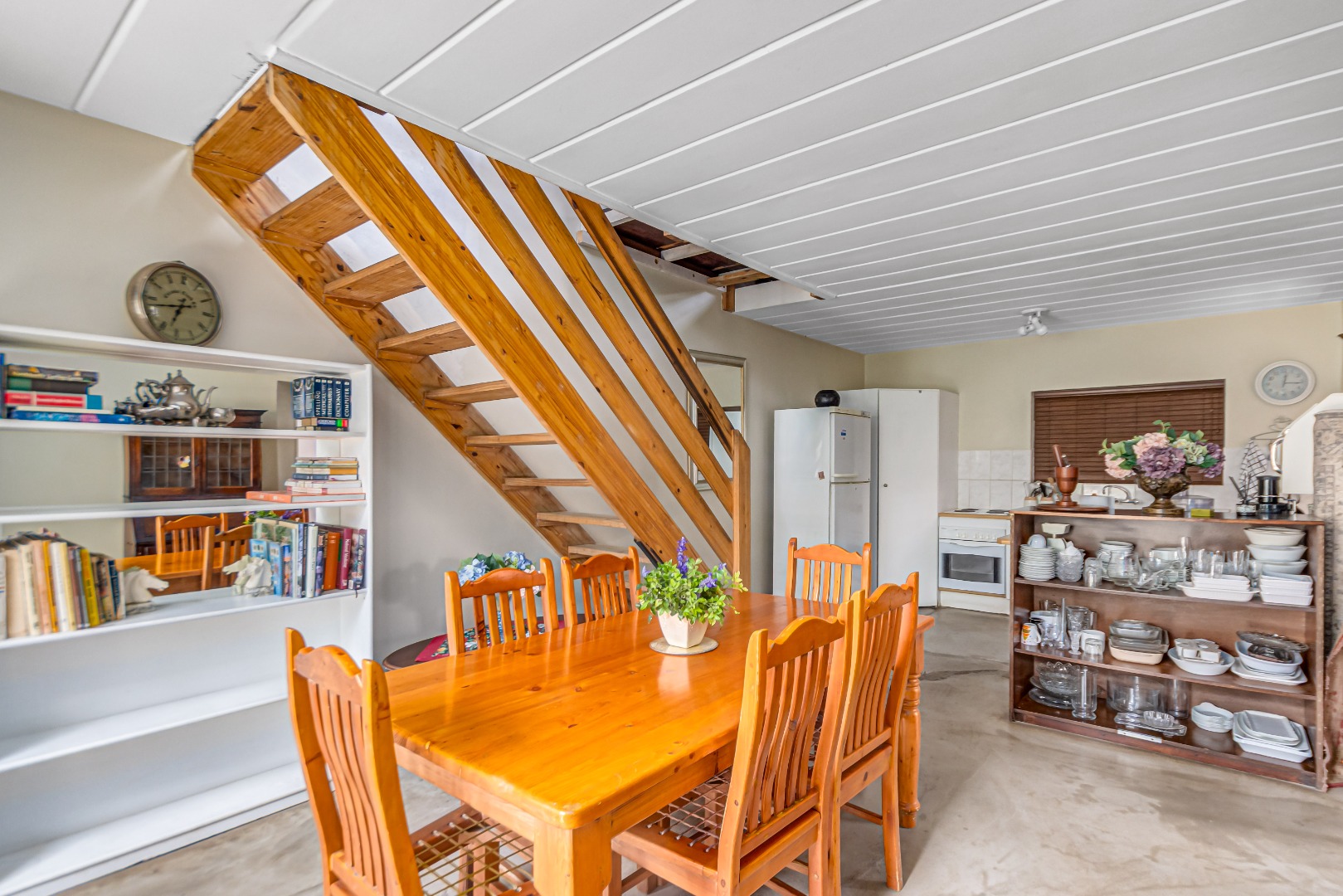 This property is currently stripped of most tiles and flooring, offering a blank canvas for your dream finishes. Please note: the upstairs balcony has experienced leakage, causing water damage to the bedroom ceilings and built-in cupboards, and these will need to be replaced.