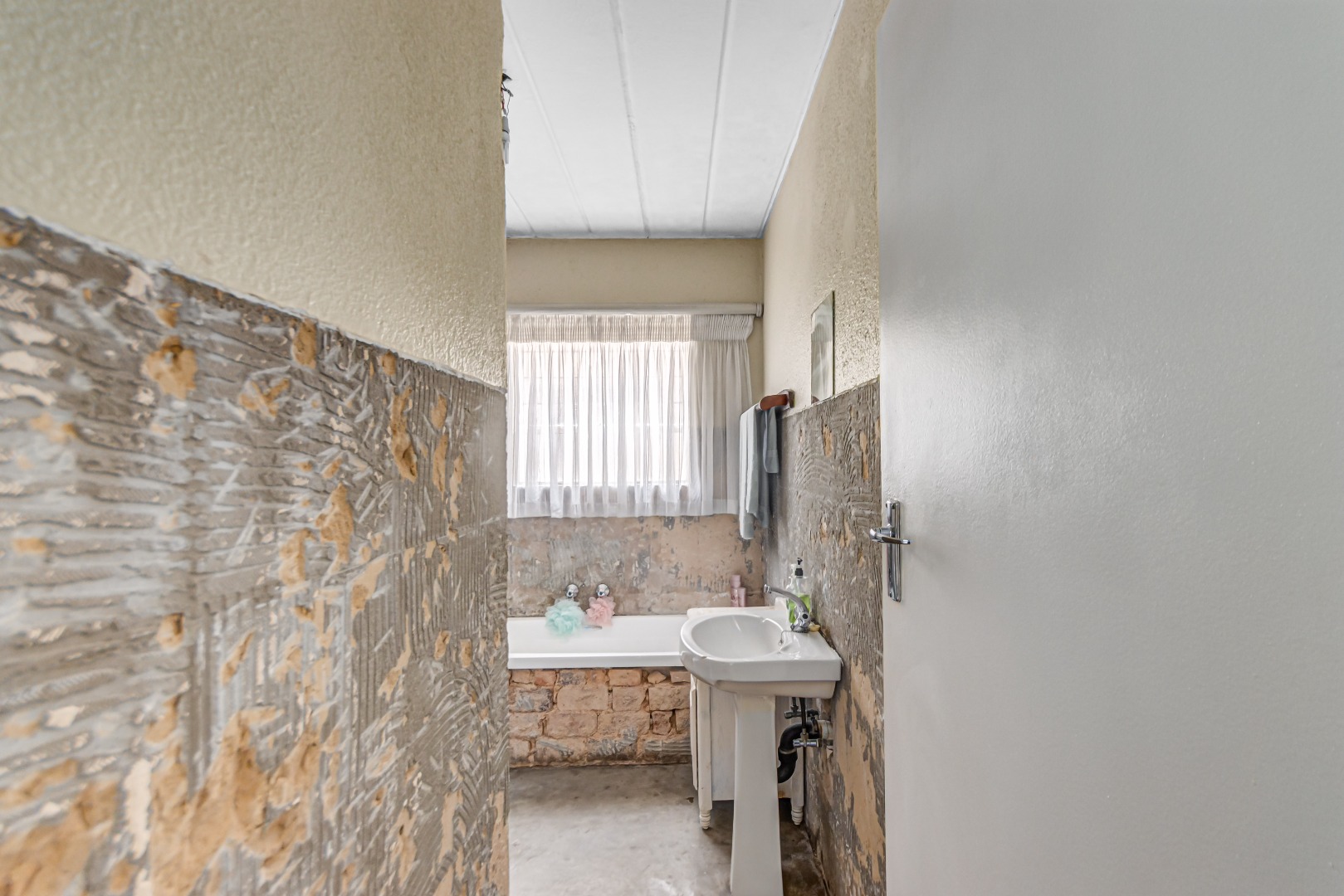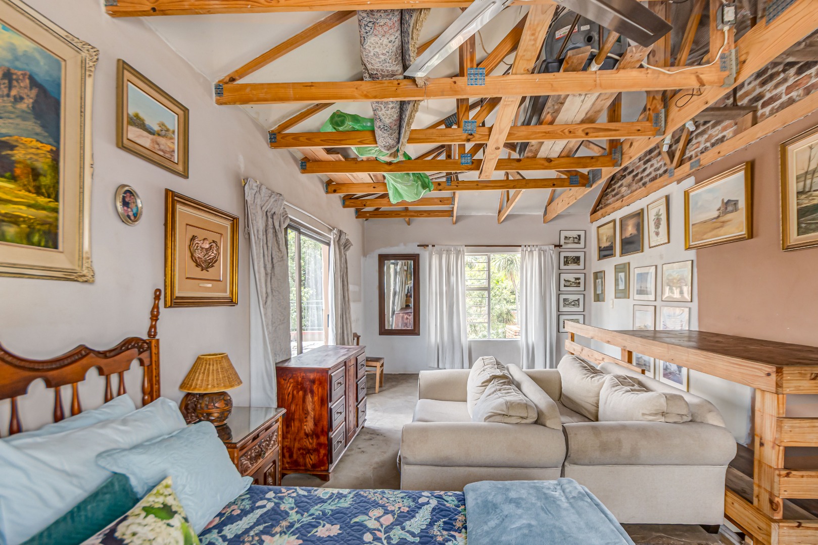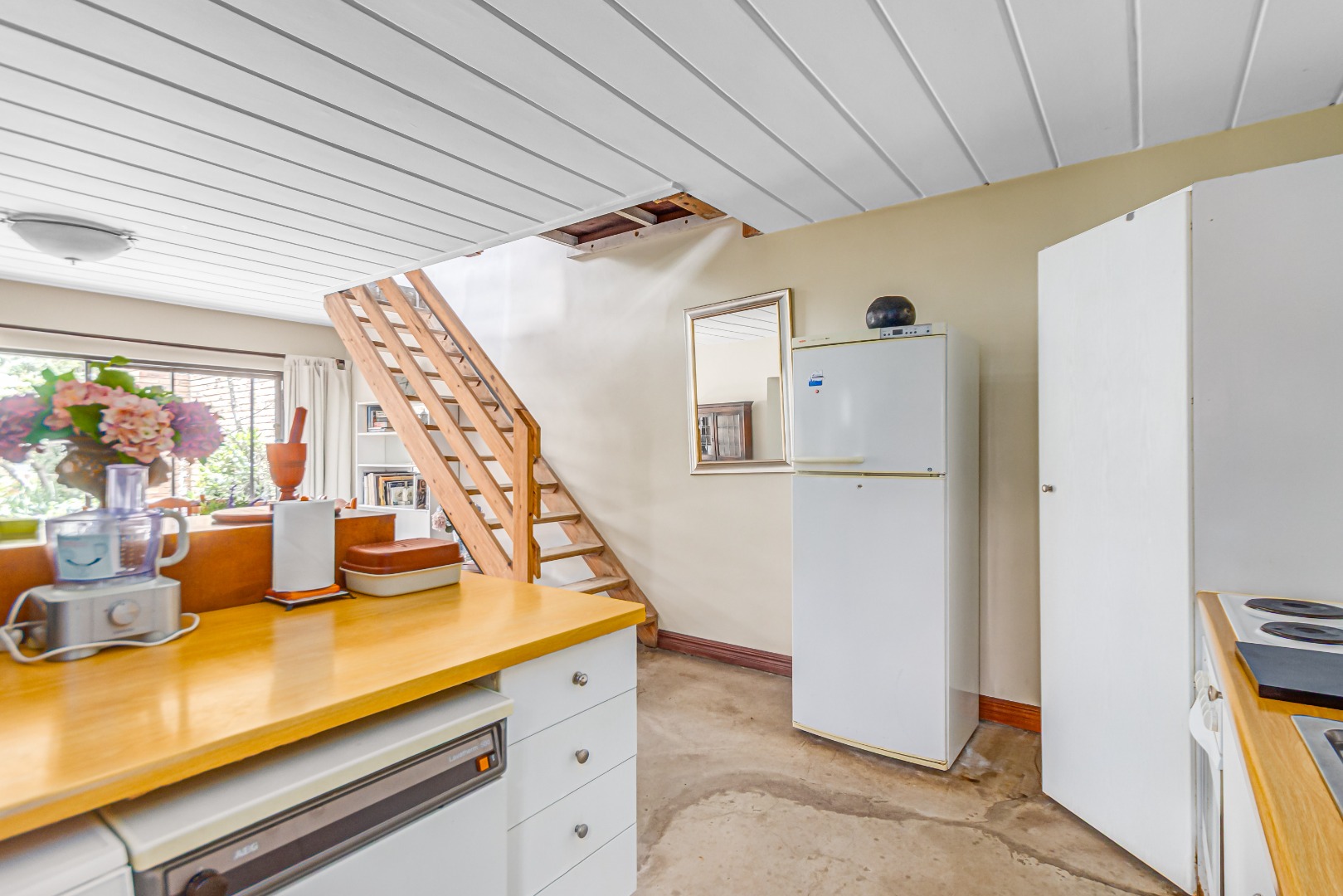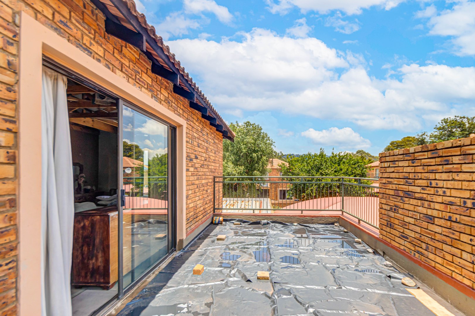 This property is currently stripped of most tiles and flooring, offering a blank canvas for your dream finishes. Please note: the upstairs balcony has experienced leakage, causing water damage to the bedroom ceilings and built-in cupboards, and these will need to be replaced.