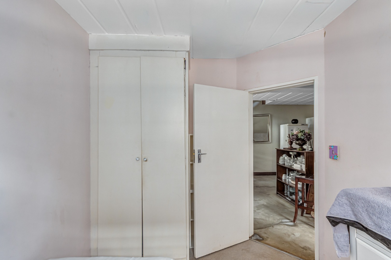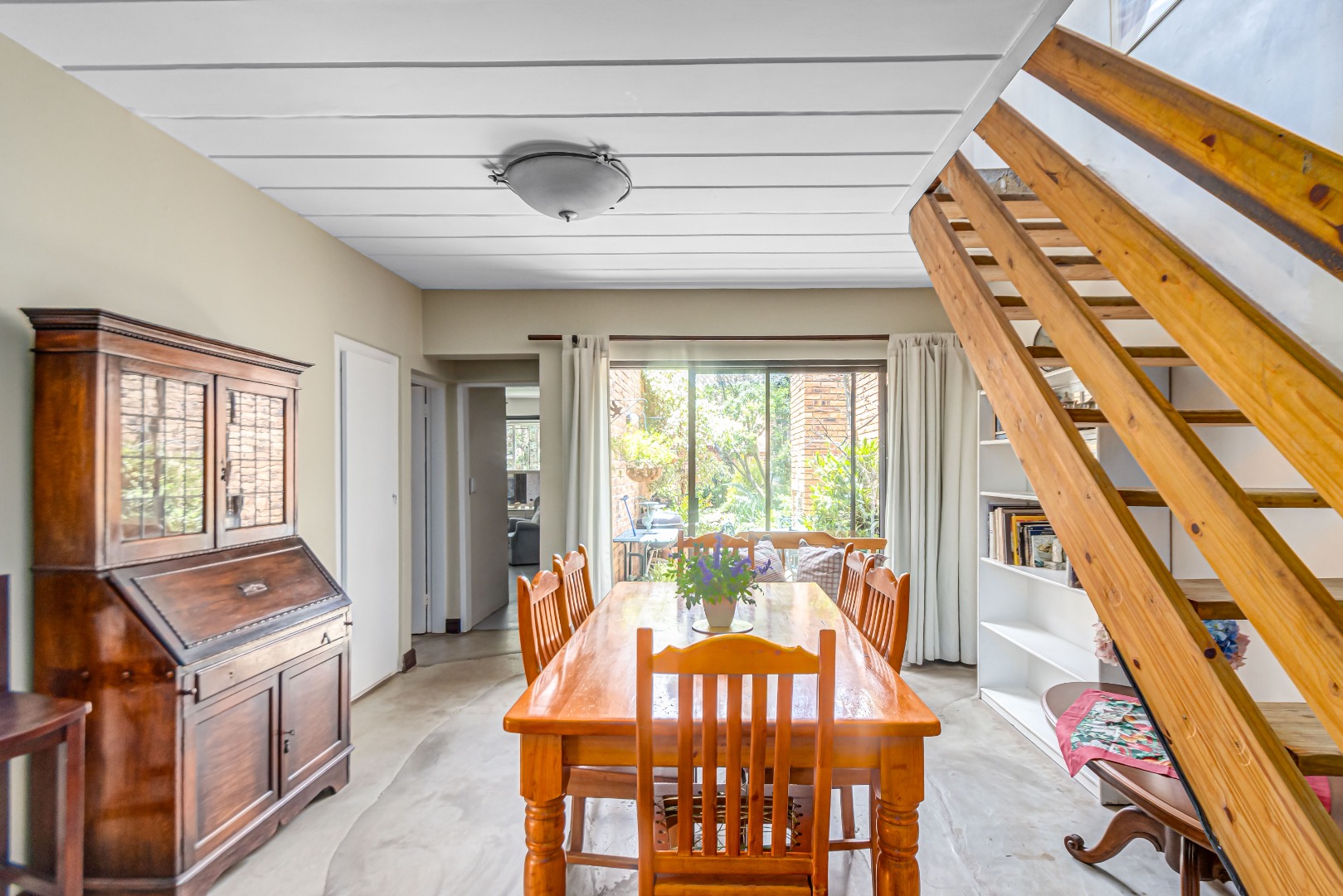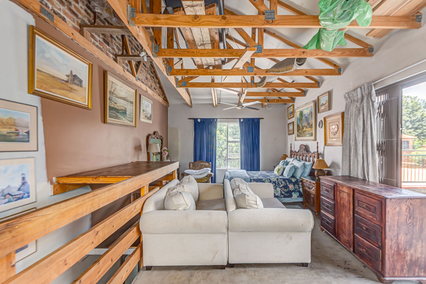 This property is currently stripped of most tiles and flooring, offering a blank canvas for your dream finishes. Please note: the upstairs balcony has experienced leakage, causing water damage to the bedroom ceilings and built-in cupboards, and these will need to be replaced.
