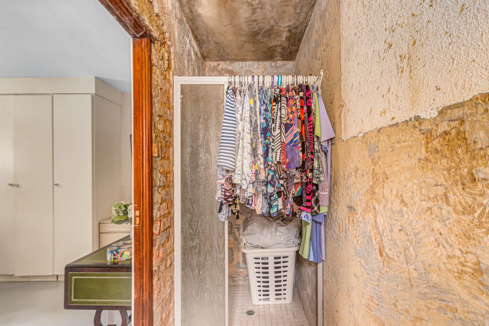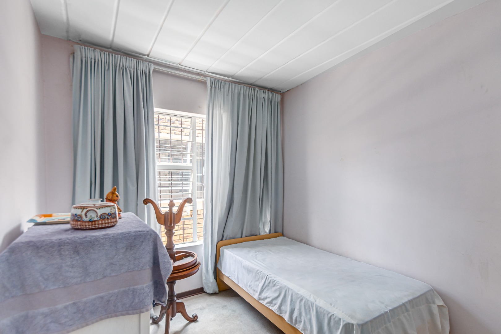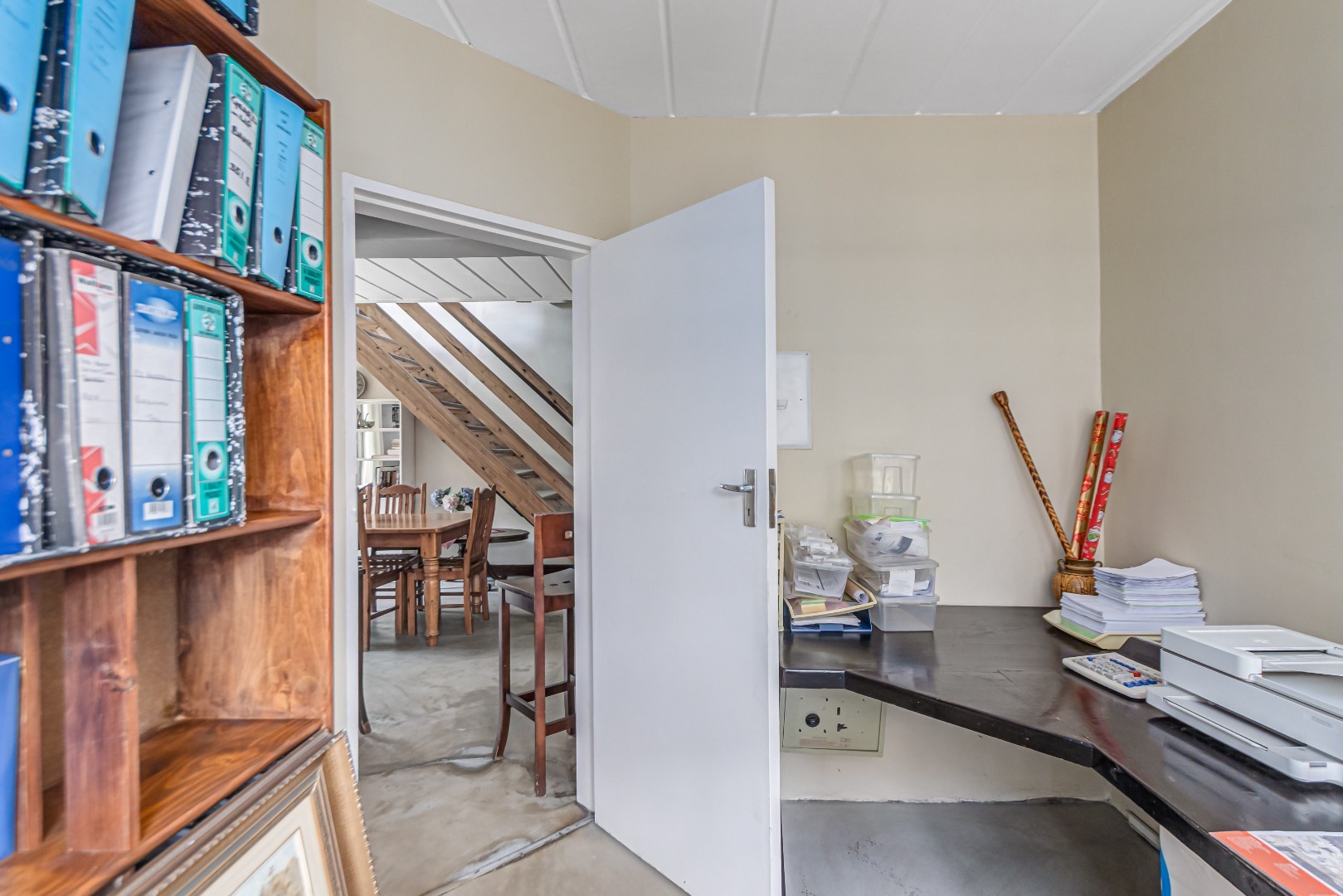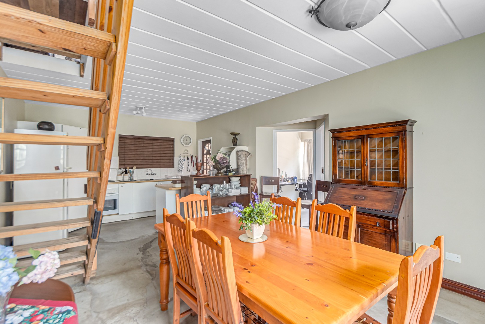 This property is currently stripped of most tiles and flooring, offering a blank canvas for your dream finishes. Please note: the upstairs balcony has experienced leakage, causing water damage to the bedroom ceilings and built-in cupboards, and these will need to be replaced.