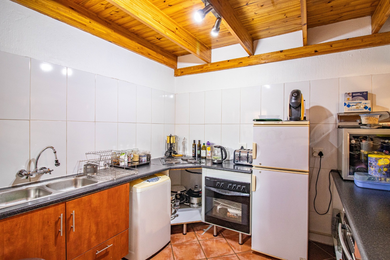 Come and discover this charming 3-bedroom, 2-bathroom home nestled in a quiet cul-de-sac within a secure complex in Weltevreden Park, Roodepoort. You'll love the traditional face-brick exterior and the established, private garden areas, perfect for enjoying the outdoors. While the garden offers mature trees and paved pathways, it also presents a lovely opportunity for you to add your personal touch and bring it to its full potential. Step inside and feel right at home in the open-plan living and dining area, featuring striking exposed wooden beams on the ceiling and durable terracotta tiled flooring throughout. It’s a super cozy space, brightened by natural light, and even includes a dedicated study for those work-from-home days. The unique open-tread wooden staircase adds a touch of character, leading you to the comfortable bedrooms, with one offering the convenience of an en-suite bathroom. Outside, the property boasts a fantastic paved patio area with a built-in braai – just imagine those weekend get-togethers! There's also a double garage and an additional parking spot, so space for vehicles is sorted. For your peace of mind, the home is situated in a security complex with 24-hour security, a security post, access gate, electric fencing, CCTV, and an intercom system. Plus, it's fibre-ready, keeping you connected. This suburban gem offers a relaxed lifestyle with great security features.