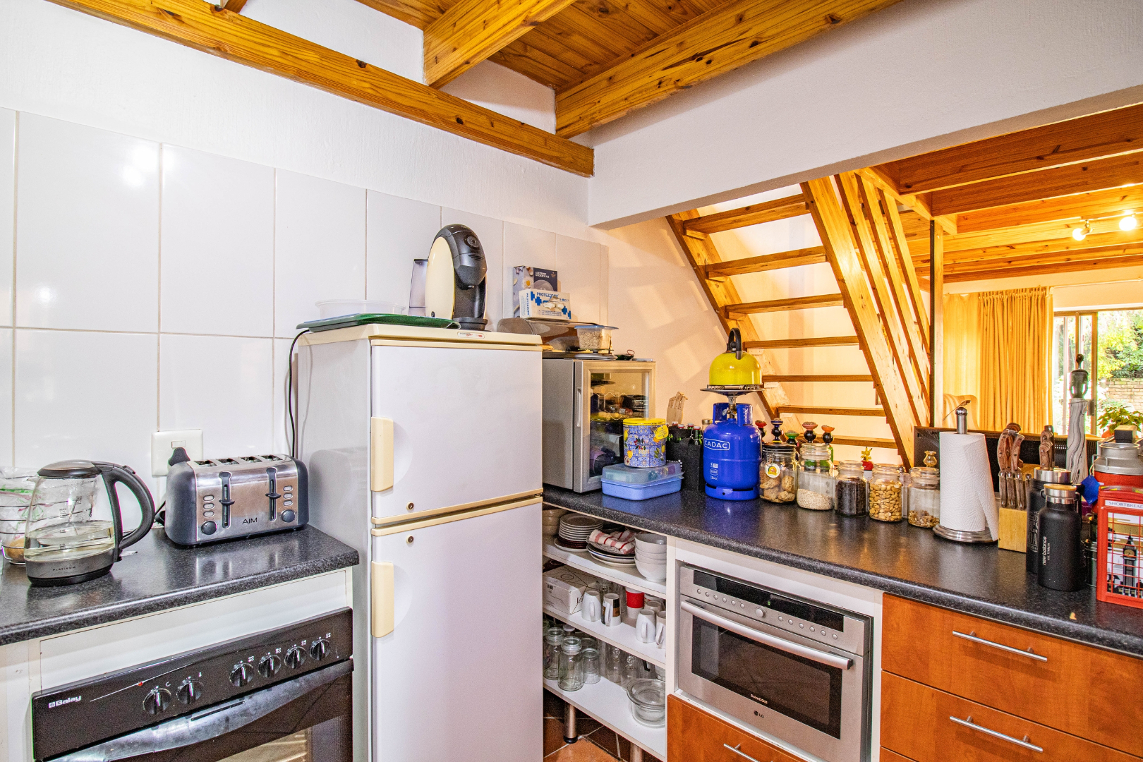 Come and discover this charming 3-bedroom, 2-bathroom home nestled in a quiet cul-de-sac within a secure complex in Weltevreden Park, Roodepoort. You'll love the traditional face-brick exterior and the established, private garden areas, perfect for enjoying the outdoors. While the garden offers mature trees and paved pathways, it also presents a lovely opportunity for you to add your personal touch and bring it to its full potential. Step inside and feel right at home in the open-plan living and dining area, featuring striking exposed wooden beams on the ceiling and durable terracotta tiled flooring throughout. It’s a super cozy space, brightened by natural light, and even includes a dedicated study for those work-from-home days. The unique open-tread wooden staircase adds a touch of character, leading you to the comfortable bedrooms, with one offering the convenience of an en-suite bathroom. Outside, the property boasts a fantastic paved patio area with a built-in braai – just imagine those weekend get-togethers! There's also a double garage and an additional parking spot, so space for vehicles is sorted. For your peace of mind, the home is situated in a security complex with 24-hour security, a security post, access gate, electric fencing, CCTV, and an intercom system. Plus, it's fibre-ready, keeping you connected. This suburban gem offers a relaxed lifestyle with great security features.