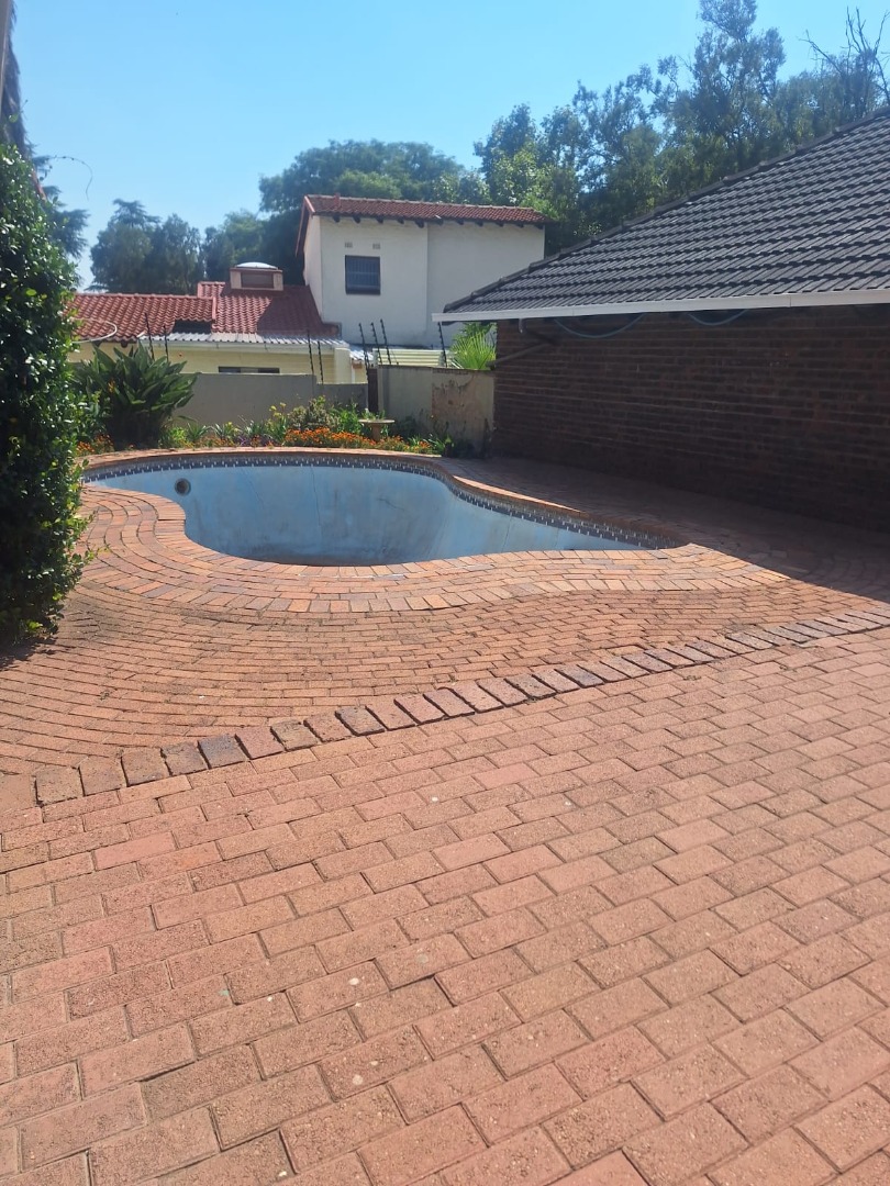 The painted walls have confidently survived several colours. The single garage has its own opinion and the pool has taken a long rest from holding water.