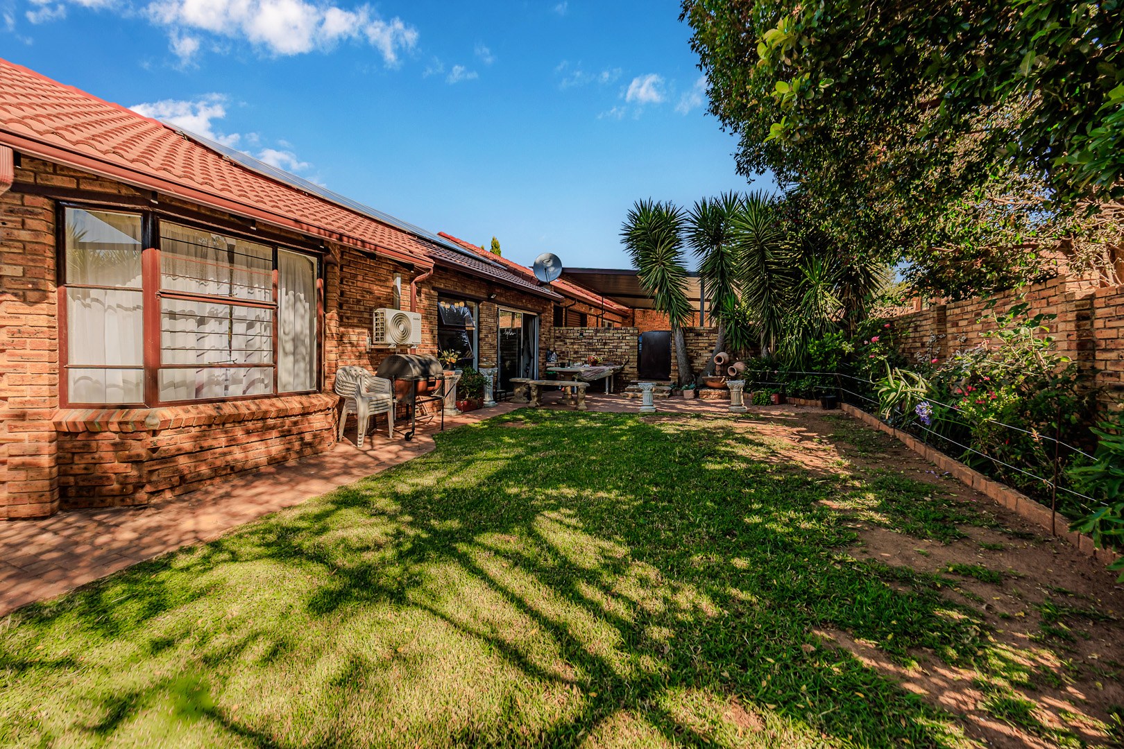 The property boasts excellent outdoor amenities, including a private garden and a paved patio, ideal for entertaining or enjoying the South African sunshine. Sliding doors seamlessly connect the indoor and outdoor spaces, enhancing the flow of the home. Practical features include two garages and two additional parking spaces, along with a convenient wendy house for storage.