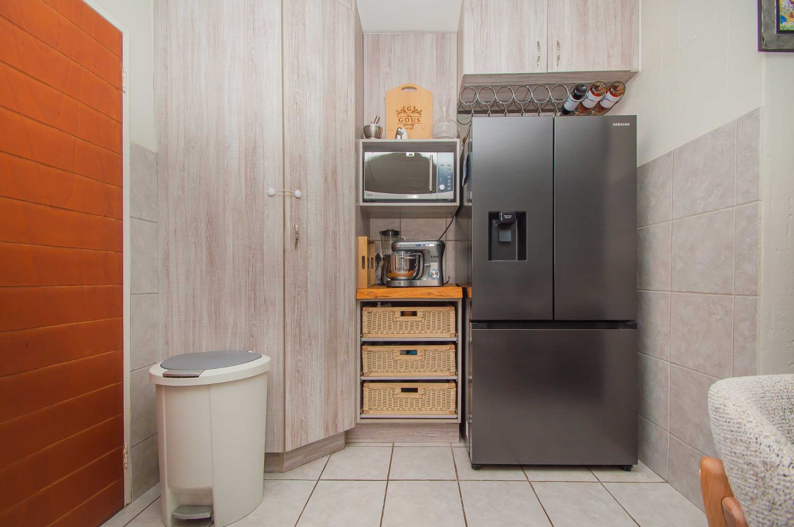 Security is paramount, with features including an access gate, electric fencing, and an intercom system, ensuring peace of mind within the complex environment. Furthermore, the property is equipped with modern sustainability features, including a rental solar system with 8x panels and a 5kva Inverter and 10KW Battery, the complex allows generators, it is fibre ready, has a heat pump geyser, a double automated garage with direct access into the Home.