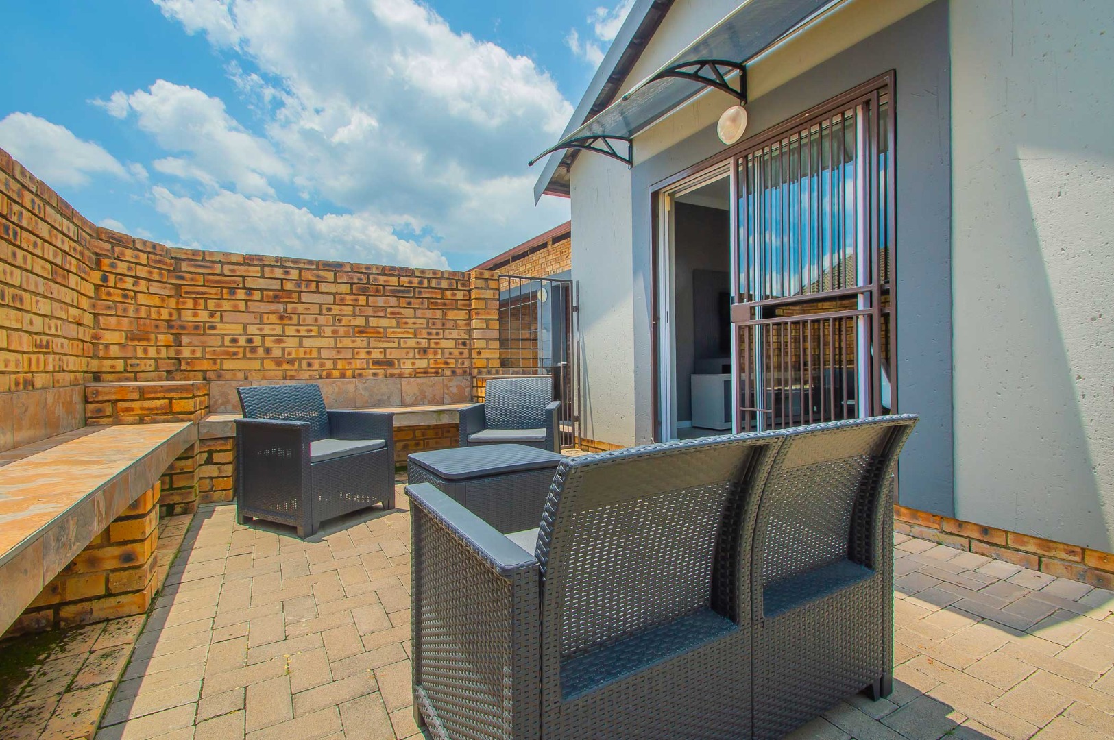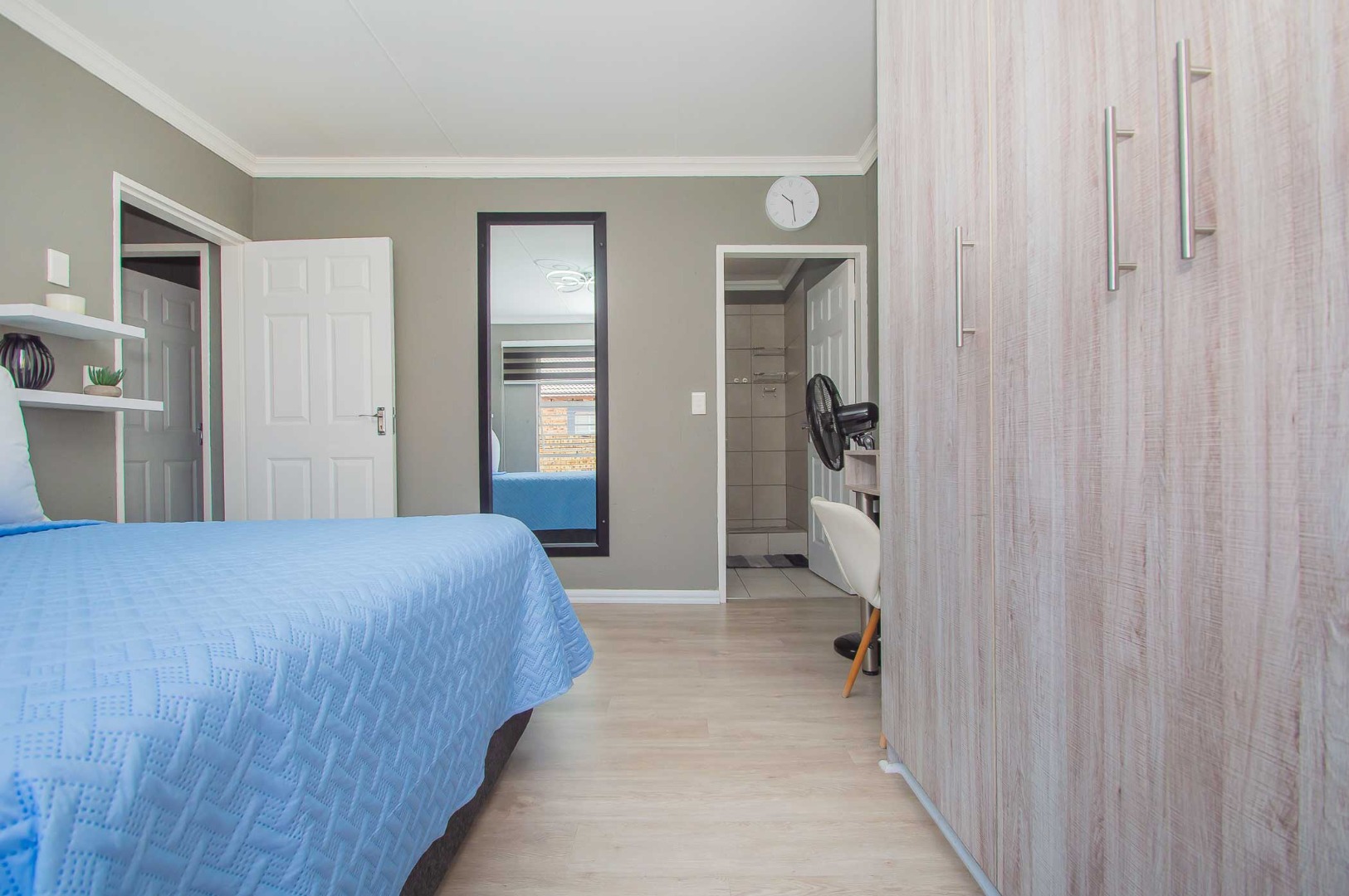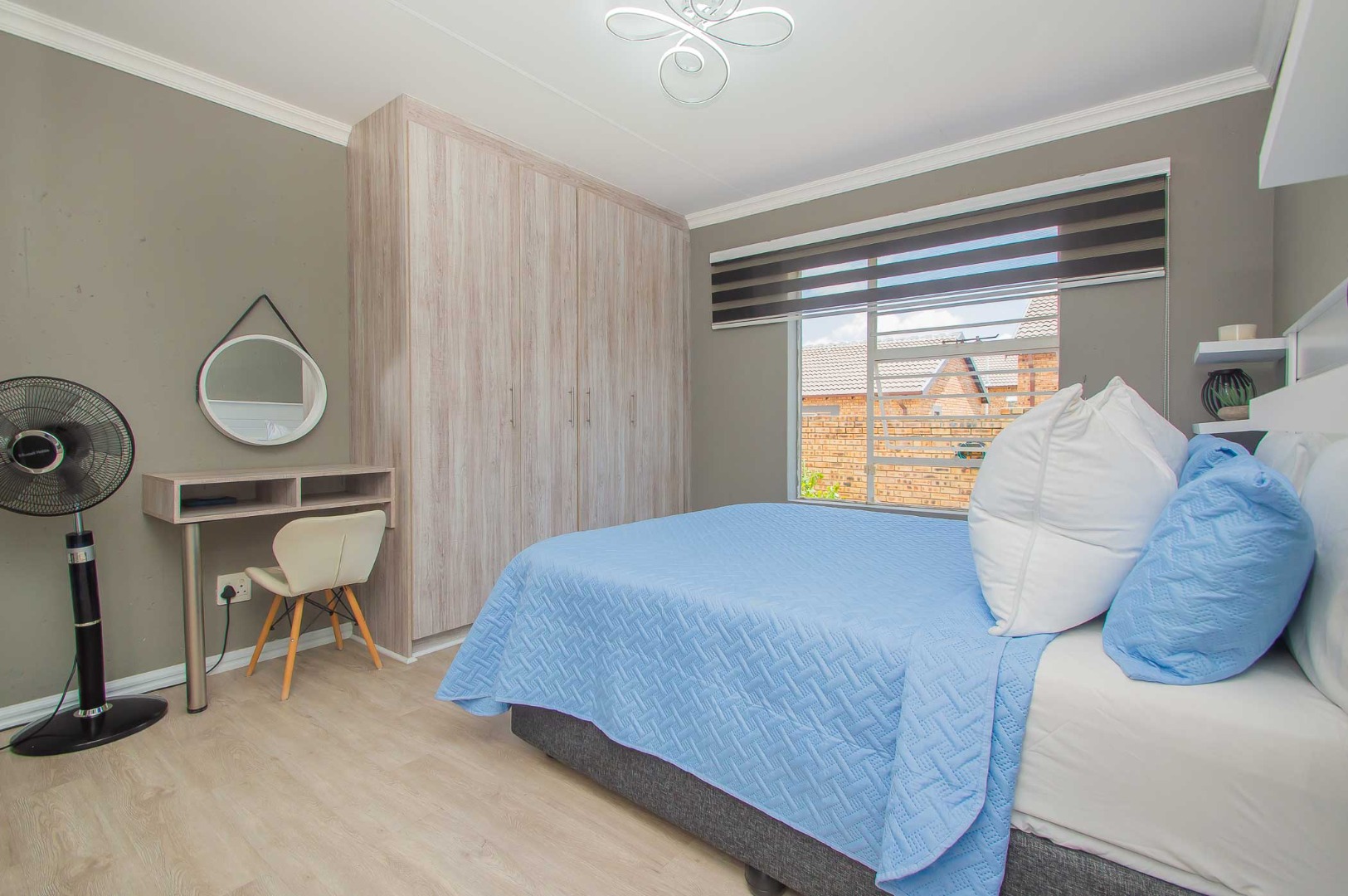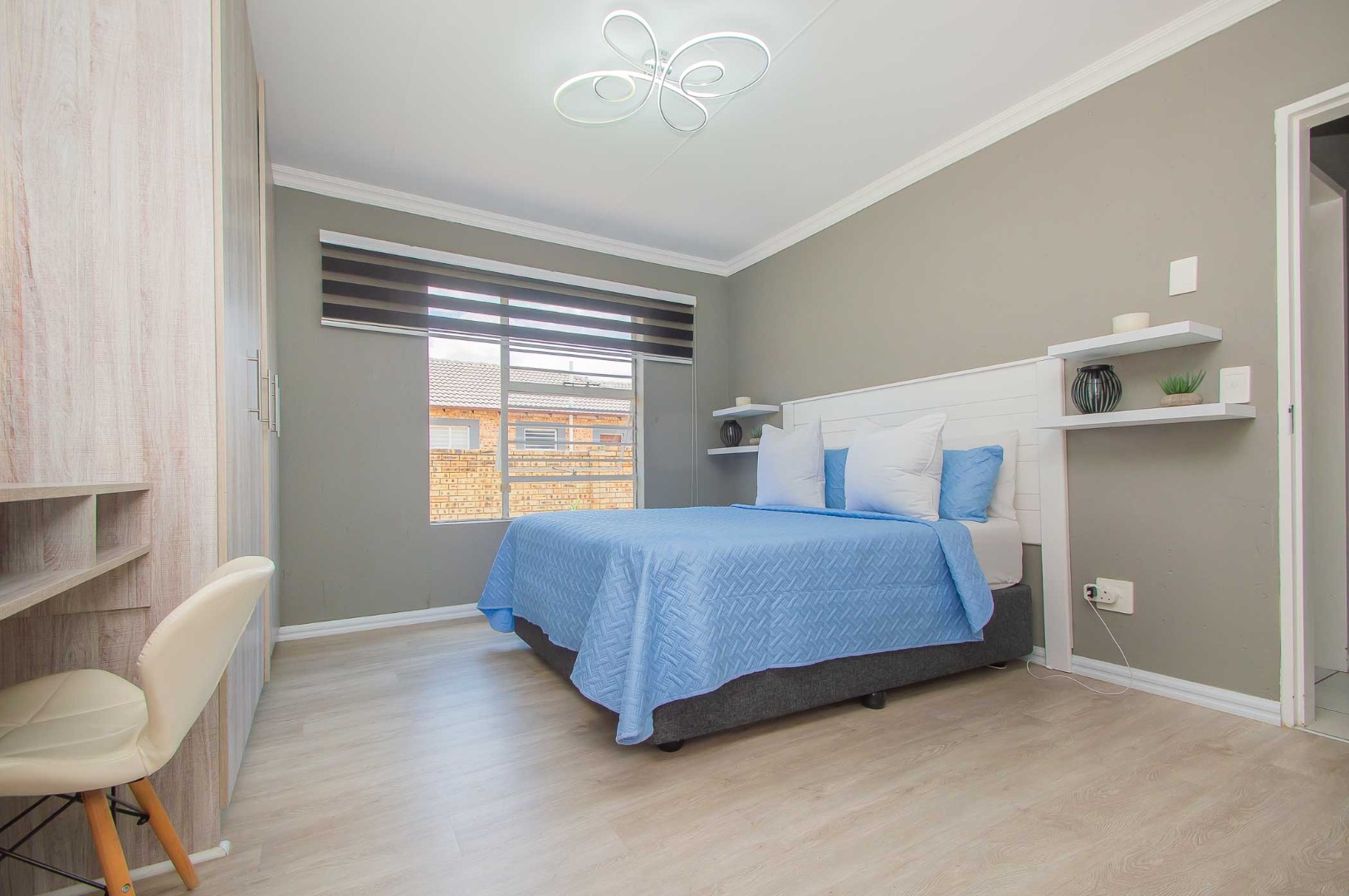 The main bedroom is double volume in size, has modern built-in cupboards and a modern en-suite bathroom that has a double volume shower, basin and toilet. The second and third bedrooms are spacious and have modern built-in cupboards and are complimented by the second full bathroom that has modern finishes. This Home is tiled throughout and the bedrooms have laminated flooring.