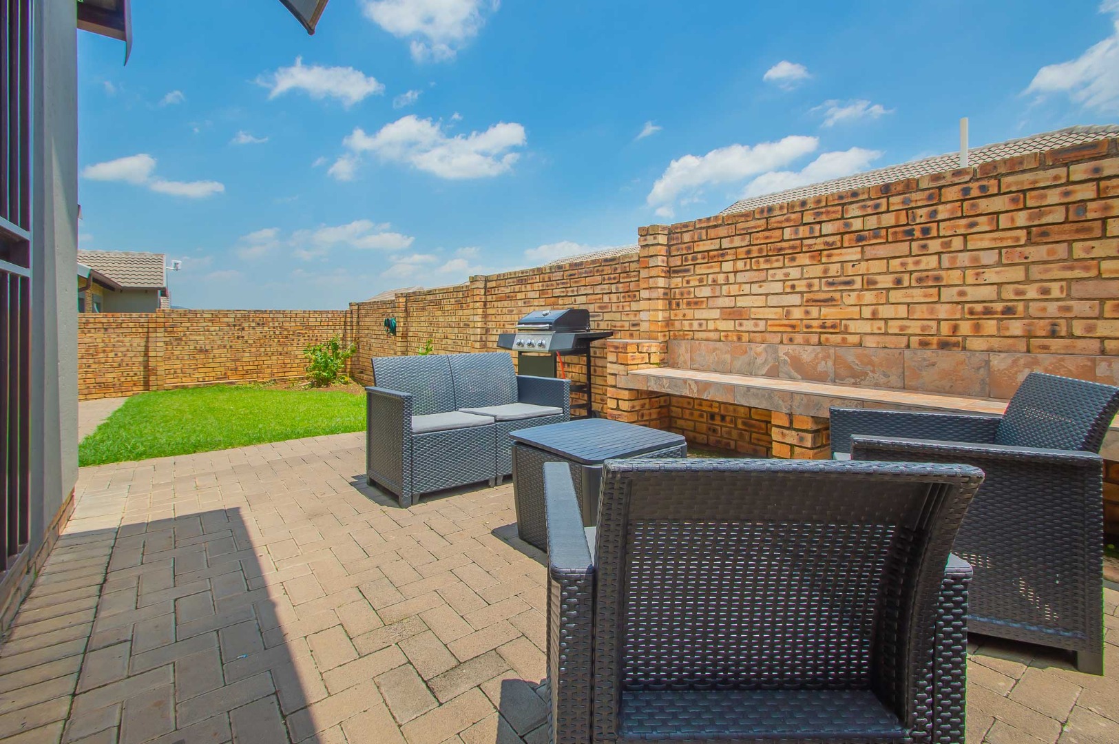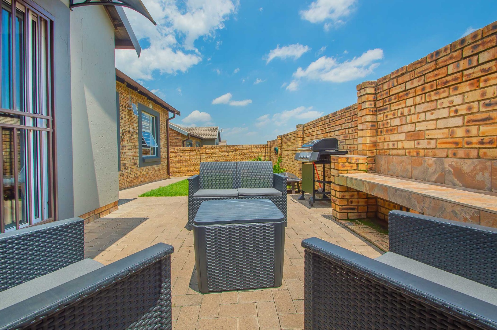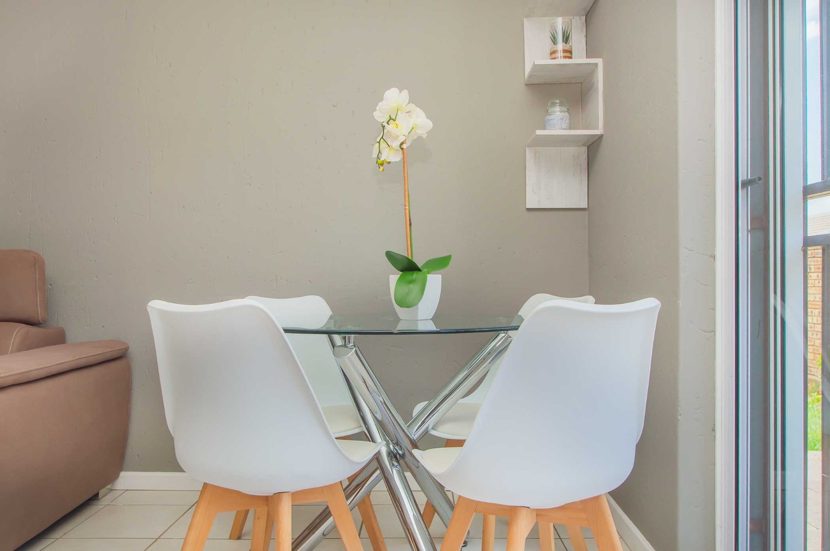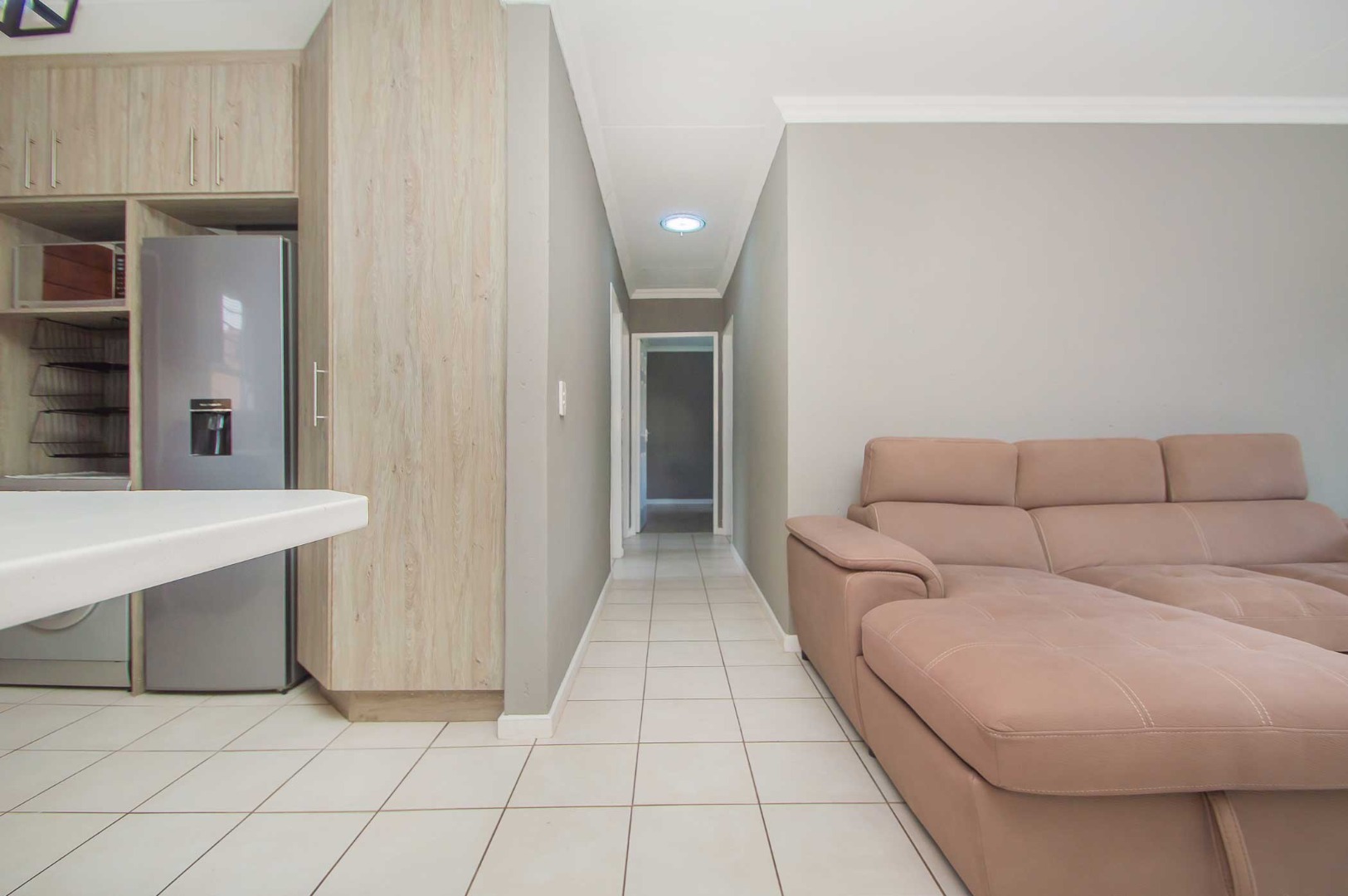 The main bedroom is double volume in size, has modern built-in cupboards and a modern en-suite bathroom that has a double volume shower, basin and toilet. The second and third bedrooms are spacious and have modern built-in cupboards and are complimented by the second full bathroom that has modern finishes. This Home is tiled throughout and the bedrooms have laminated flooring.