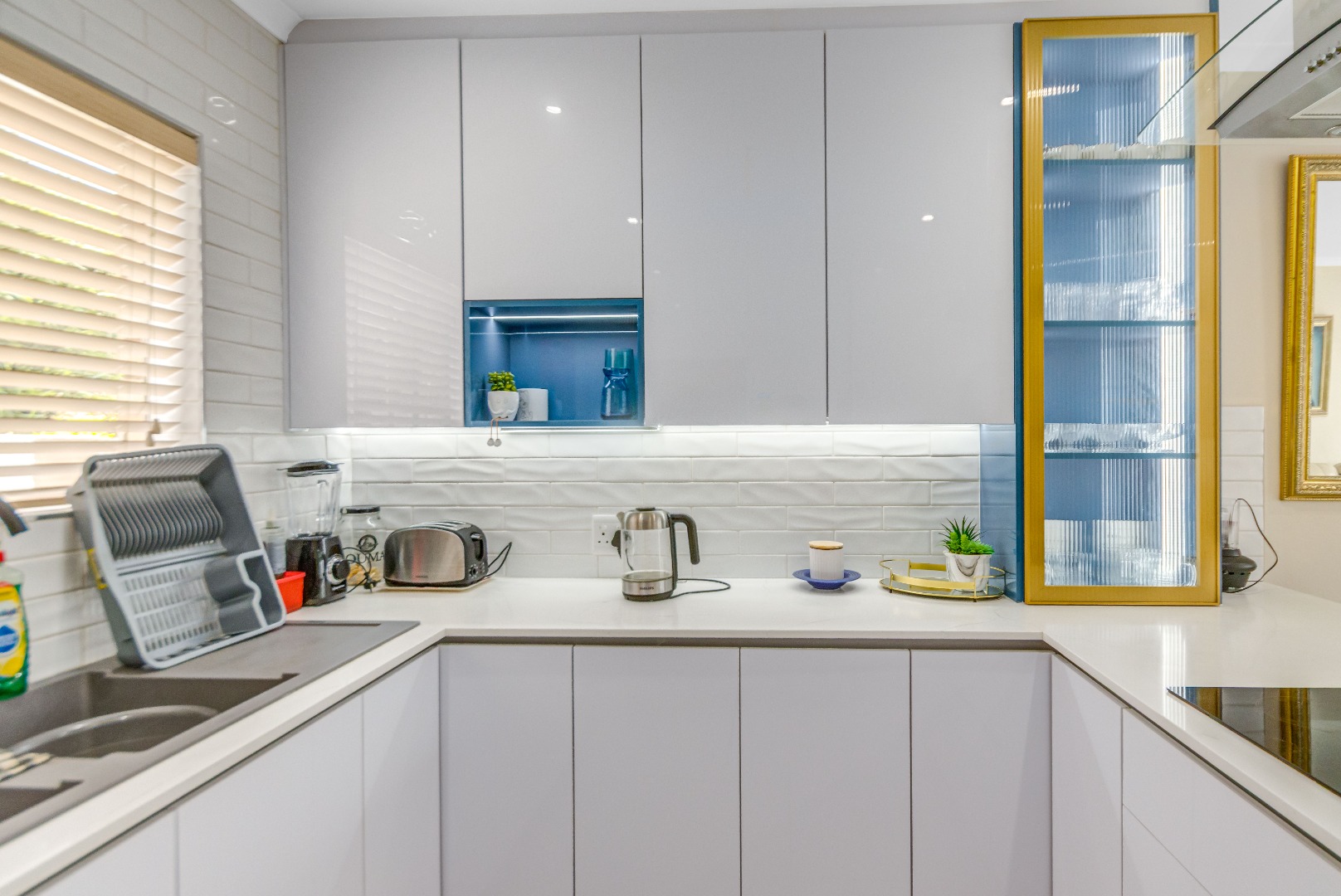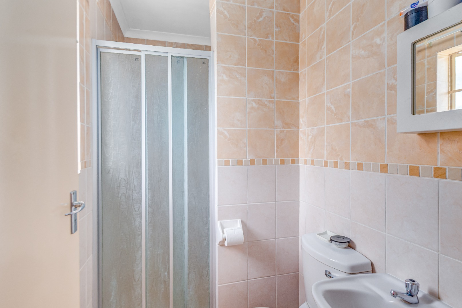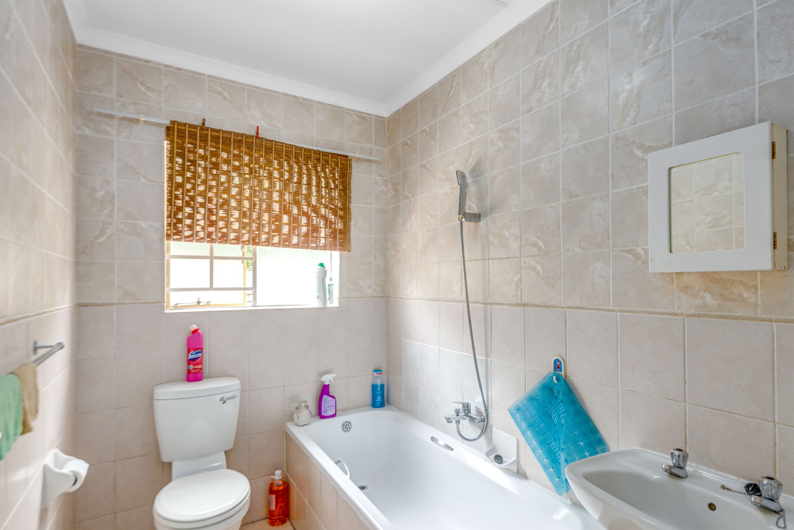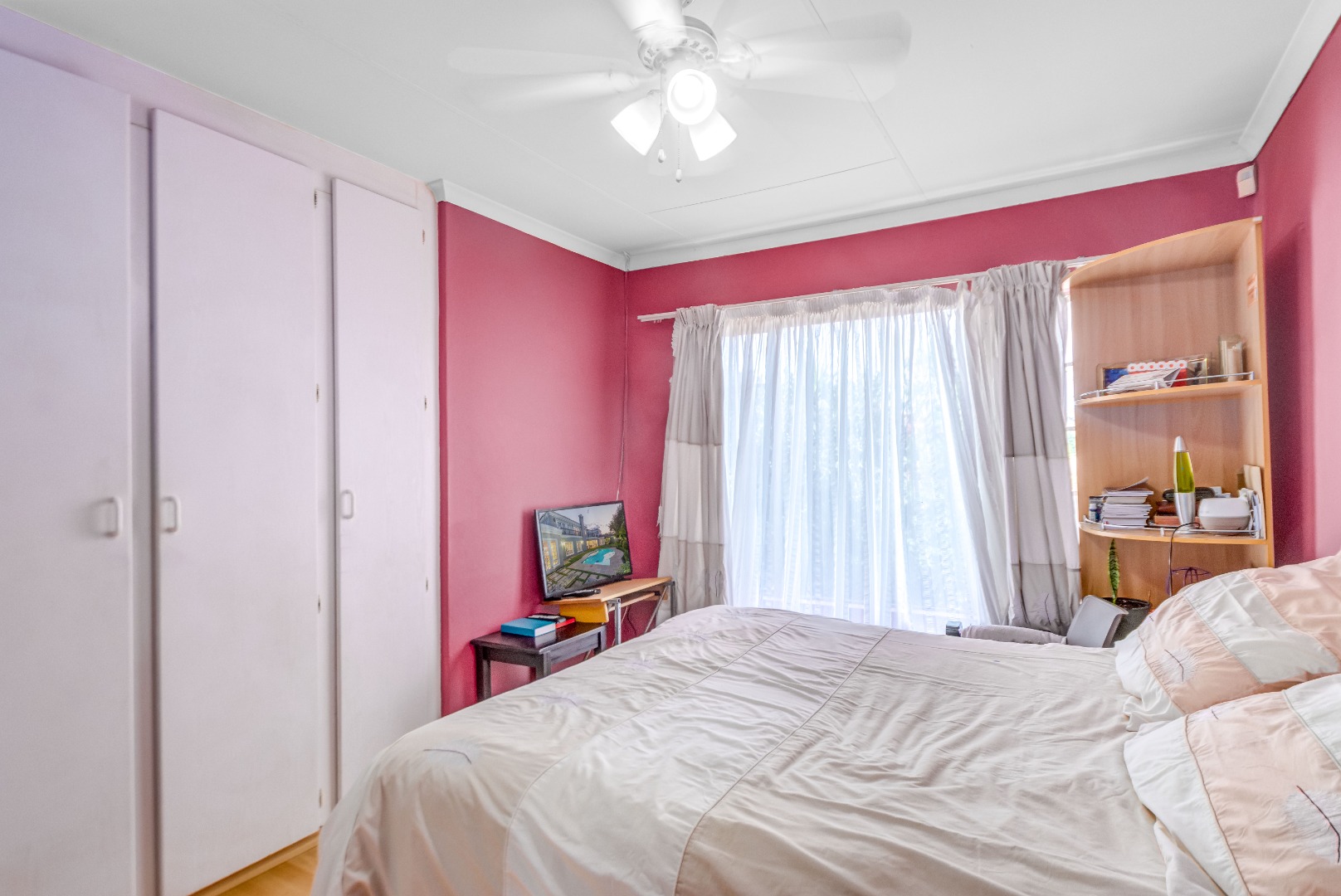 The home features three well-sized bedrooms with built-in cupboards and two bathrooms, including a main en-suite. The layout is practical and welcoming, with a neat, modern kitchen offering ample cupboard space and a breakfast counter that flows seamlessly into the living area — perfect for everyday living and entertaining.