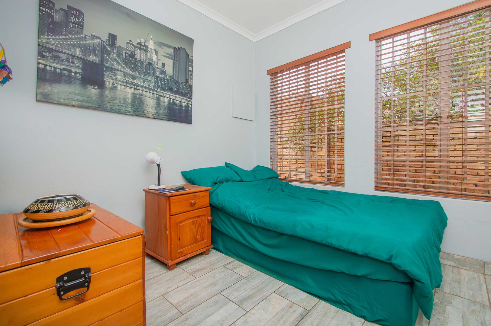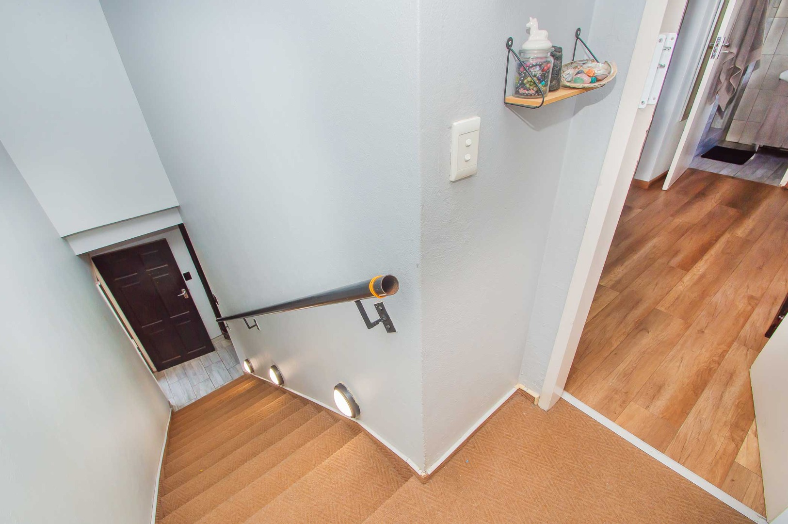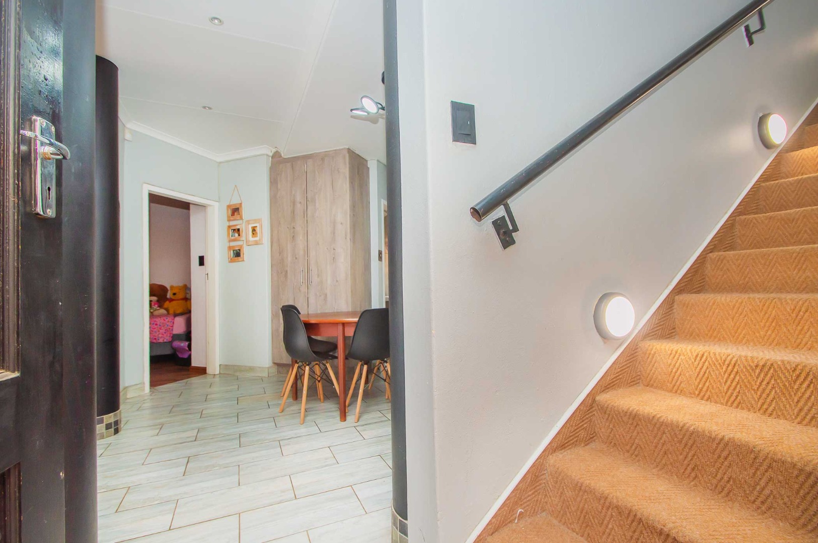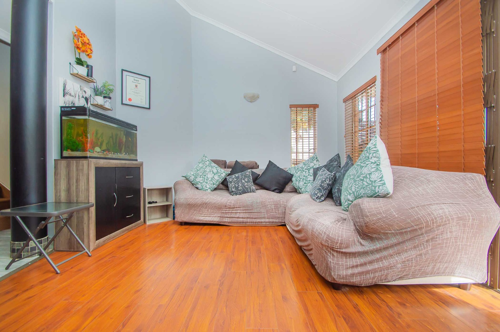 This Home offers 3x spacious bedrooms neatly appointed with built-in cupboards. The main bedroom is situated upstairs and is double volume in size and has an air-conditioning unit, a storage room and an ensuite modern bathroom. The second and the third bedrooms are downstairs and make use of the second modern bathroom.