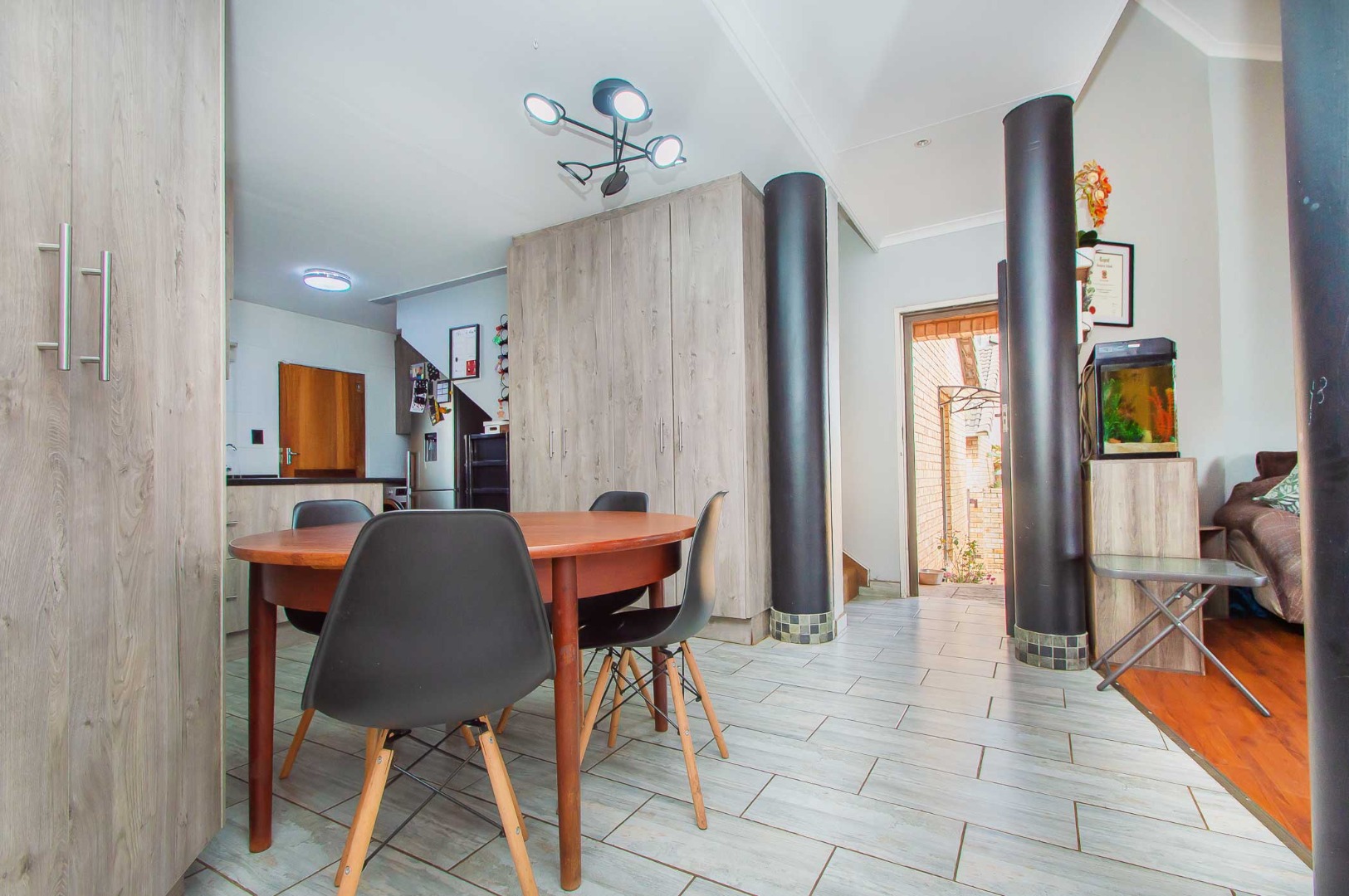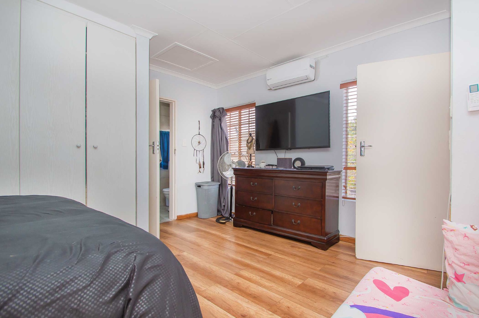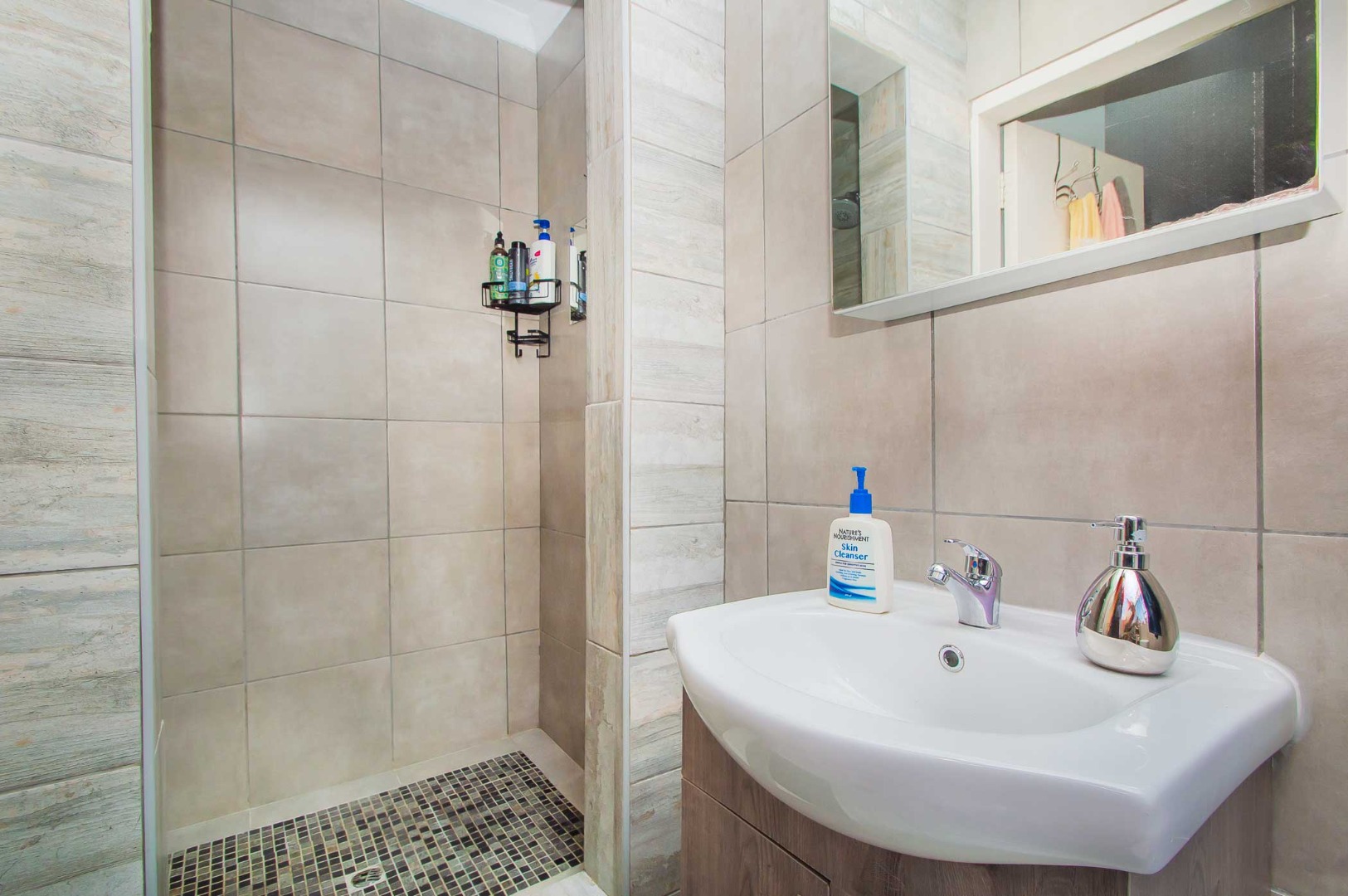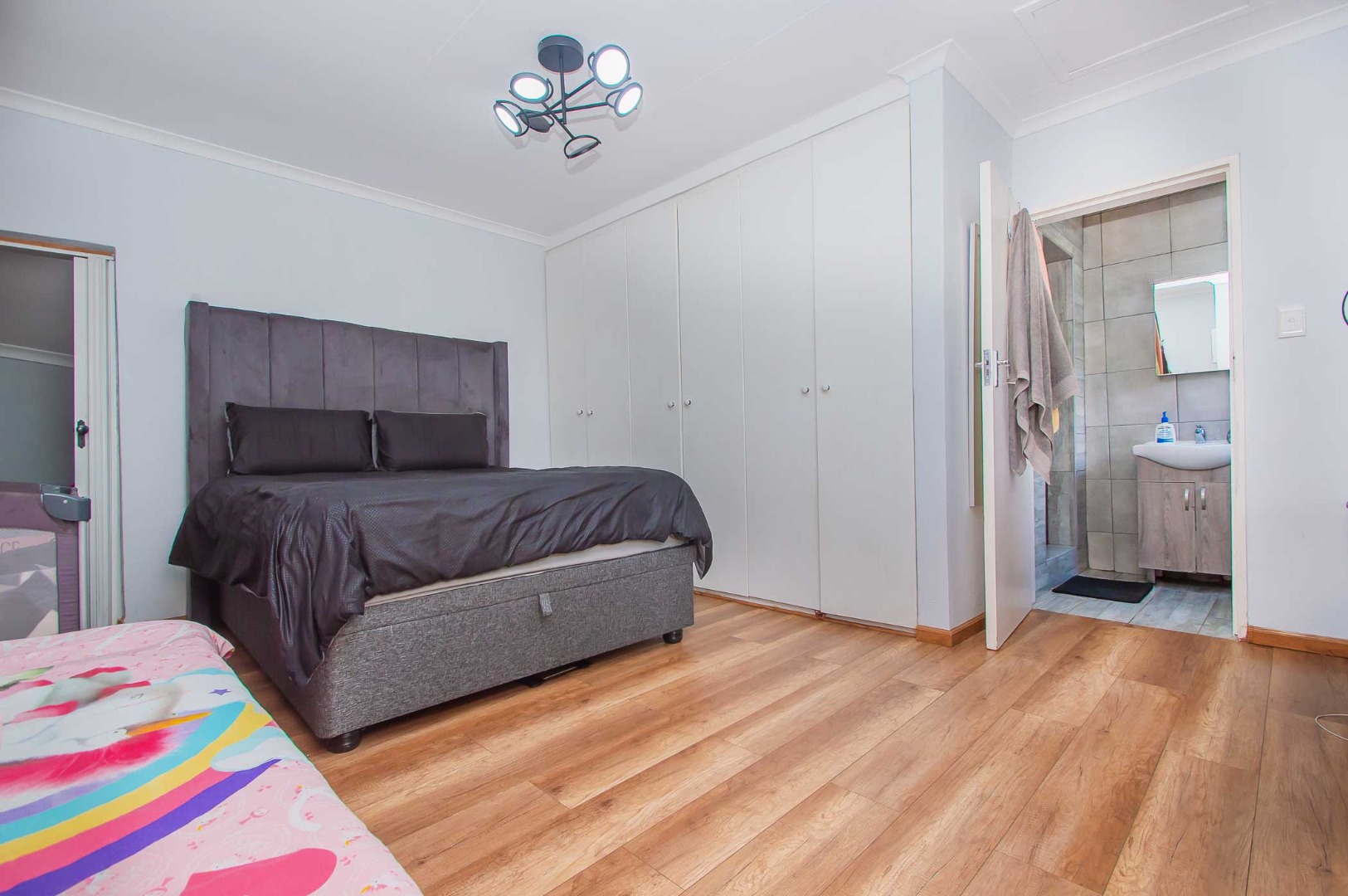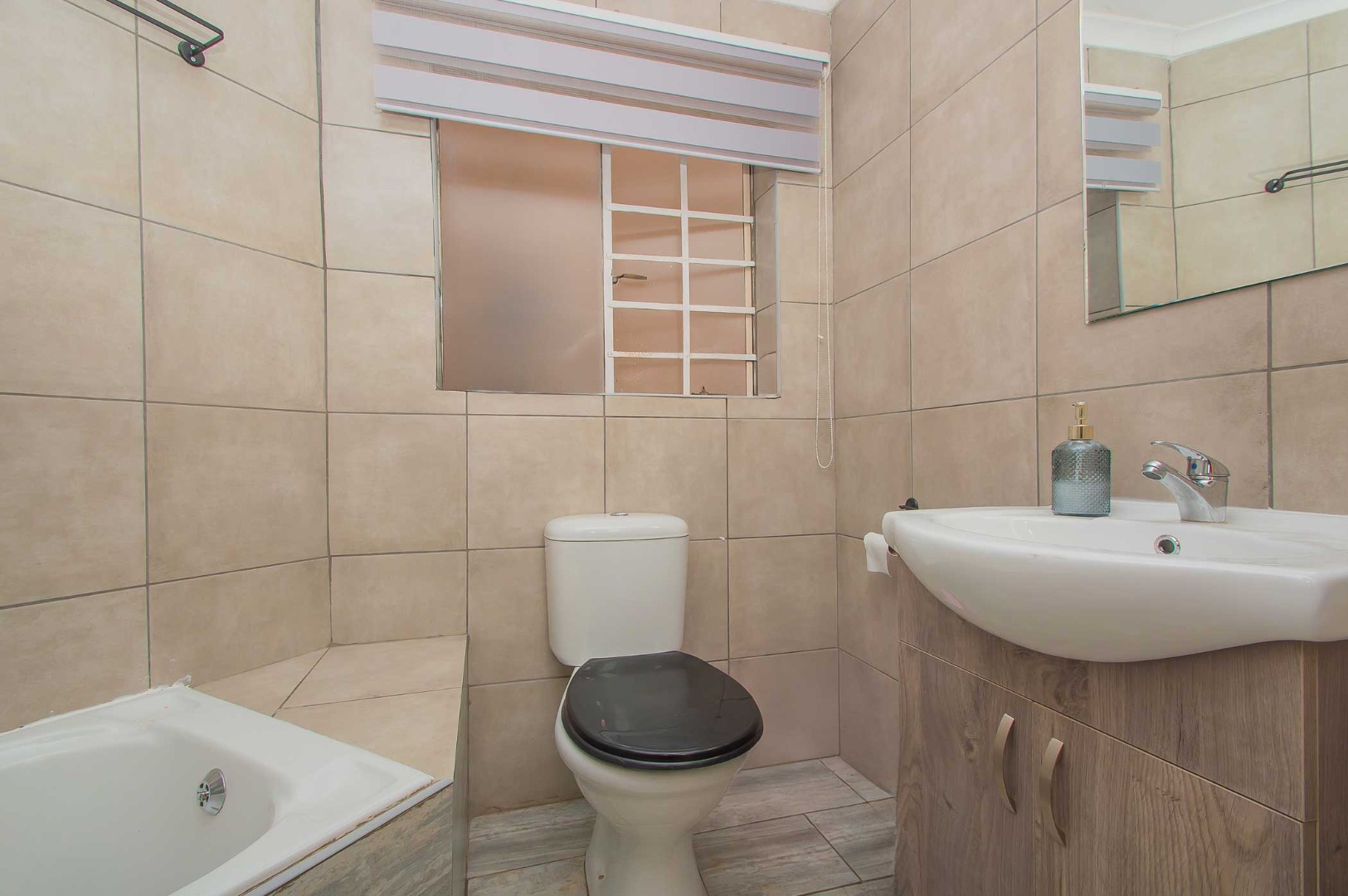 This Home offers 3x spacious bedrooms neatly appointed with built-in cupboards. The main bedroom is situated upstairs and is double volume in size and has an air-conditioning unit, a storage room and an ensuite modern bathroom. The second and the third bedrooms are downstairs and make use of the second modern bathroom.