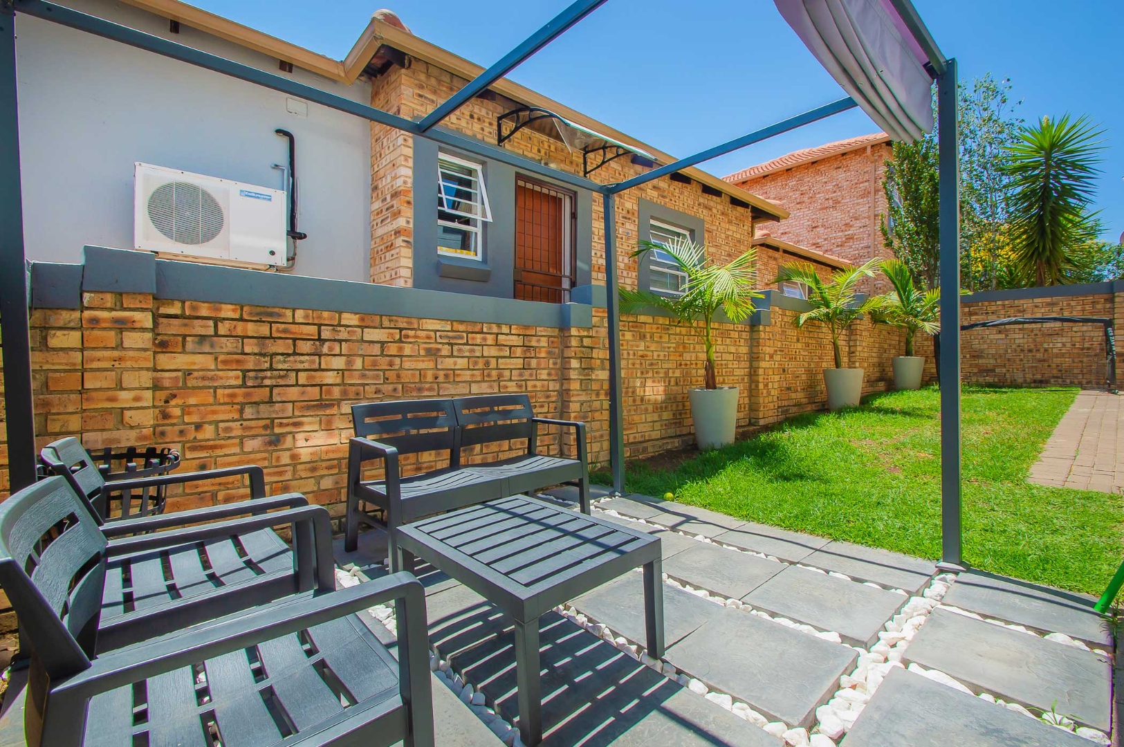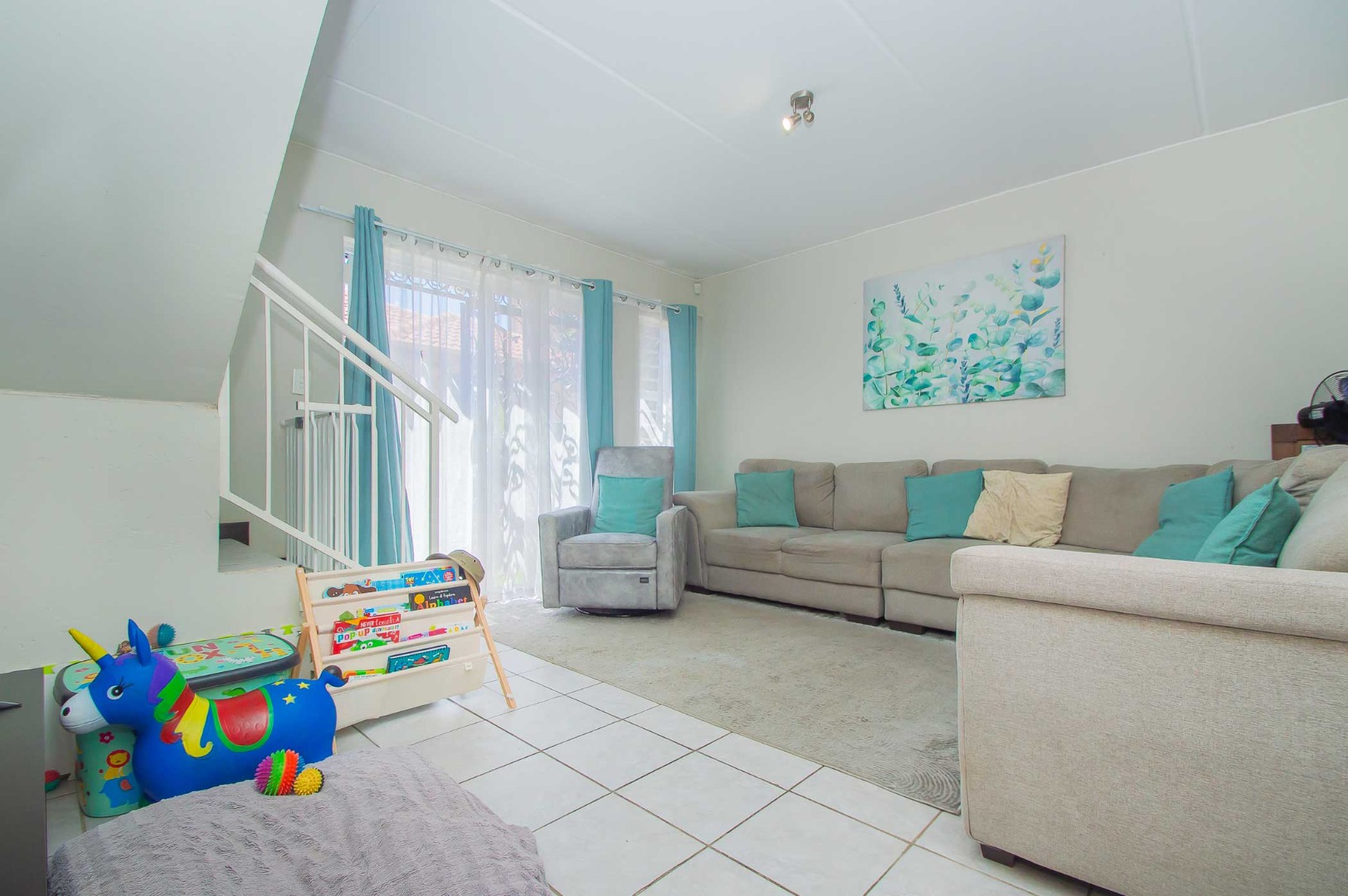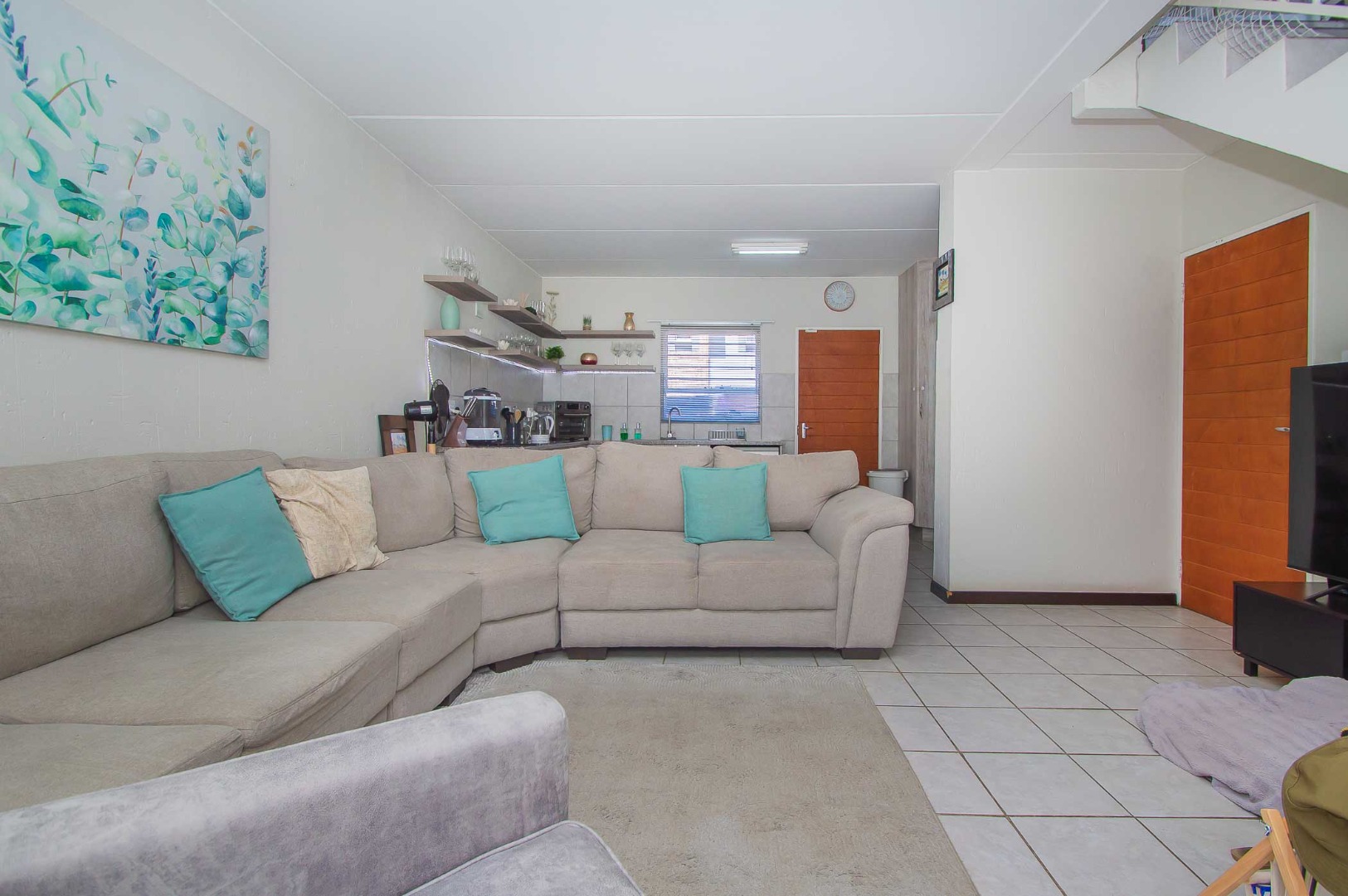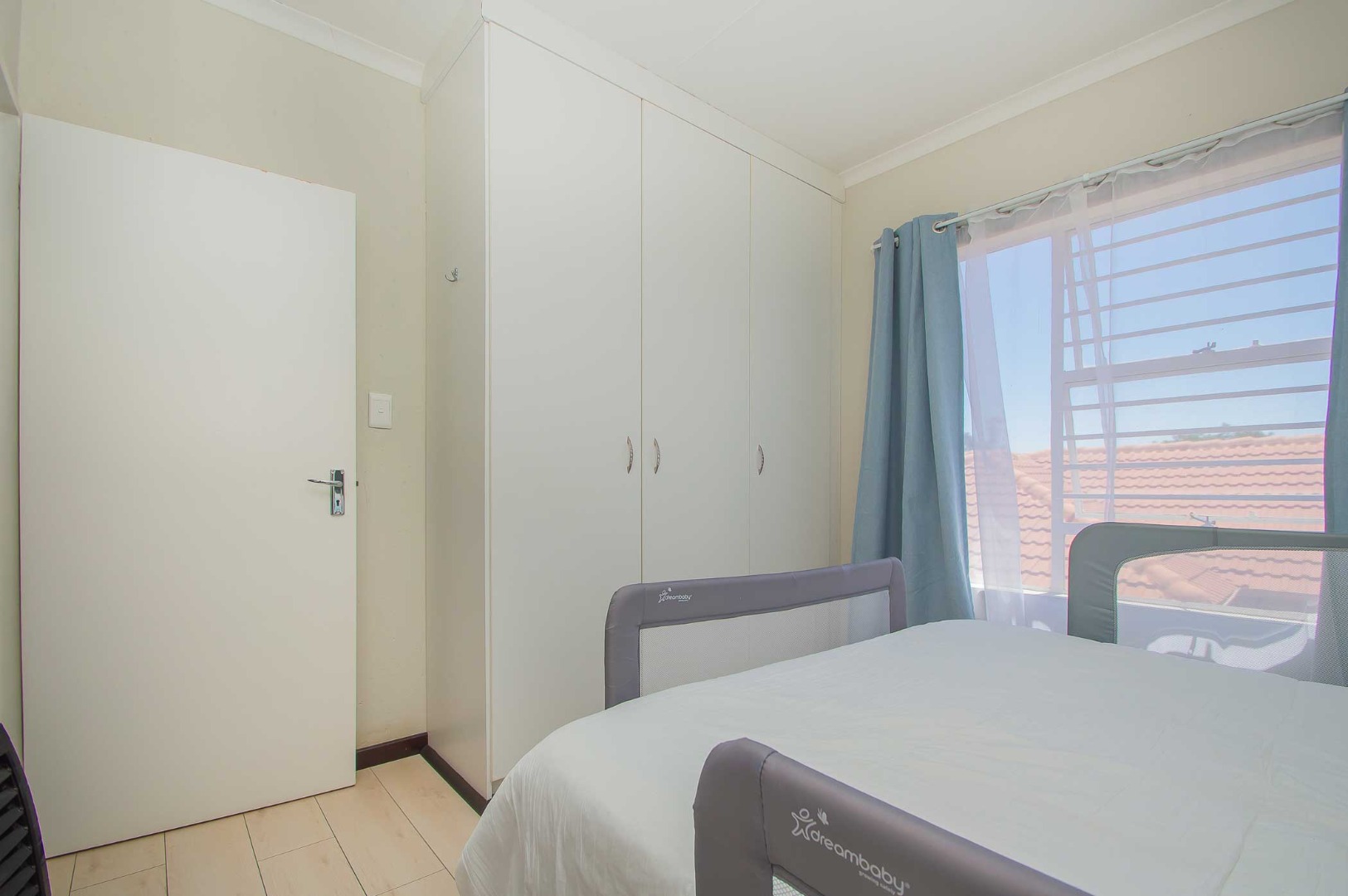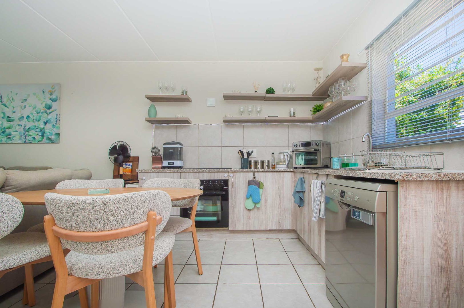 Security is well taken care of with an access gate, electric fencing, and an intercom system, ensuring peace of mind in the secure complex. Modern sustainability features include a rental solar system with 8 panels, a 5kVA inverter, and a 10kW battery. The complex also allows generators, is fibre-ready, and the home includes a heat pump geyser and a double automated garage with direct access into the house.
