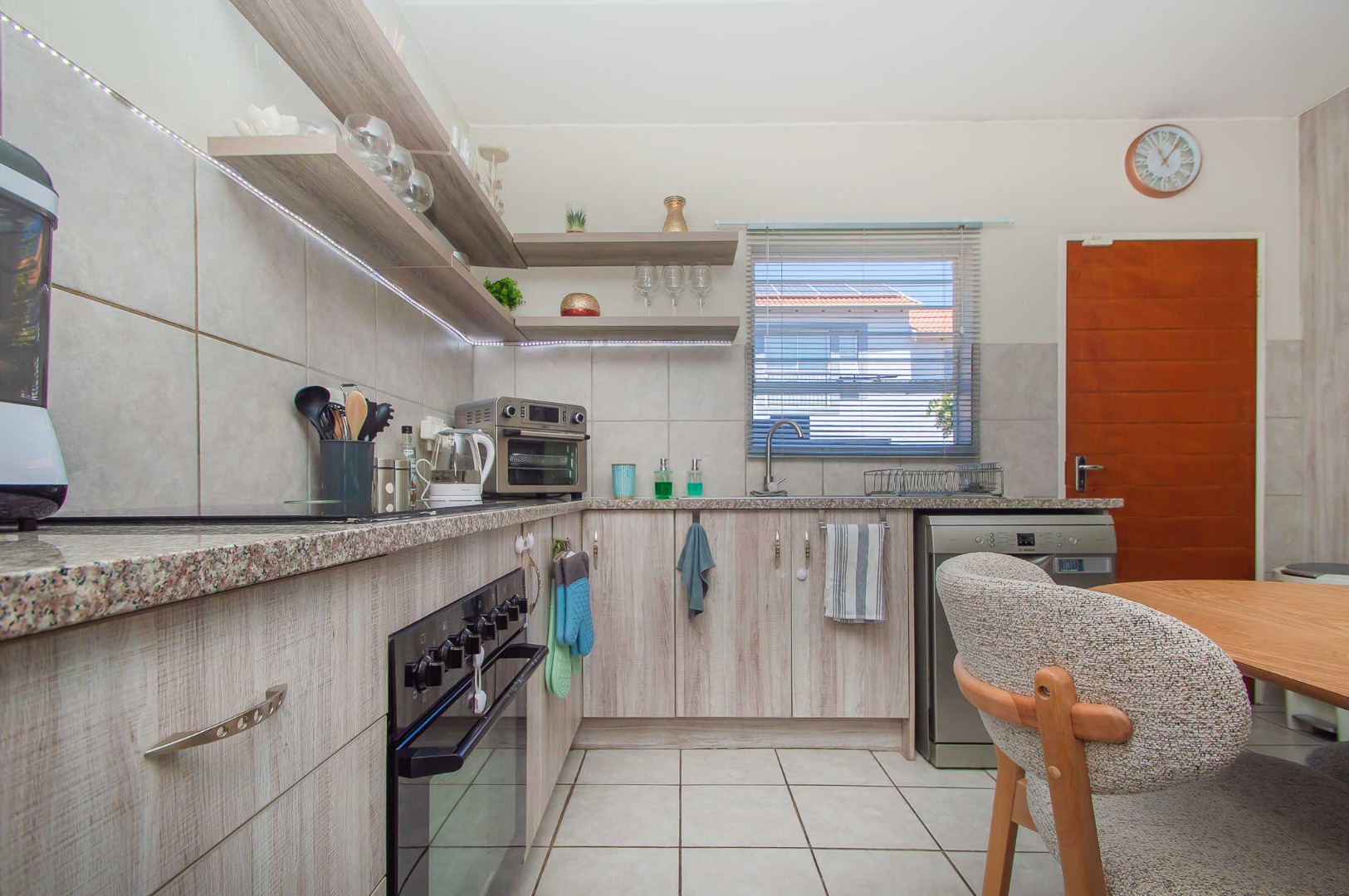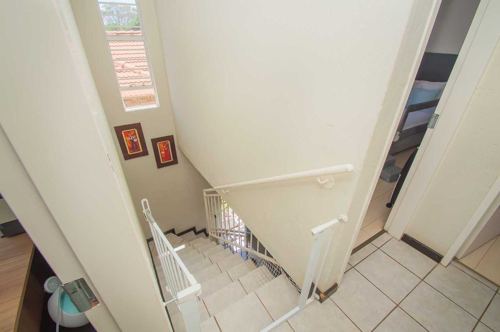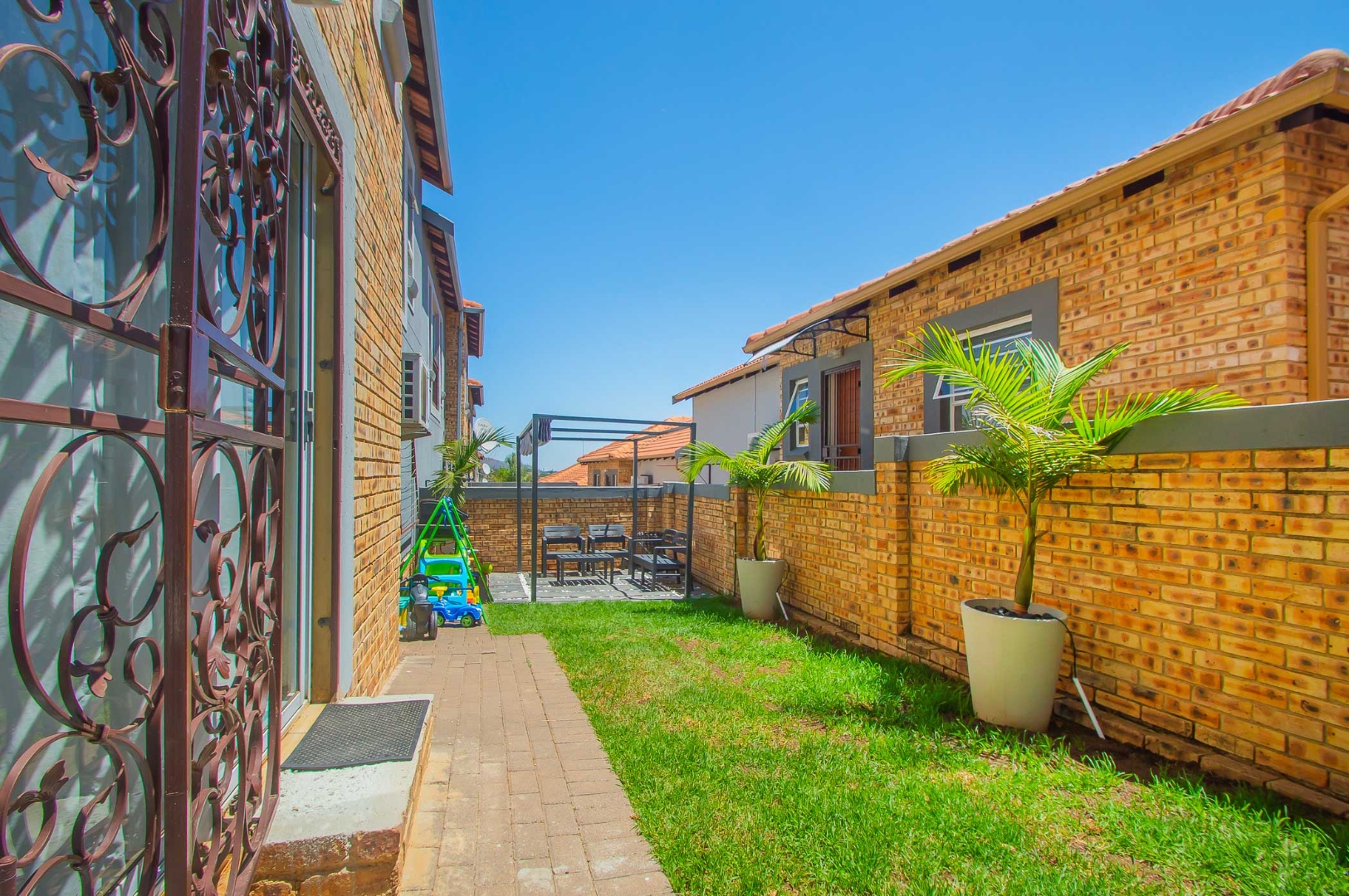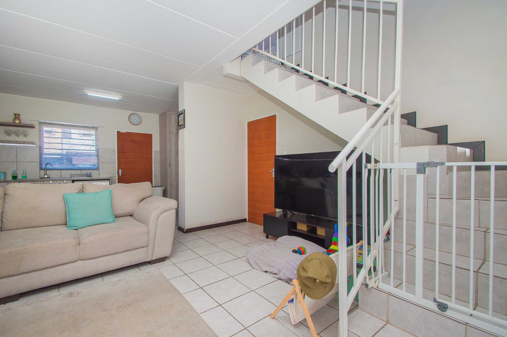 Security is well taken care of with an access gate, electric fencing, and an intercom system, ensuring peace of mind in the secure complex. Modern sustainability features include a rental solar system with 8 panels, a 5kVA inverter, and a 10kW battery. The complex also allows generators, is fibre-ready, and the home includes a heat pump geyser and a double automated garage with direct access into the house.