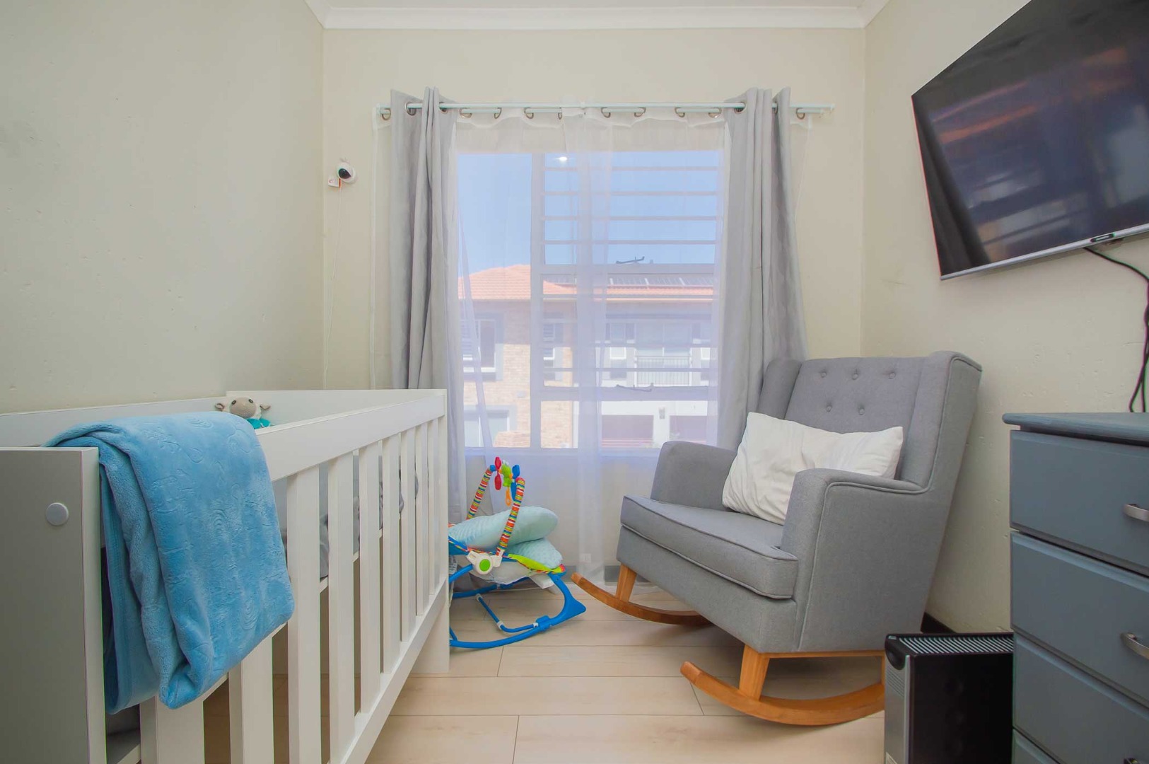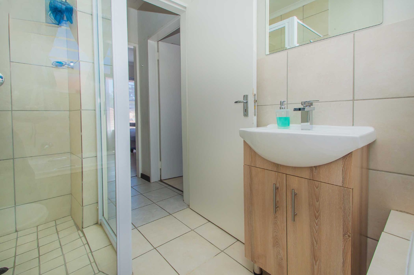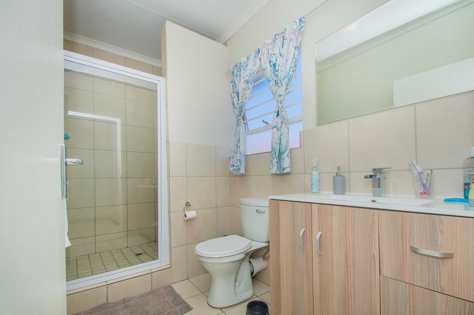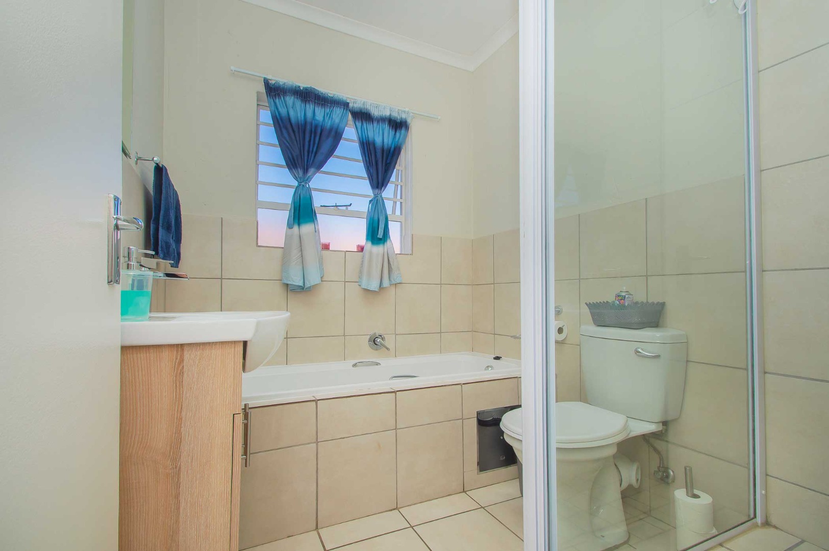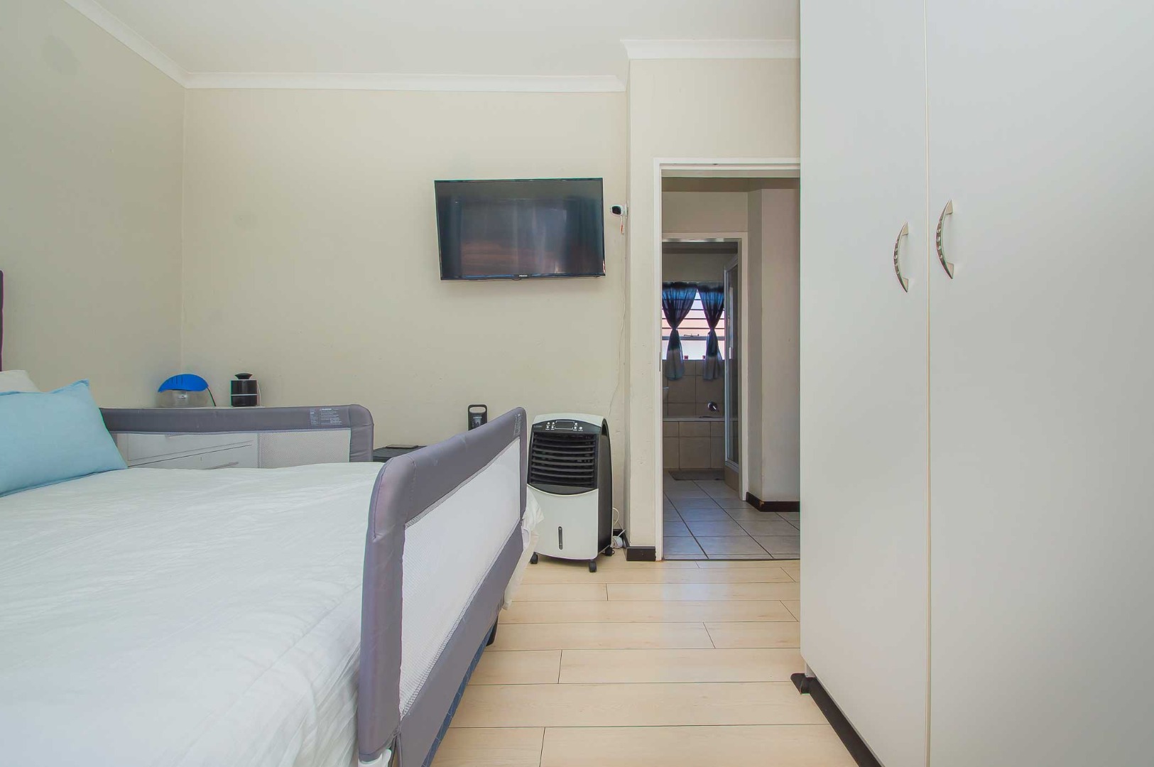 Security is well taken care of with an access gate, electric fencing, and an intercom system, ensuring peace of mind in the secure complex. Modern sustainability features include a rental solar system with 8 panels, a 5kVA inverter, and a 10kW battery. The complex also allows generators, is fibre-ready, and the home includes a heat pump geyser and a double automated garage with direct access into the house.
