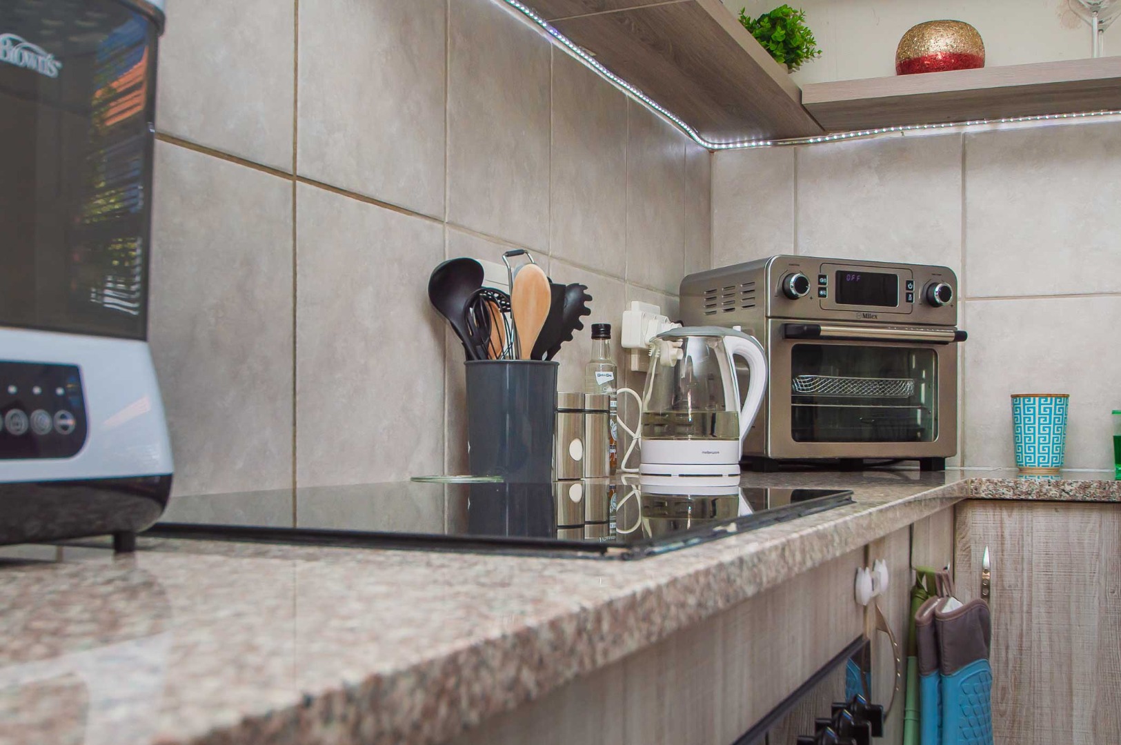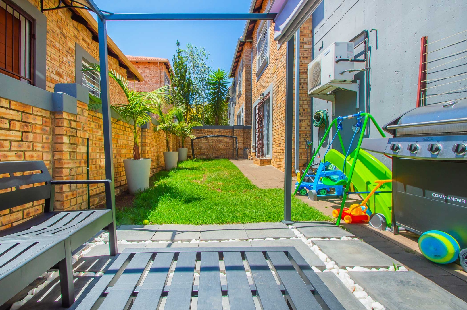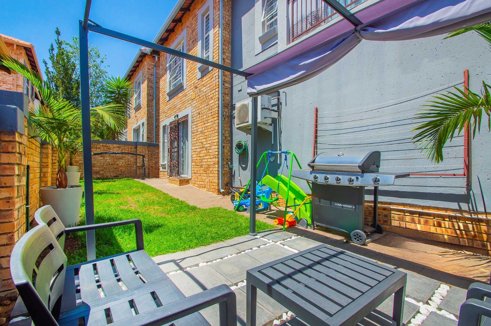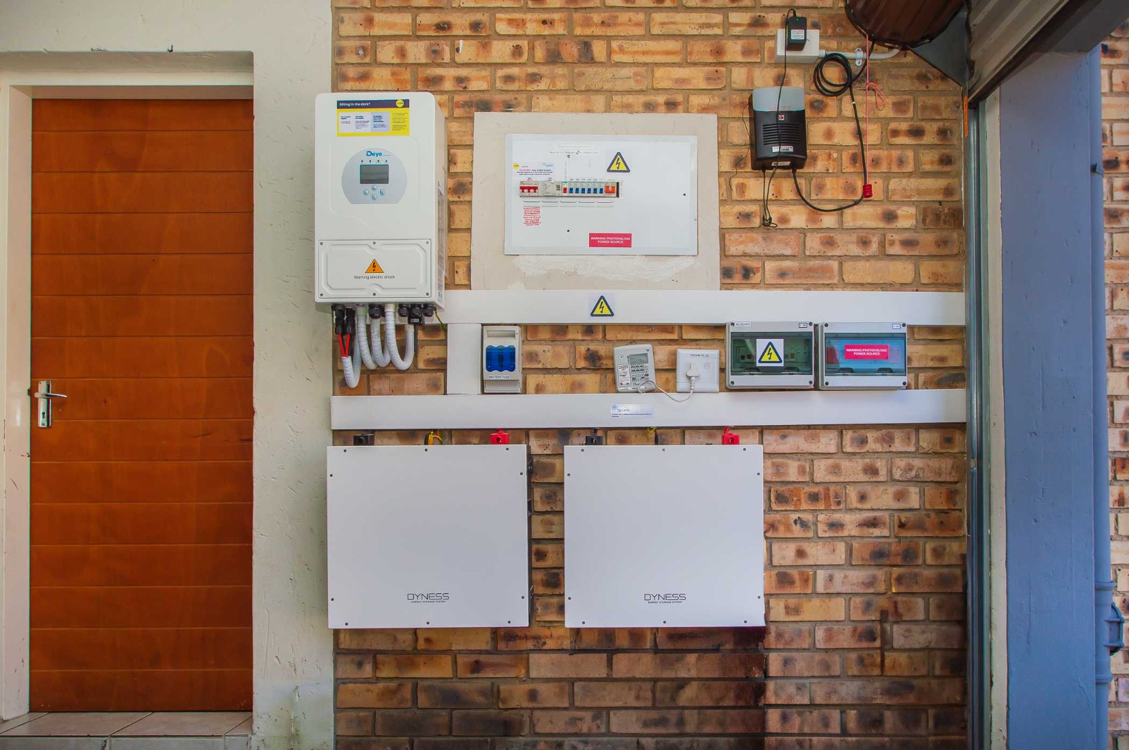 Security is well taken care of with an access gate, electric fencing, and an intercom system, ensuring peace of mind in the secure complex. Modern sustainability features include a rental solar system with 8 panels, a 5kVA inverter, and a 10kW battery. The complex also allows generators, is fibre-ready, and the home includes a heat pump geyser and a double automated garage with direct access into the house.