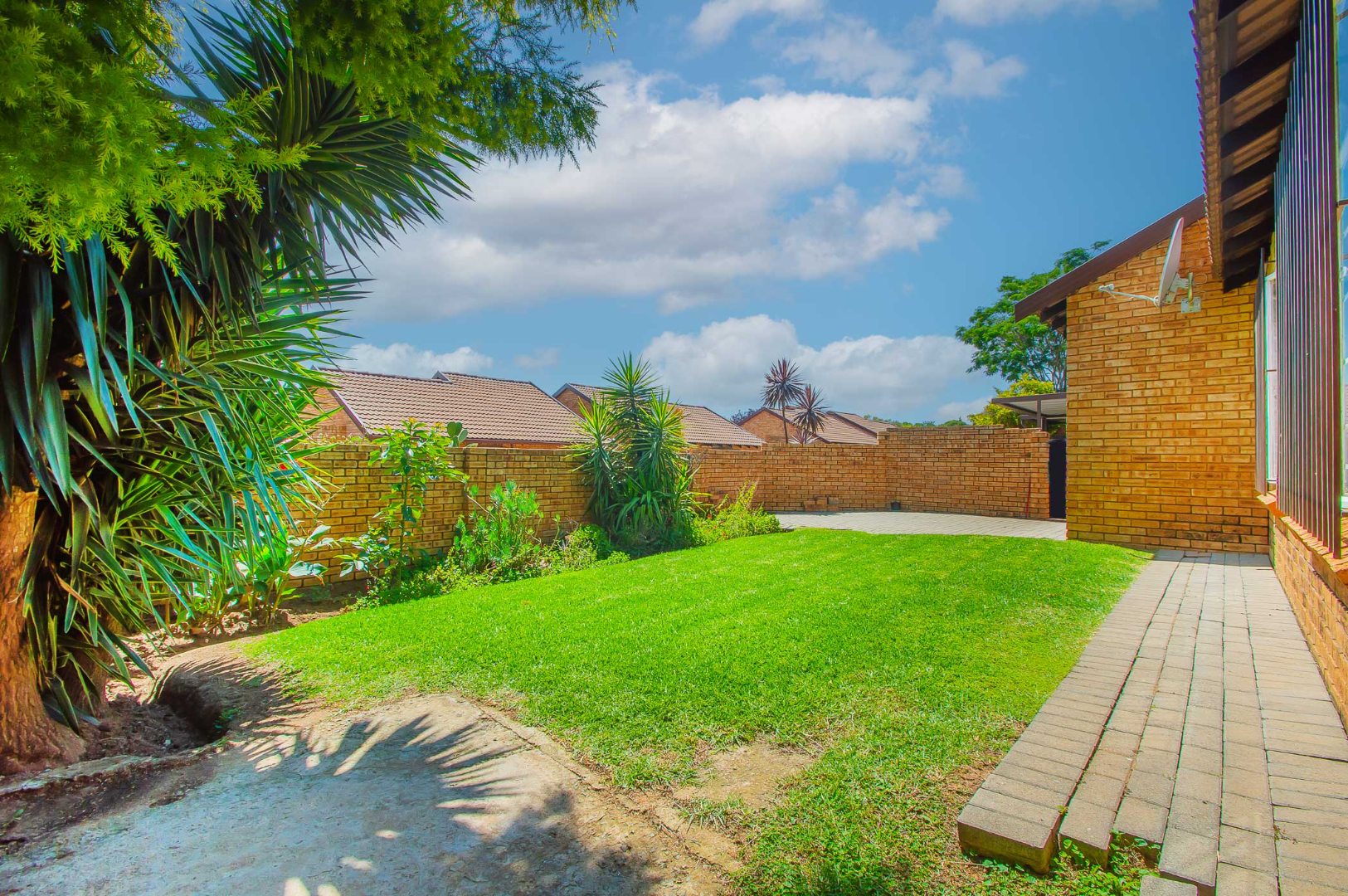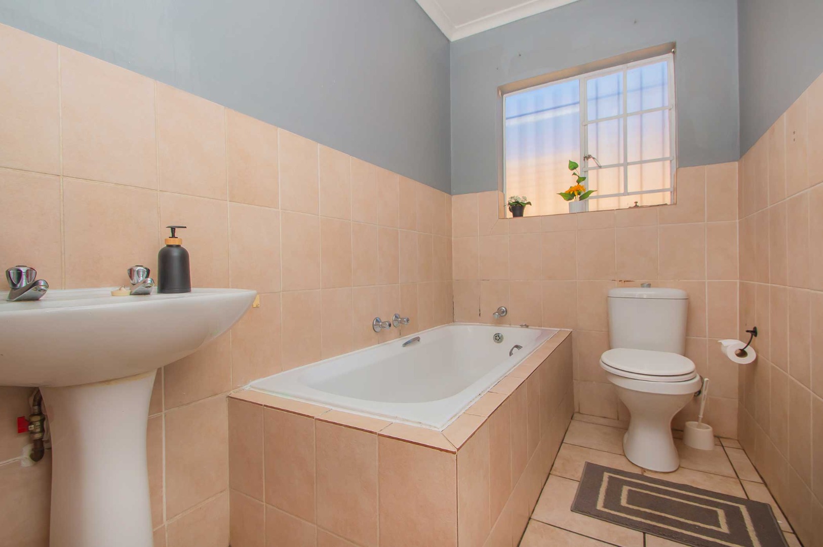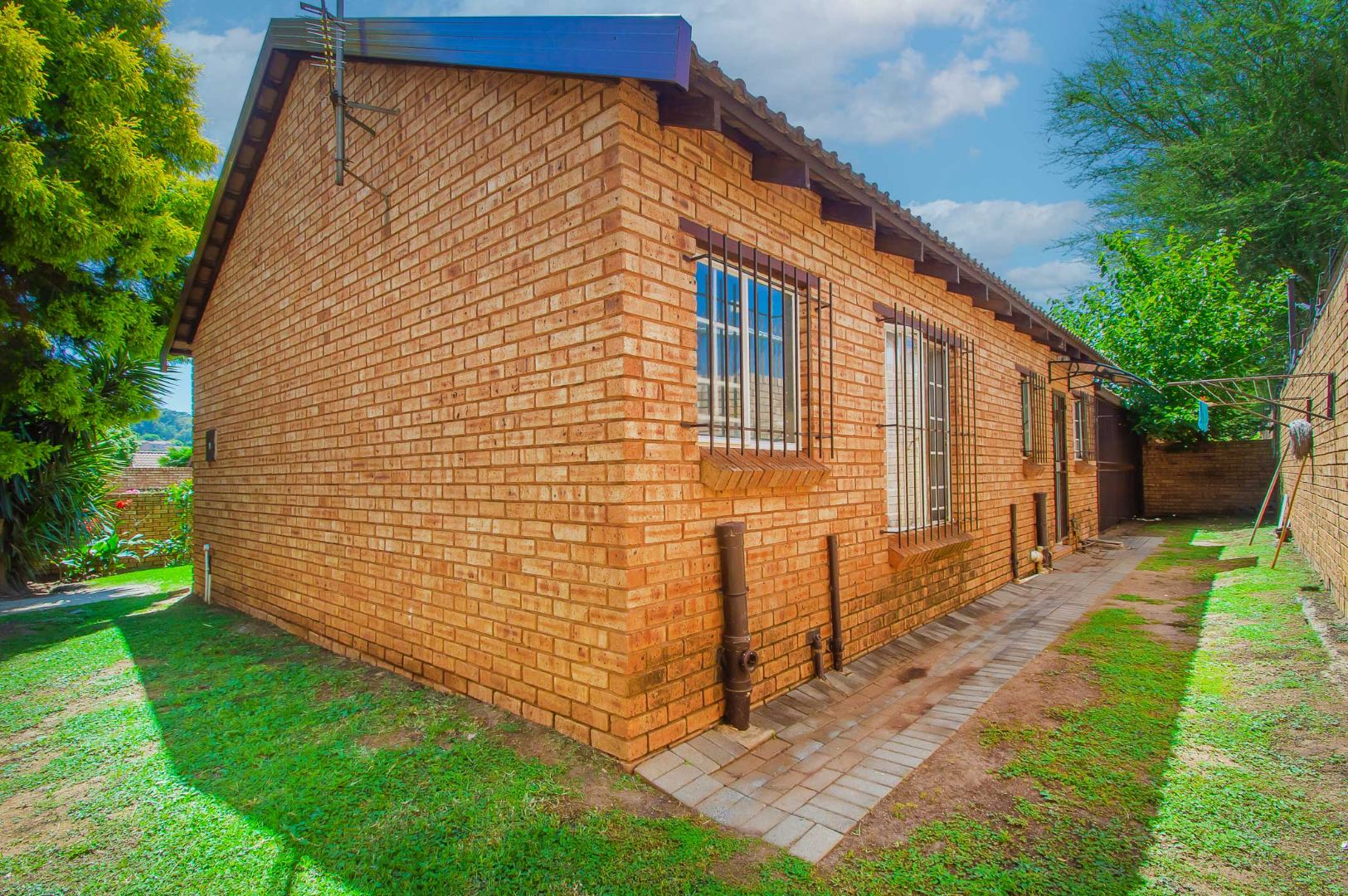 3 bedrooms that are well appointed. The main bedroom has ample cupboards, and has an en suite bathroom with a bath, toilet and basin – the bathroom is tiled to the roof. The second and third bedrooms are large and have built-in cupboards and are complimented by the second bathroom that is modern and has a shower, toilet and basin.