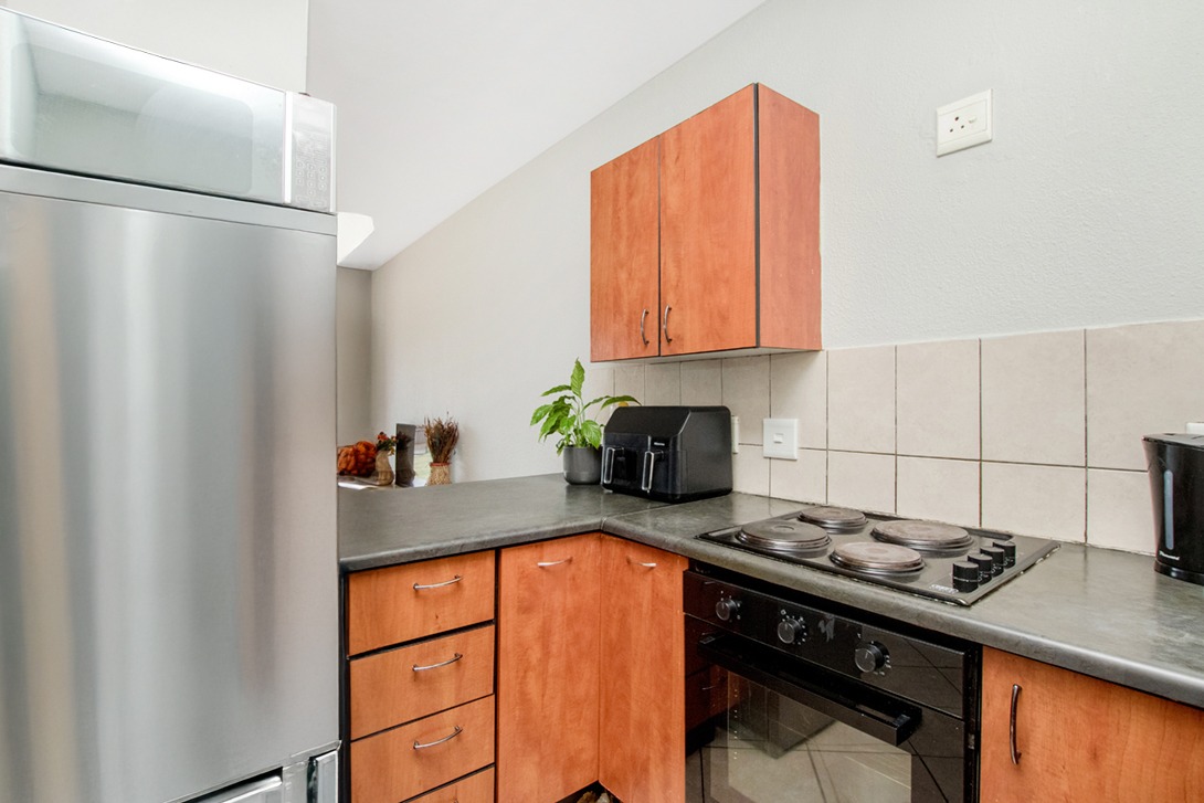 This ground-floor gem offers an open-plan lounge and kitchen, a sunny patio with built-in braai, and a cozy courtyard out back.