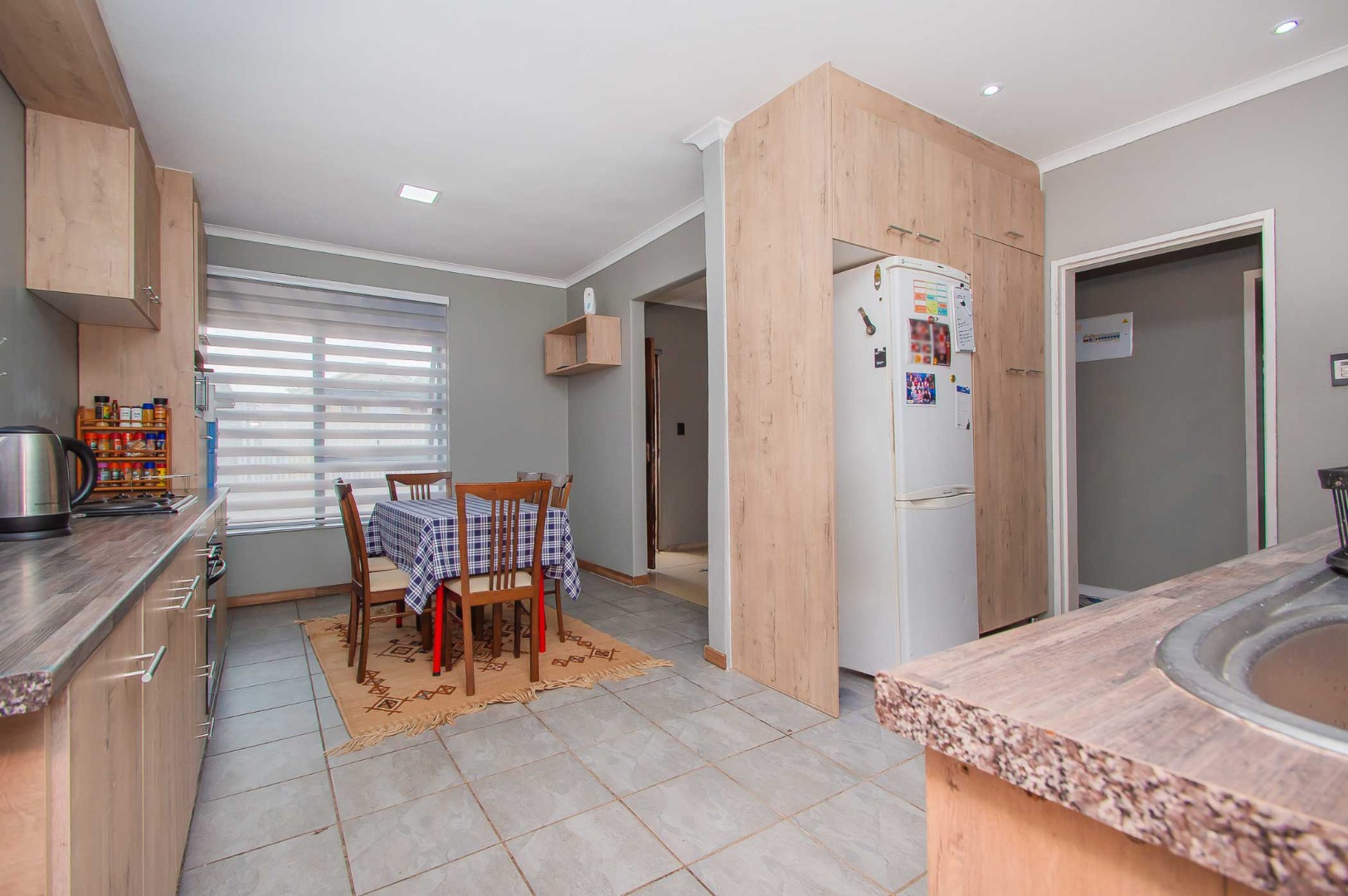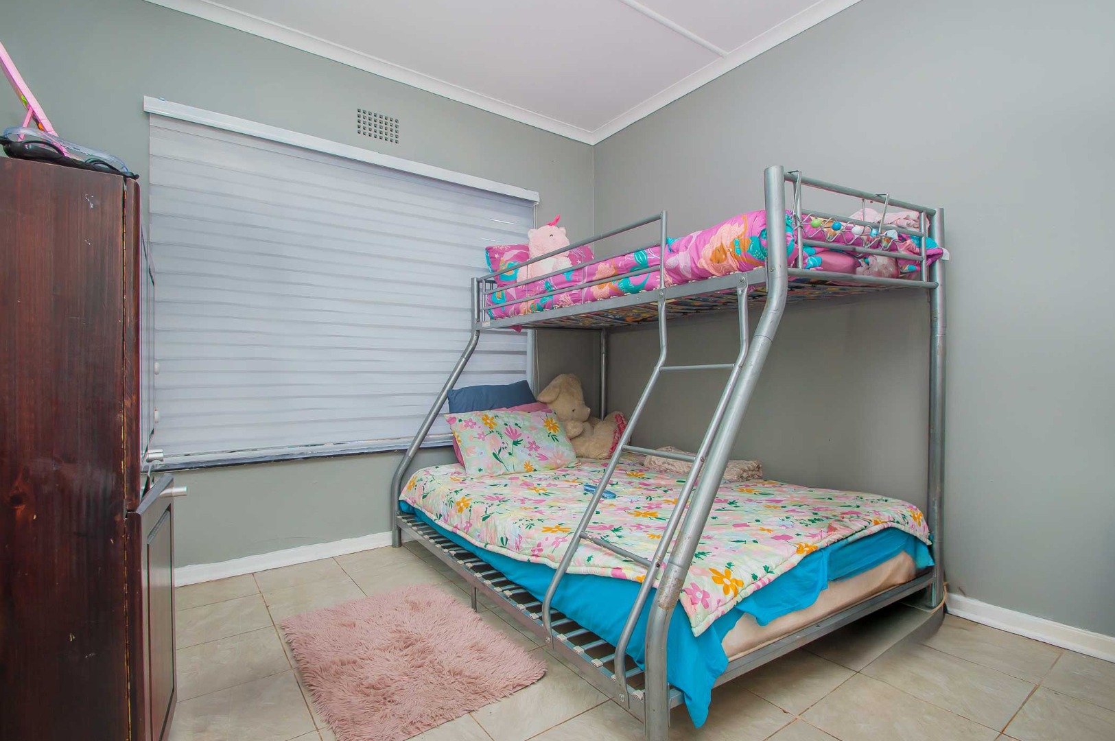 3 Spacious bedrooms complete the Home. The main bedroom is double volume in size, has built-in cupboards and an en-suit bathroom. The second bedroom is spacious and has built-in cupboards, the third bedroom is also large – they are complimented by the second bathroom that has a toilet, basin and bath.