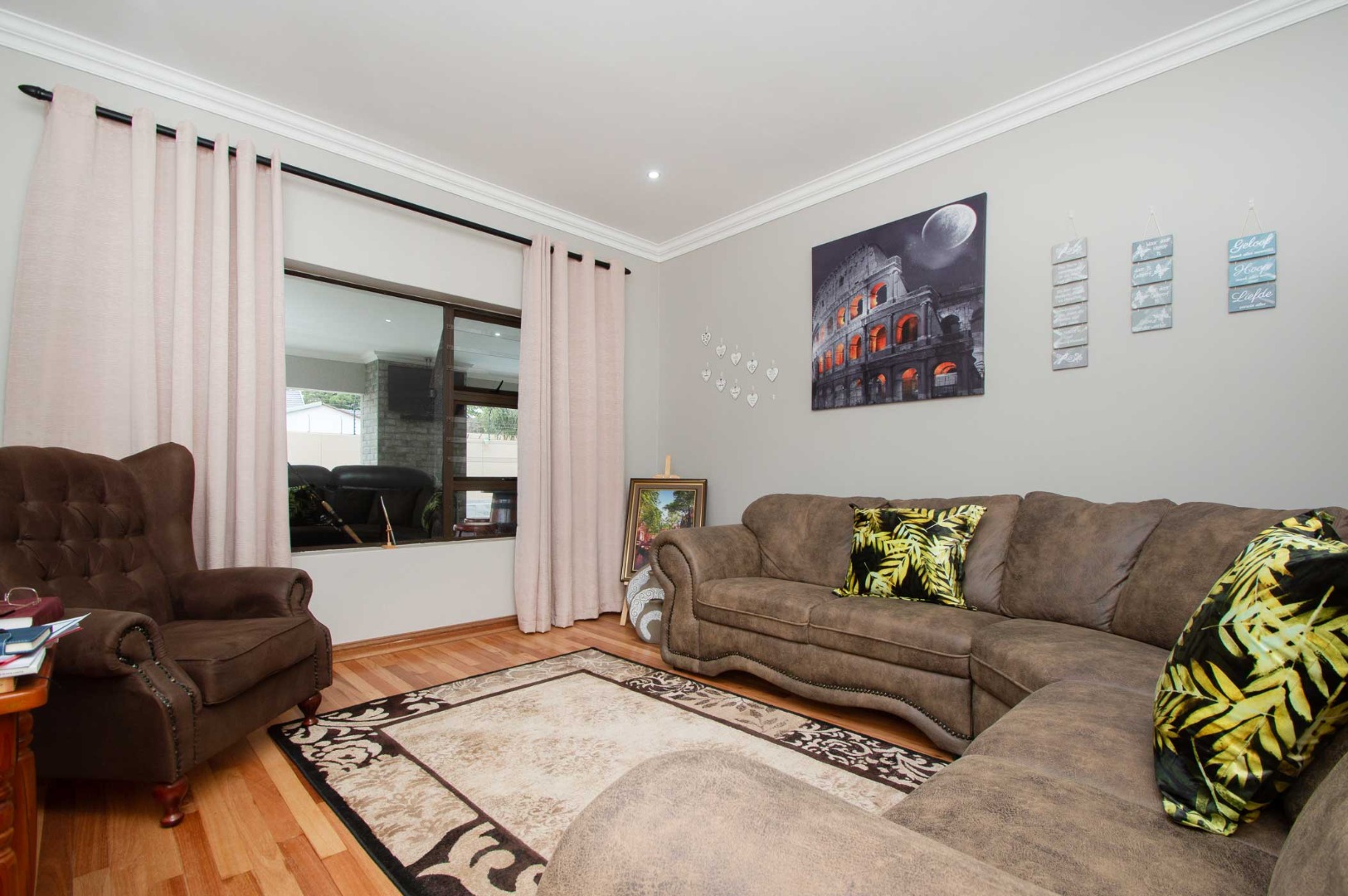 In addition: Double automated garages, triple carport, alarm system, Aluminium window frames, Prepaid electricity, generator plug and play, built-in dog kennels, storage, and is Fibre ready.