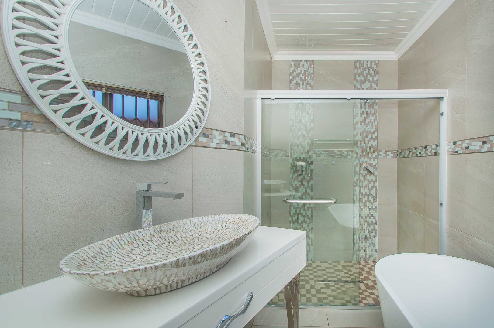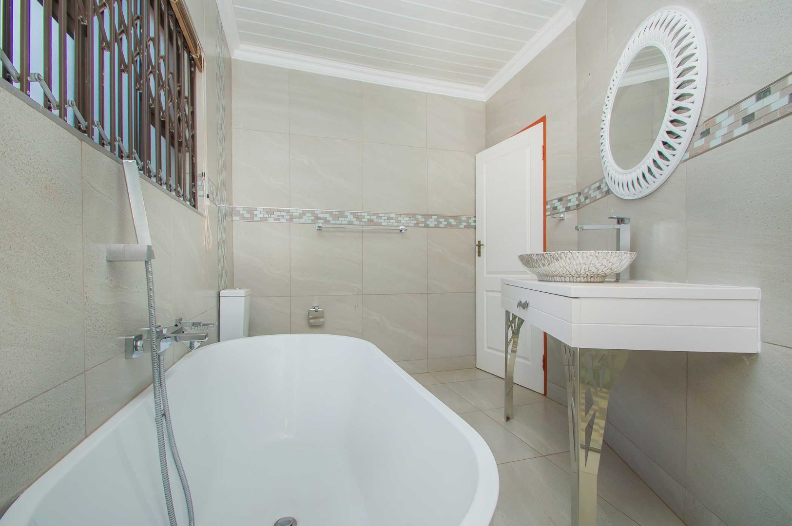 Five bedrooms complete this Home – the main bedroom is double volume in size and has its own lounge with a fireplace, it has laminated flooring, led lighting, a ceiling fan, an air conditioning unit, built-in cupboards and a walk-in wardrobe, and a modern full en suite bathroom that is tiled to the roof with superb modern finishes. The remaining four bedrooms are large in size, have modern built-in cupboards and are complimented by the second, third and fourth bathrooms that are modern.