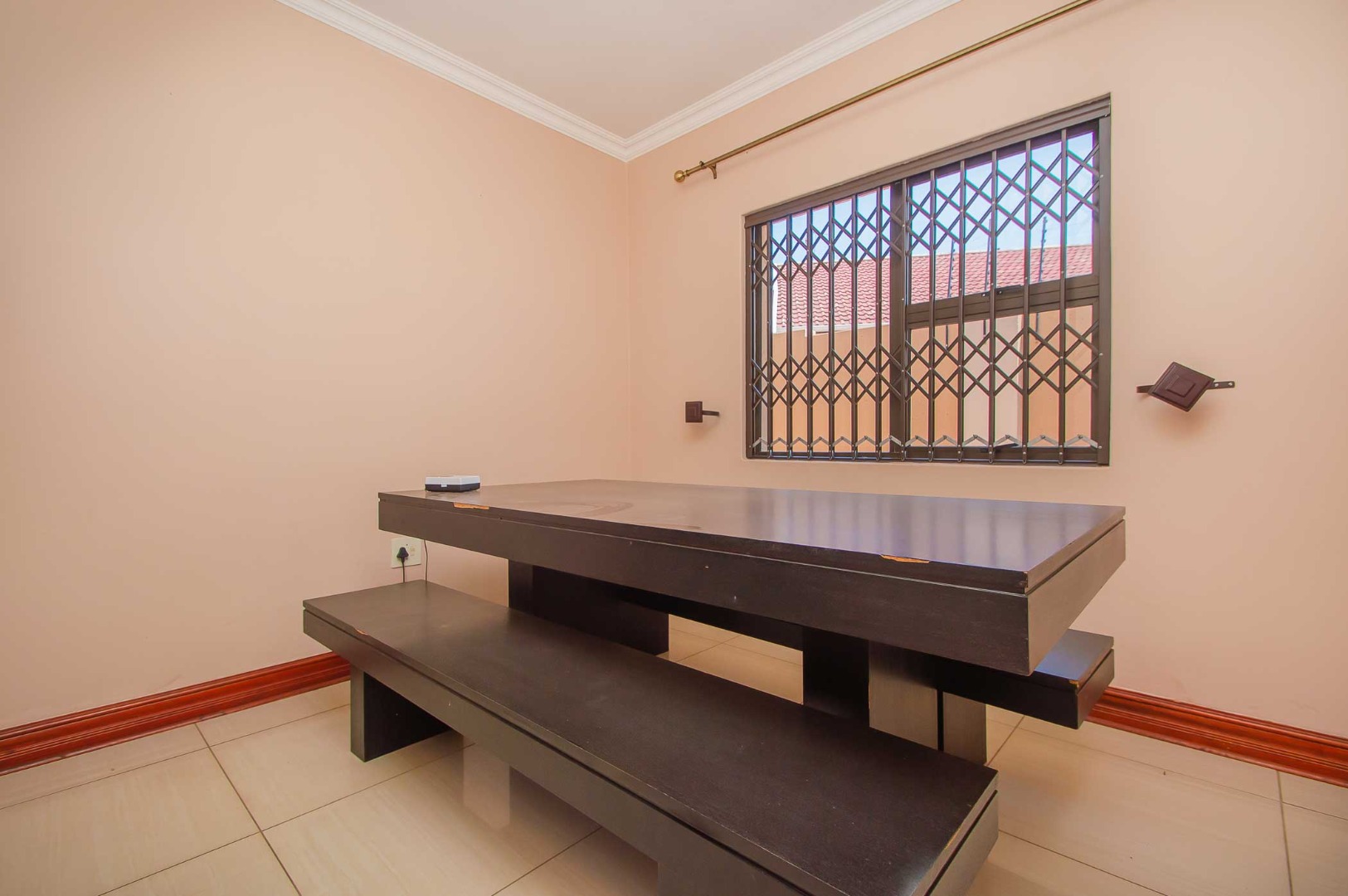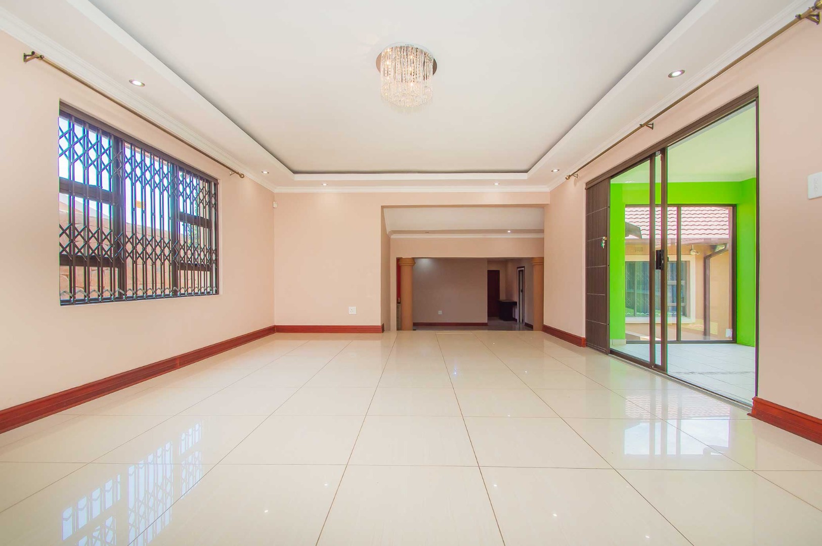 Five bedrooms complete this Home – the main bedroom is double volume in size and has its own lounge with a fireplace, it has laminated flooring, led lighting, a ceiling fan, an air conditioning unit, built-in cupboards and a walk-in wardrobe, and a modern full en suite bathroom that is tiled to the roof with superb modern finishes. The remaining four bedrooms are large in size, have modern built-in cupboards and are complimented by the second, third and fourth bathrooms that are modern.