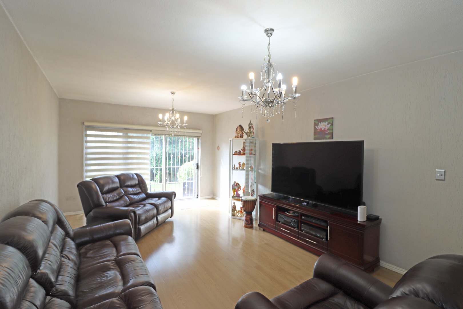 The home offers a lounge with sliders to the patio and garden.