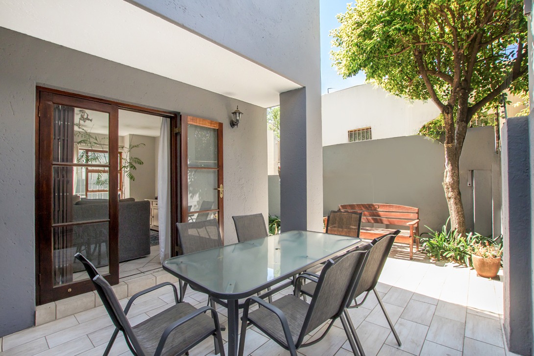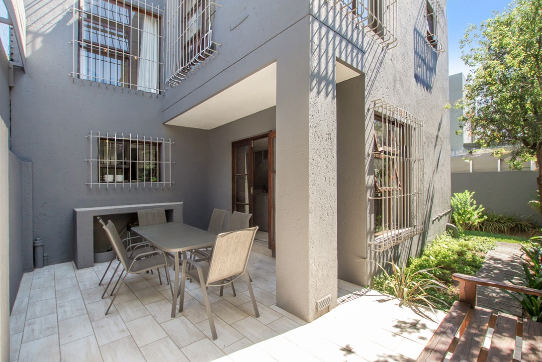 It features a lovely modern kitchen and open-plan dining and living area that flows onto a private patio and small outdoor space.