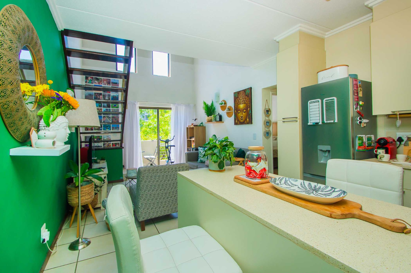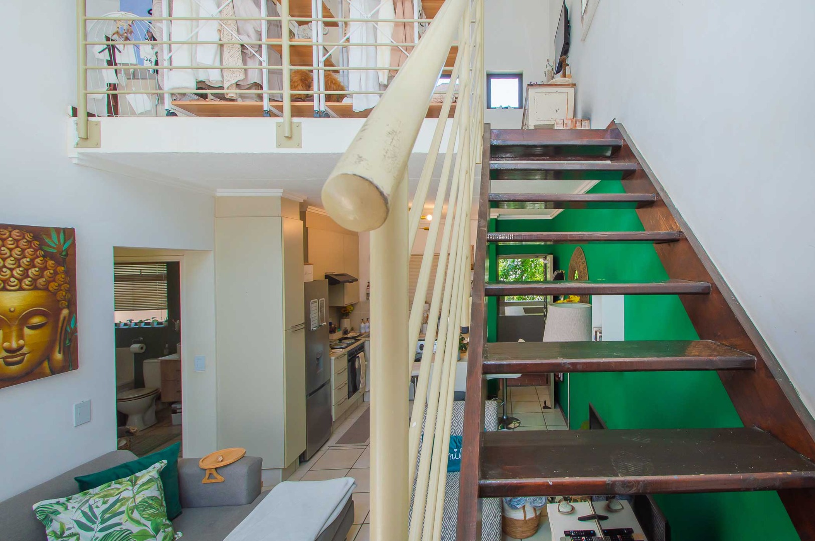 Discover an unparalleled lifestyle within this sophisticated 82 sqm loft apartment, nestled in a modern architectural complex in Bryanston, Sandton. The residence immediately captivates with its contemporary design and well-maintained facade, offering a serene retreat. Inside, an expansive open-plan living area is bathed in natural light, courtesy of soaring high ceilings and large sliding doors that seamlessly connect to the private balcony. A distinctive mezzanine level adds an intriguing architectural dimension, perfect for a study or additional living space.