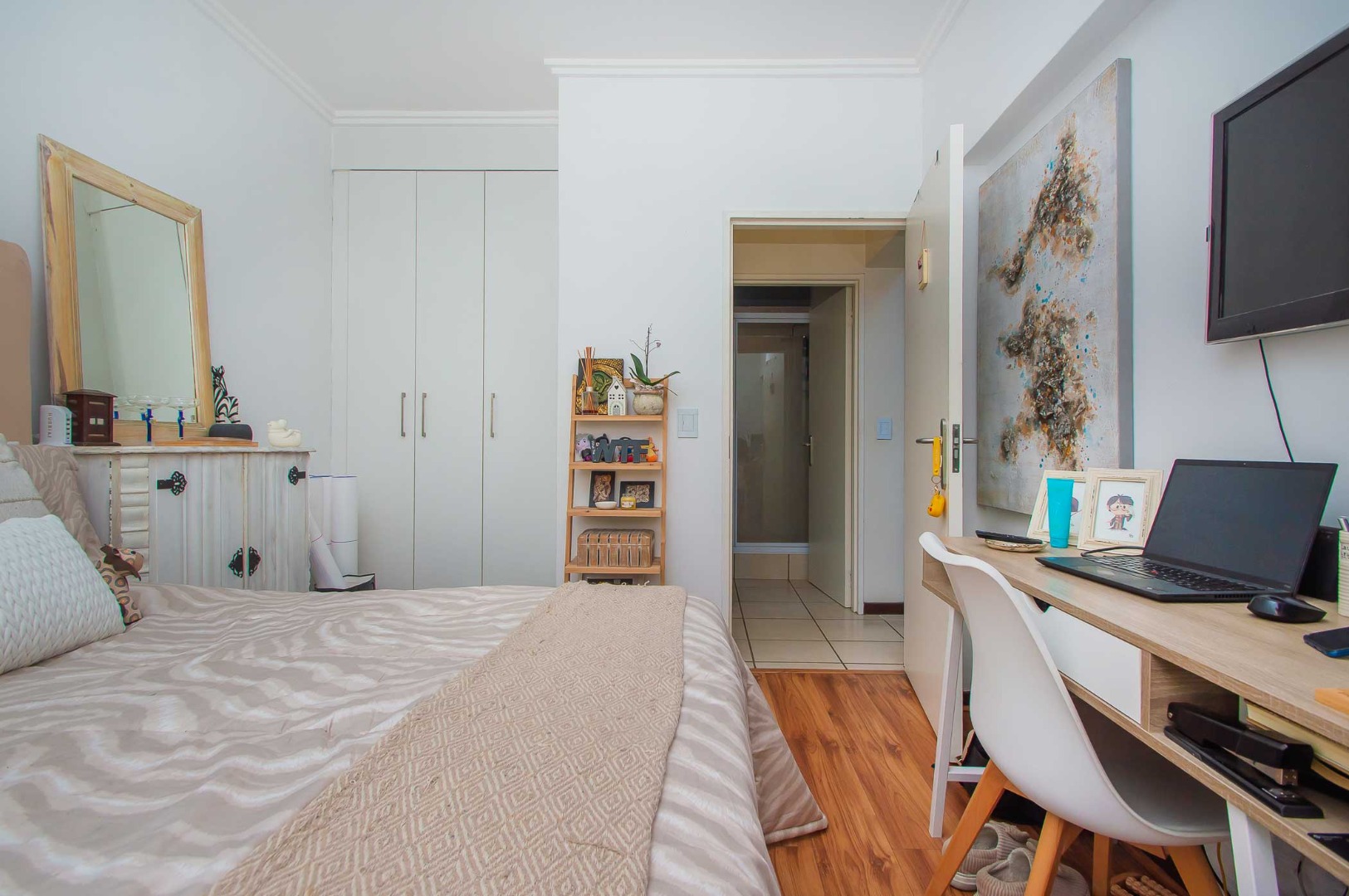 Step onto your private balcony, an idyllic setting for al fresco dining with a space for Braai, offering picturesque views of lush greenery and the vibrant purple hues of Jacaranda trees. The complex itself is a haven of leisure, featuring a sparkling swimming pool set amidst expansive, meticulously landscaped gardens. Residents can indulge in the communal barbecue area, complete with a shaded gazebo, perfect for entertaining guests. Ample covered parking ensures convenience and security.