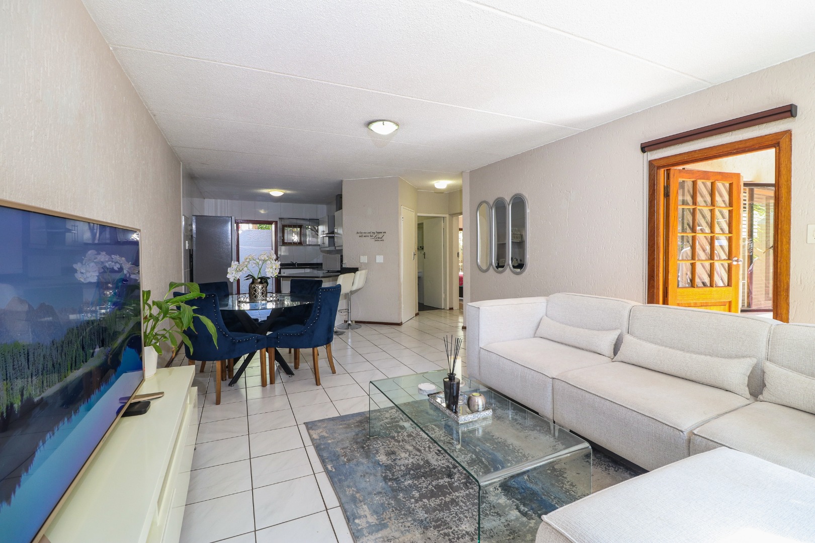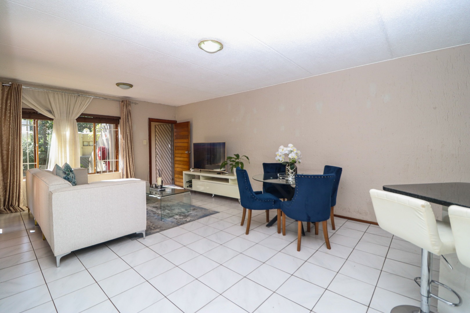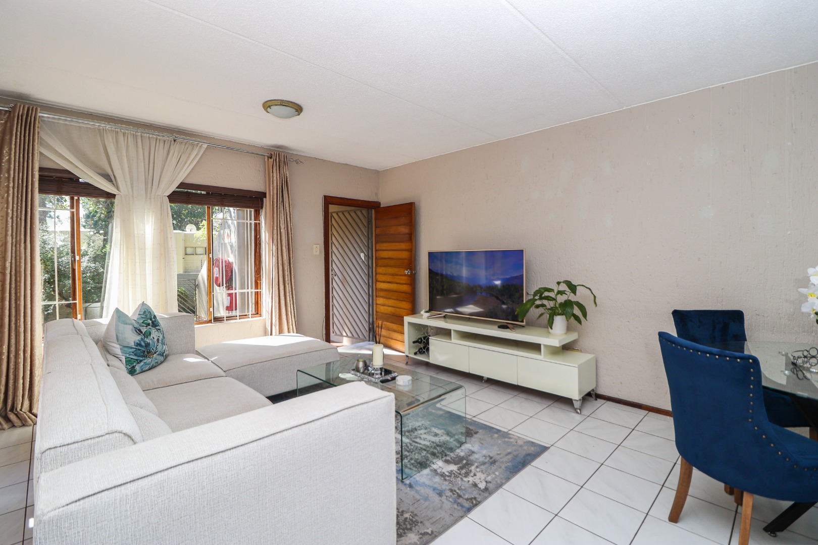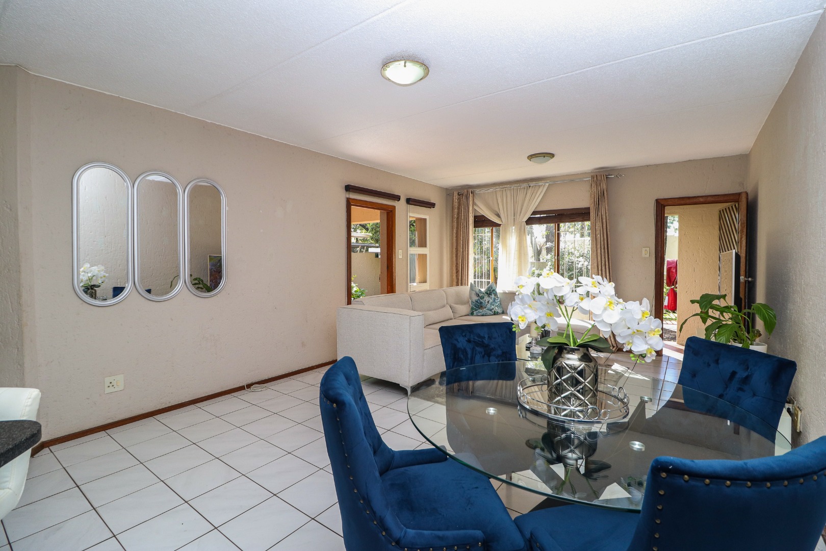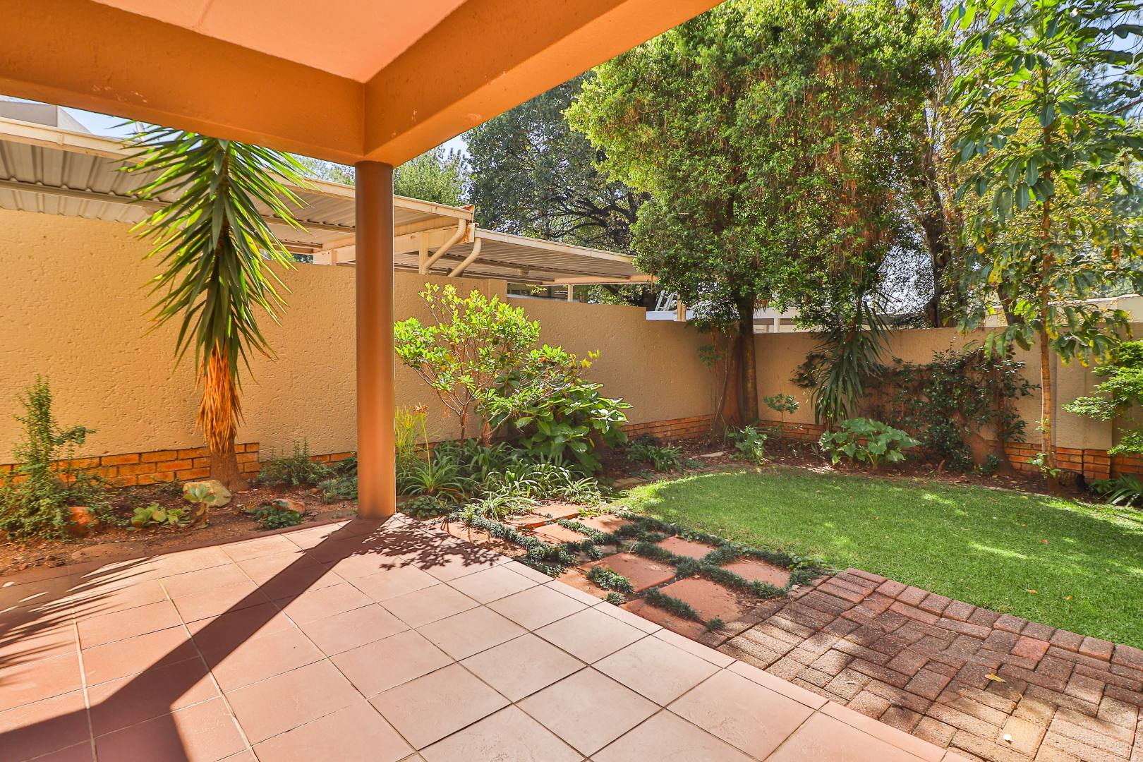 You enter through the sunny, wrap-around garden and a sheltered front door. Matching light-toned tiles run throughout - creating a clean, soothing environment. The lounge is oversized and will comfortably fit a dining table and the chunkiest of modern recliner-style couches. The light is voluminous with the door to the undercover patio right there.