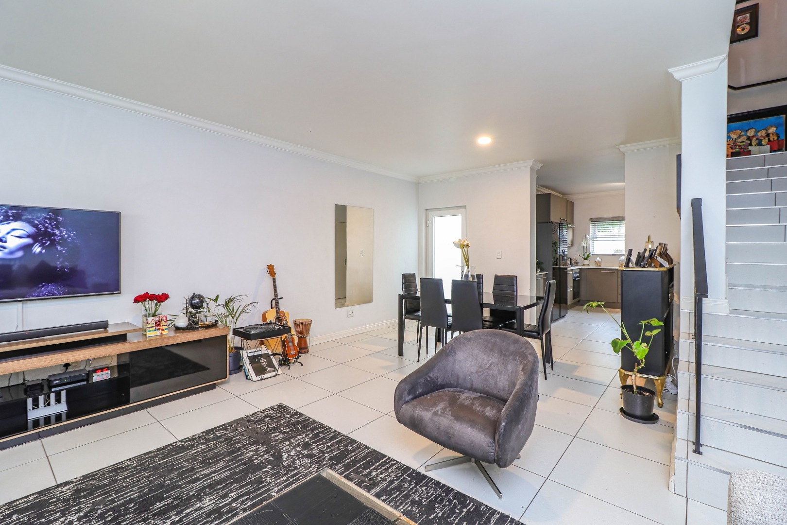Stepping inside, you are greeted by a bright and inviting open-plan living and dining area. The space features modern tiled floors and crisp white walls - creating a fresh canvas for your personal style. Large sliding doors flood the area with natural light and seamlessly connect to the patio and private garden. The contemporary staircase adds a touch of elegance, leading you upstairs. The home includes a comfortable lounge and a well-appointed kitchen, perfect for everyday living and entertaining. There's also convenient storage available.