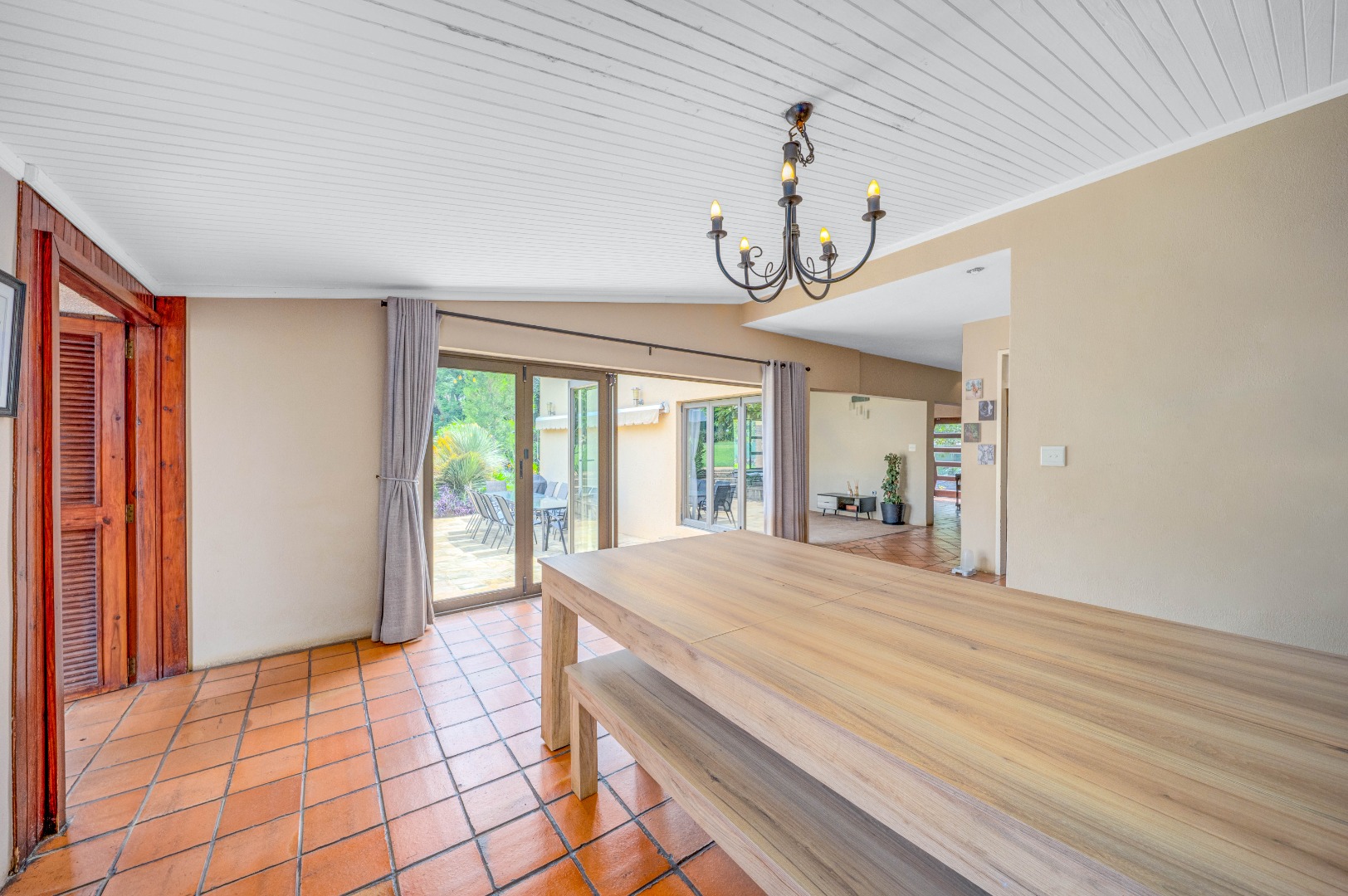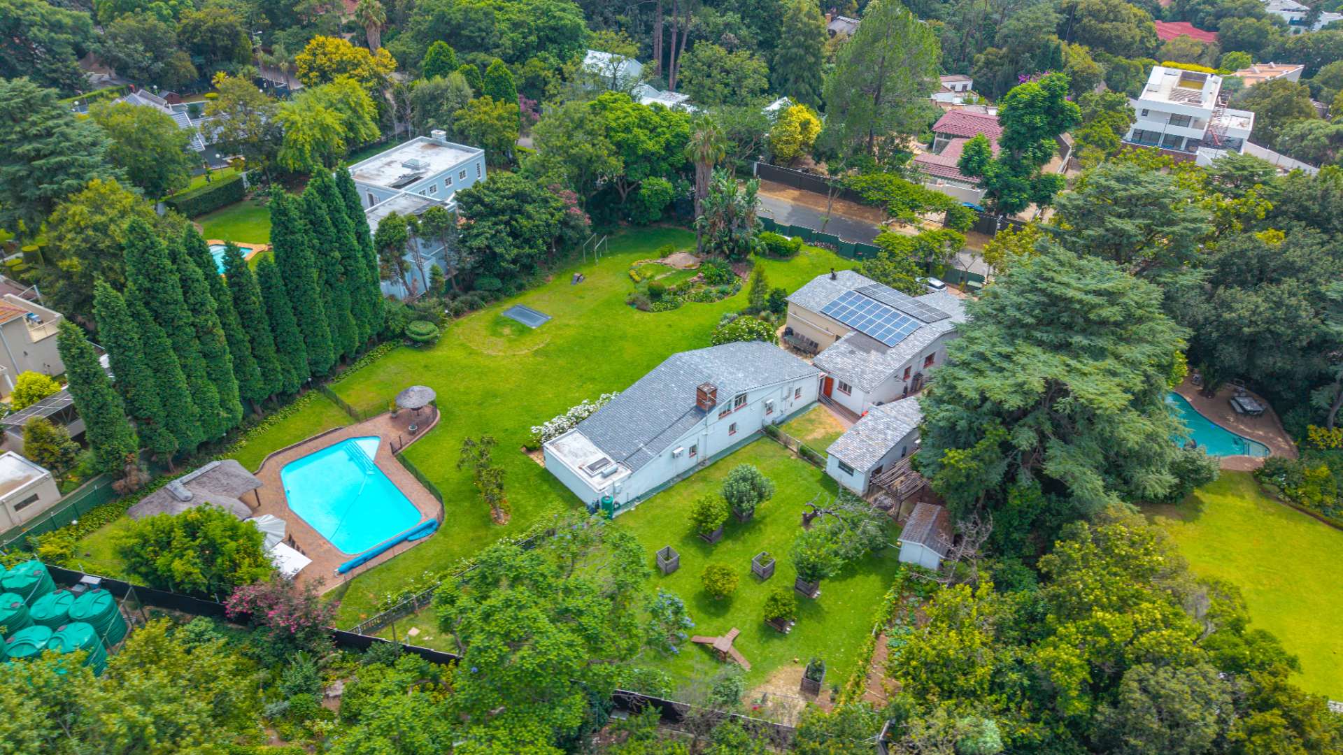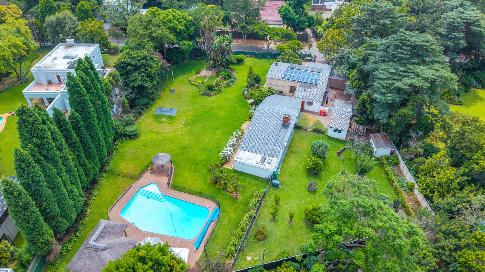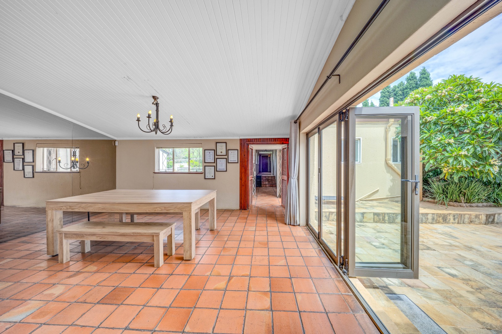 Living areas include two lounges and a flexible dining or family space opening onto a patio. At the far end of the expansive private garden a lapa overlooks the swimming pool - the perfect tranquil setting for relaxed family living and entertaining.