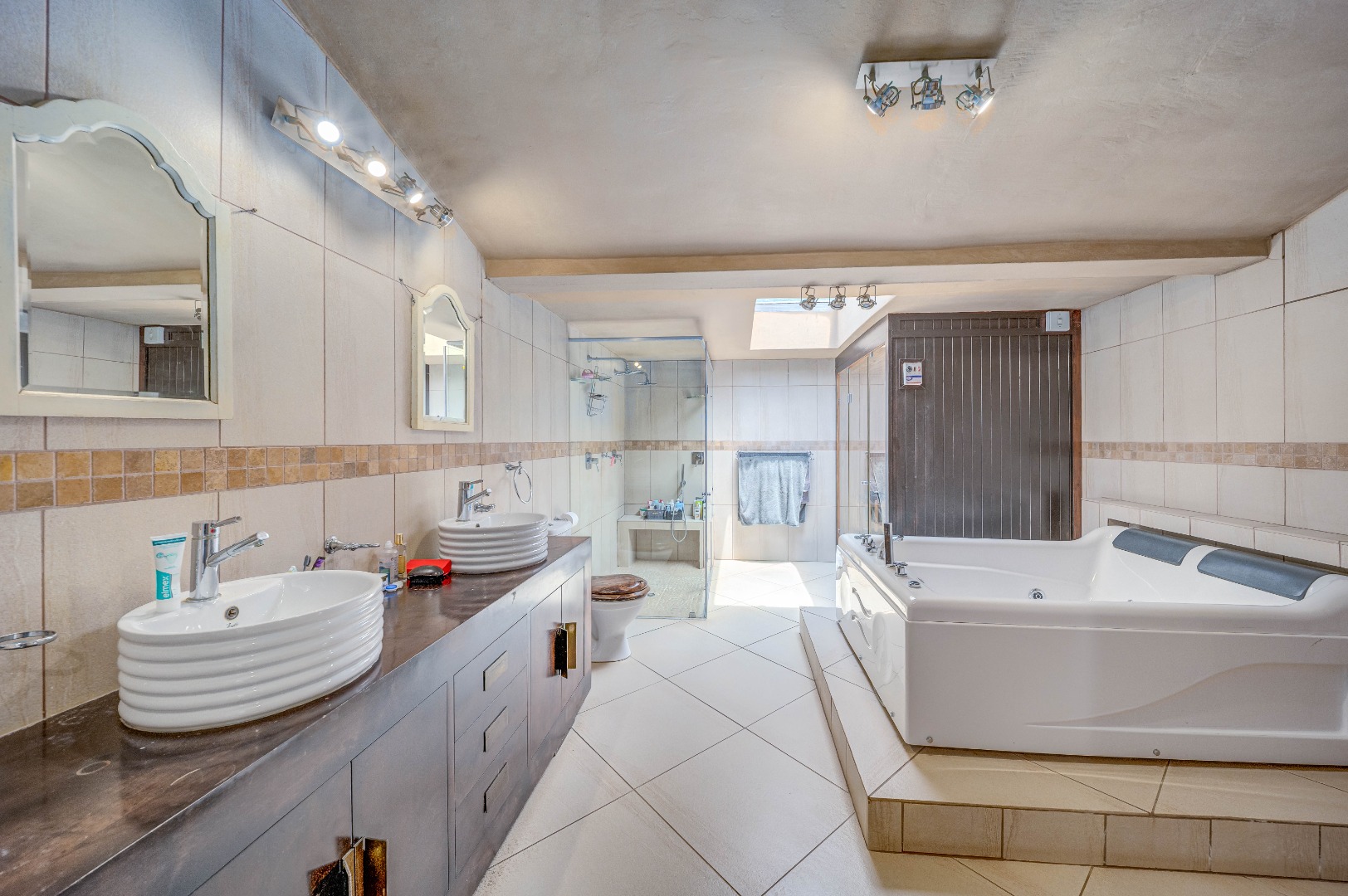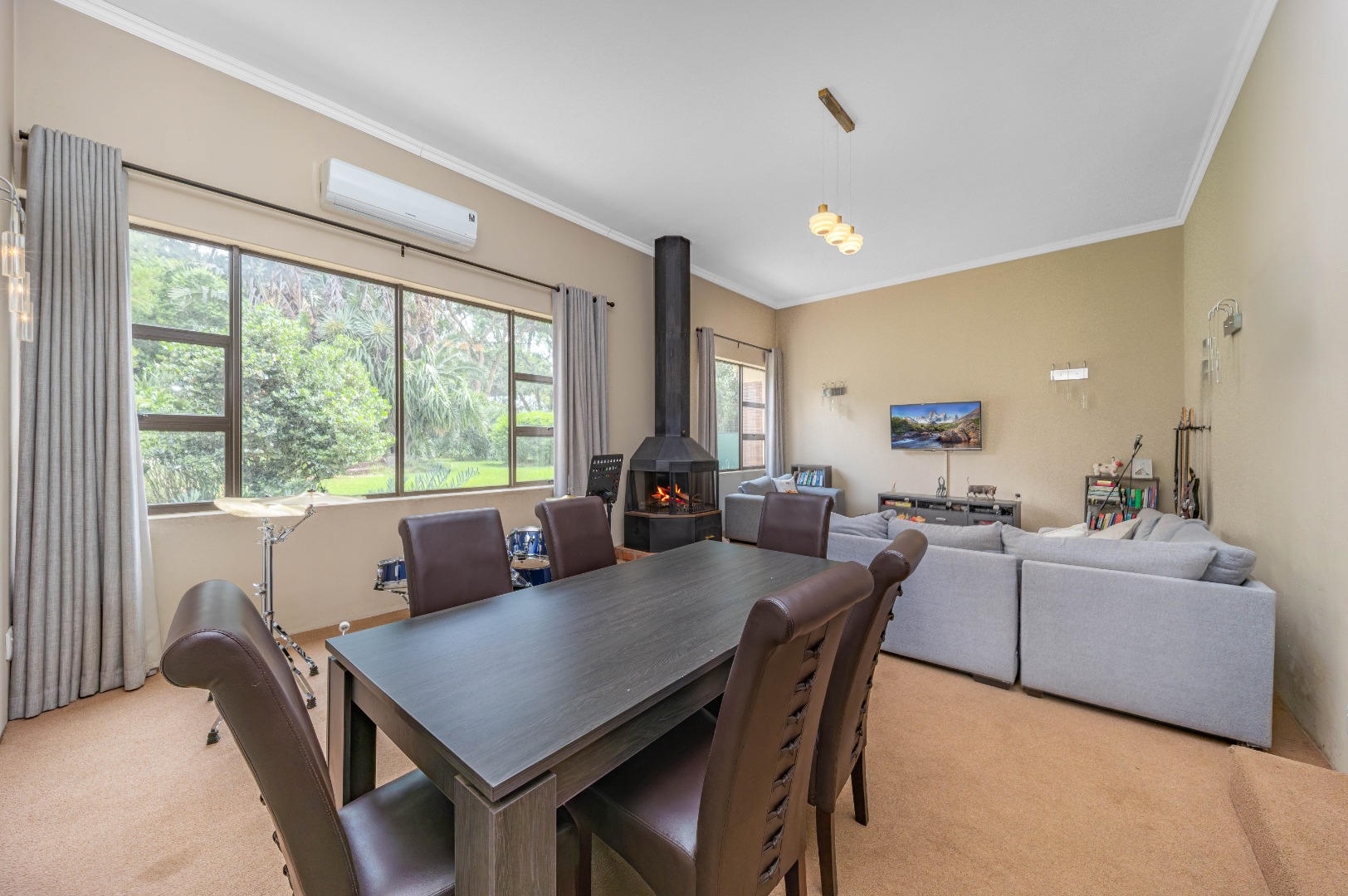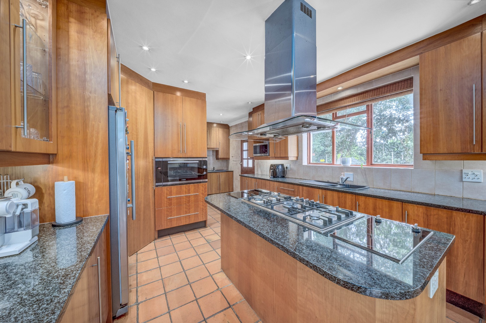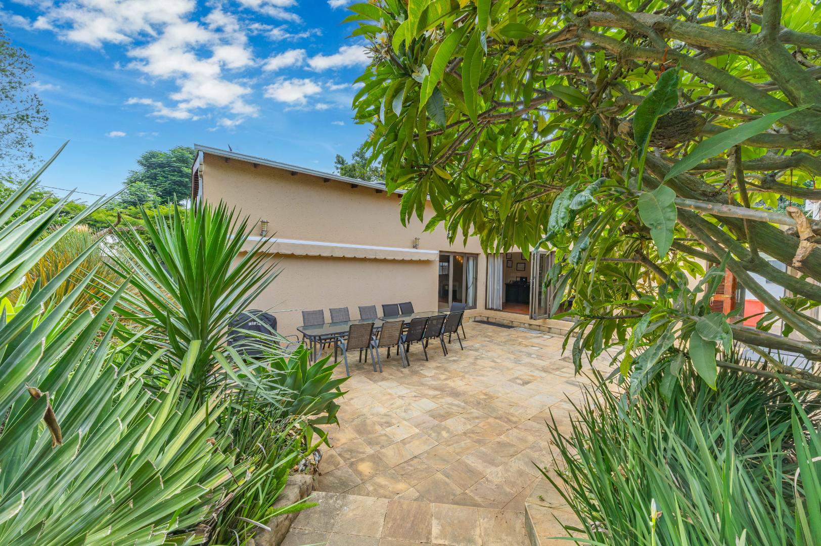 Living areas include two lounges and a flexible dining or family space opening onto a patio. At the far end of the expansive private garden a lapa overlooks the swimming pool - the perfect tranquil setting for relaxed family living and entertaining.